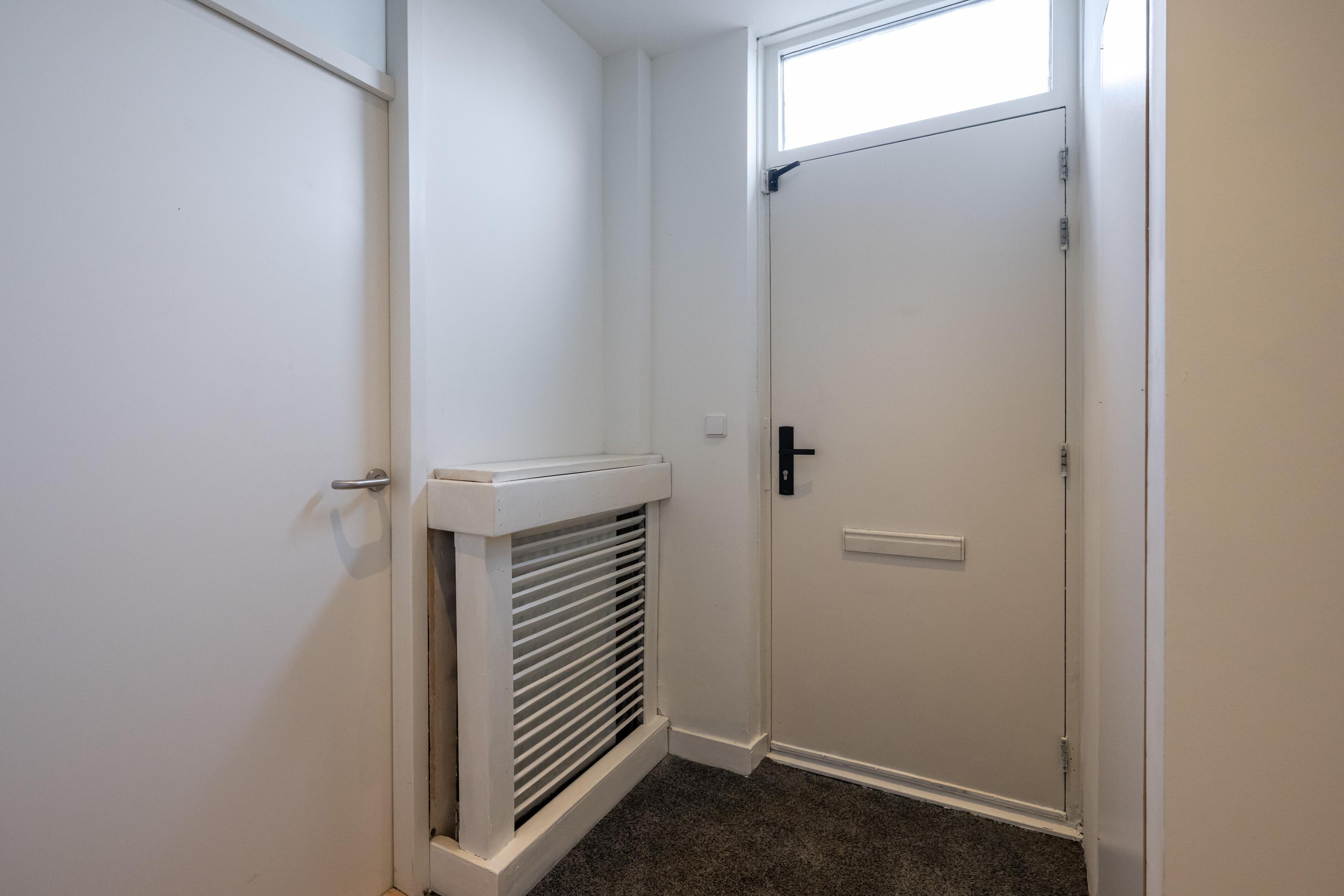 Laminaatvloer, meterkast, trapopgang en toilet.