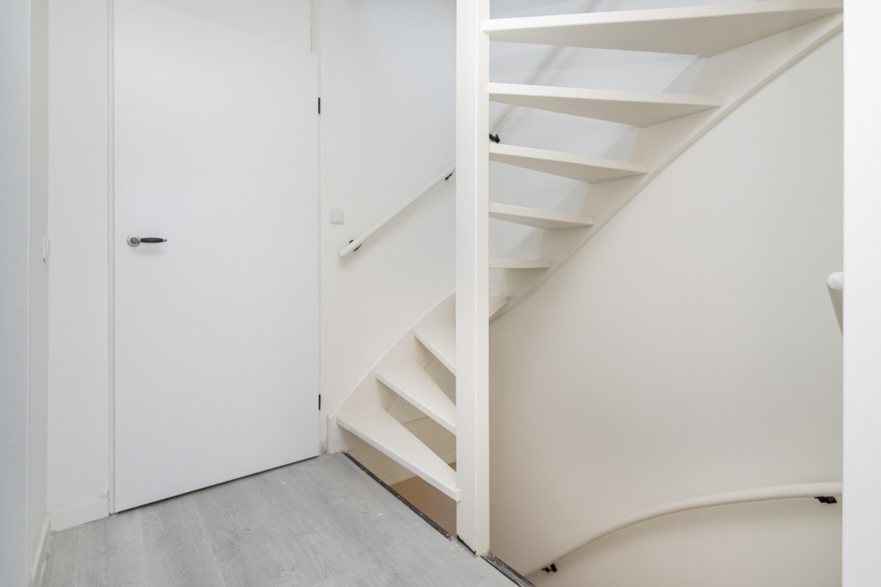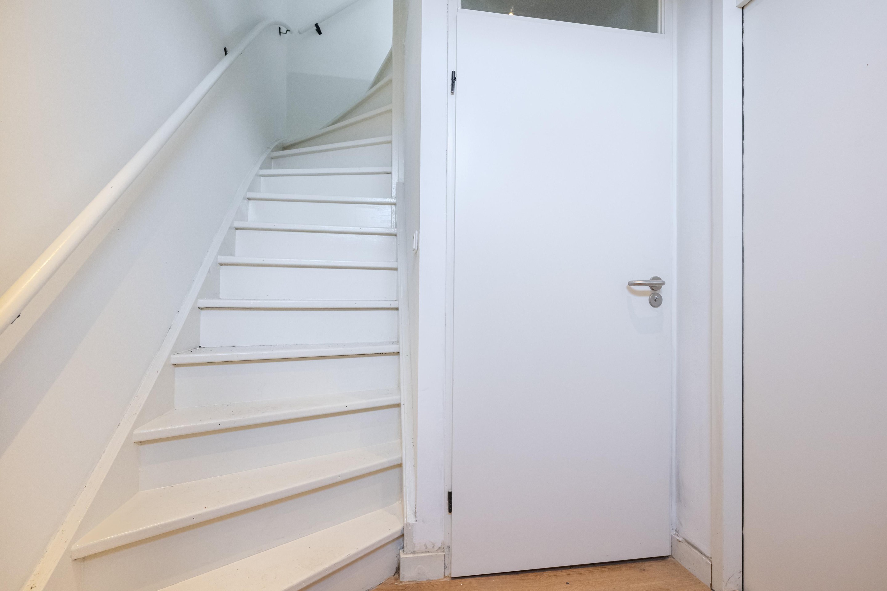 Laminaatvloer en trapopgang naar zolder.