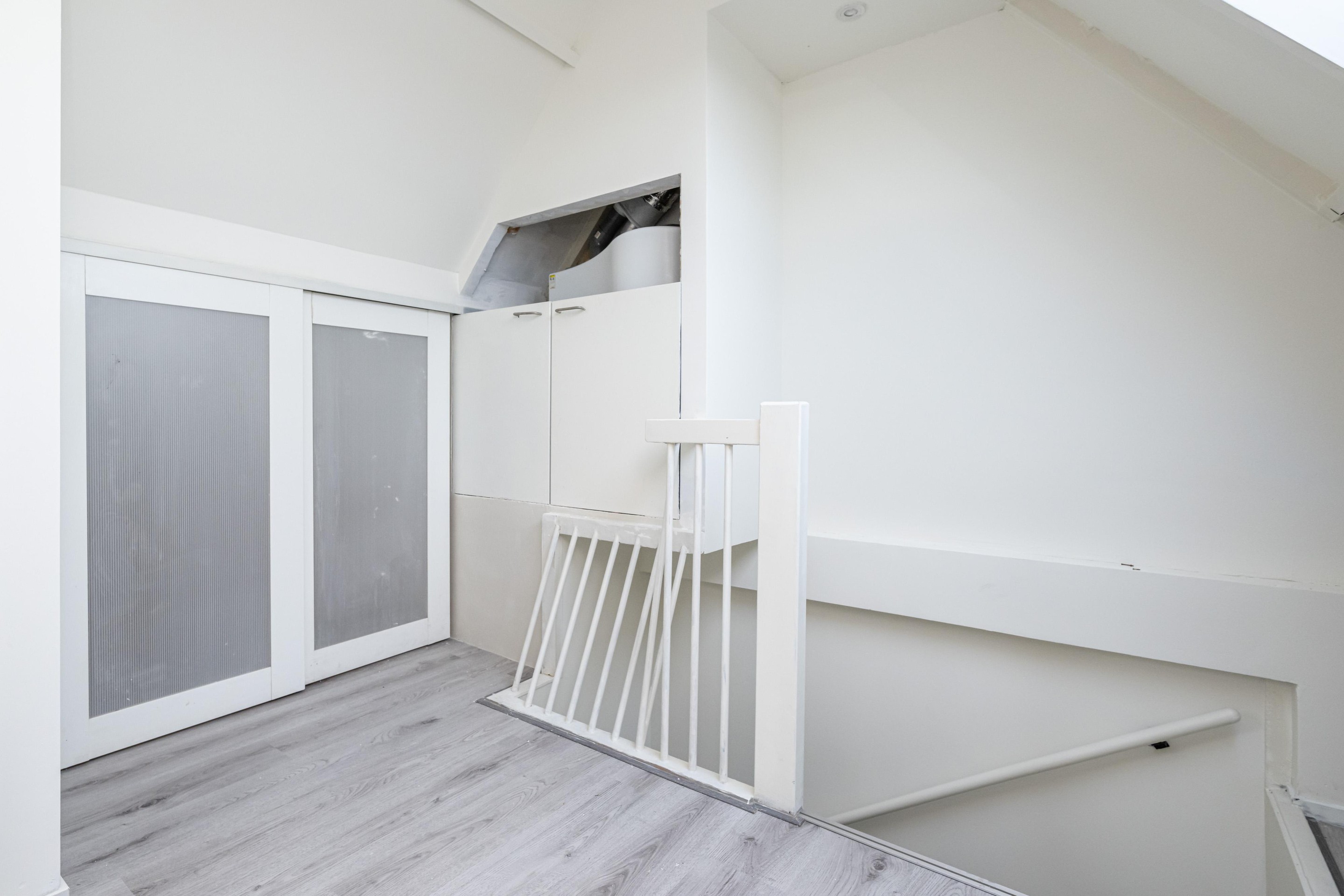 Laminaatvloer, kast met CV opstelling (Intergas CW6) en Velux dakraam.