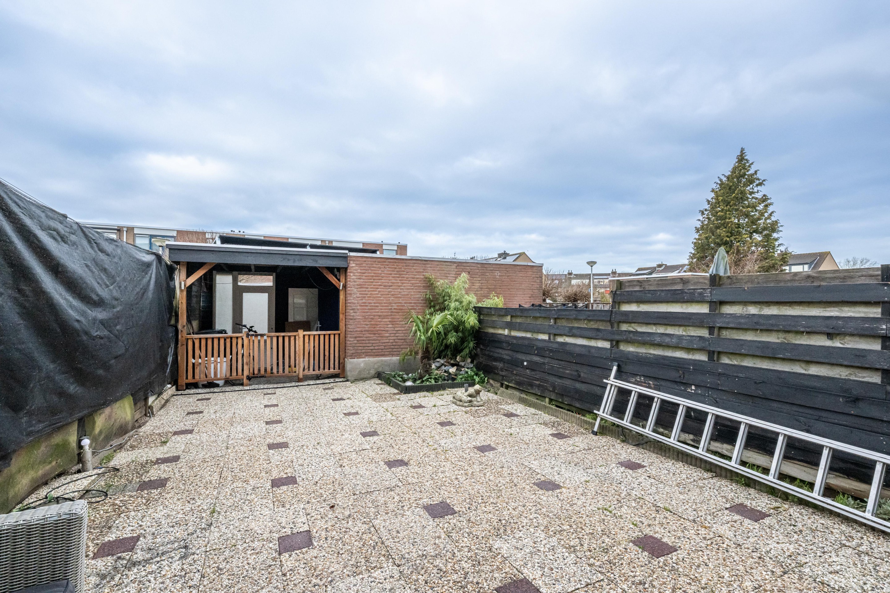 De achtertuin ligt op het westen, wat betekent dat u vooral in de middag en avond profiteert van de zon. Ideaal als u na een werkdag nog even buiten wilt zitten, wilt barbecueën of gewoon wilt genieten van een lange zomeravond. Of u nu groene vingers heeft en droomt van een border vol bloemen, of liever kiest voor een onderhoudsvriendelijke inrichting met een loungeset: hier kunt u alle kanten op.
