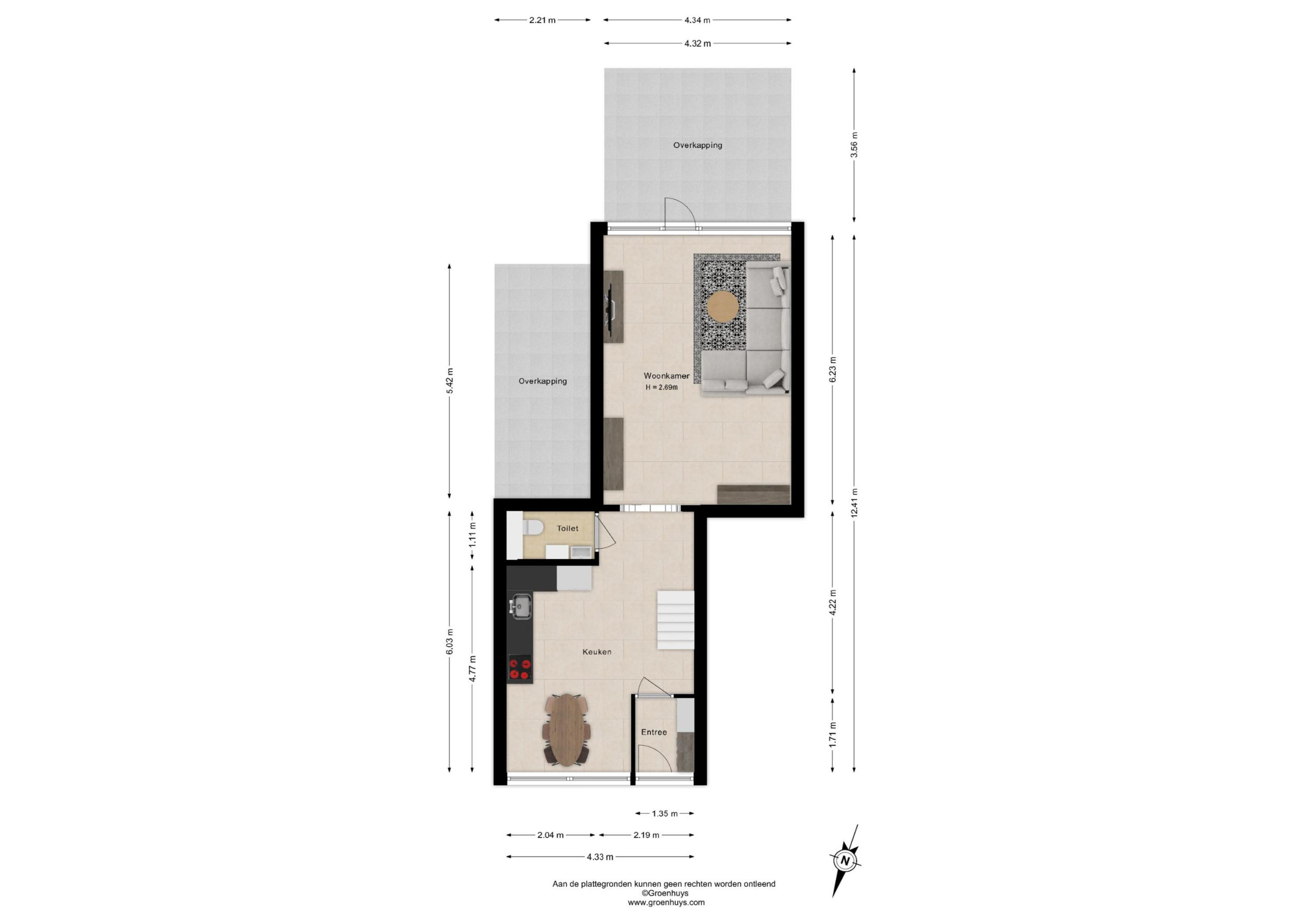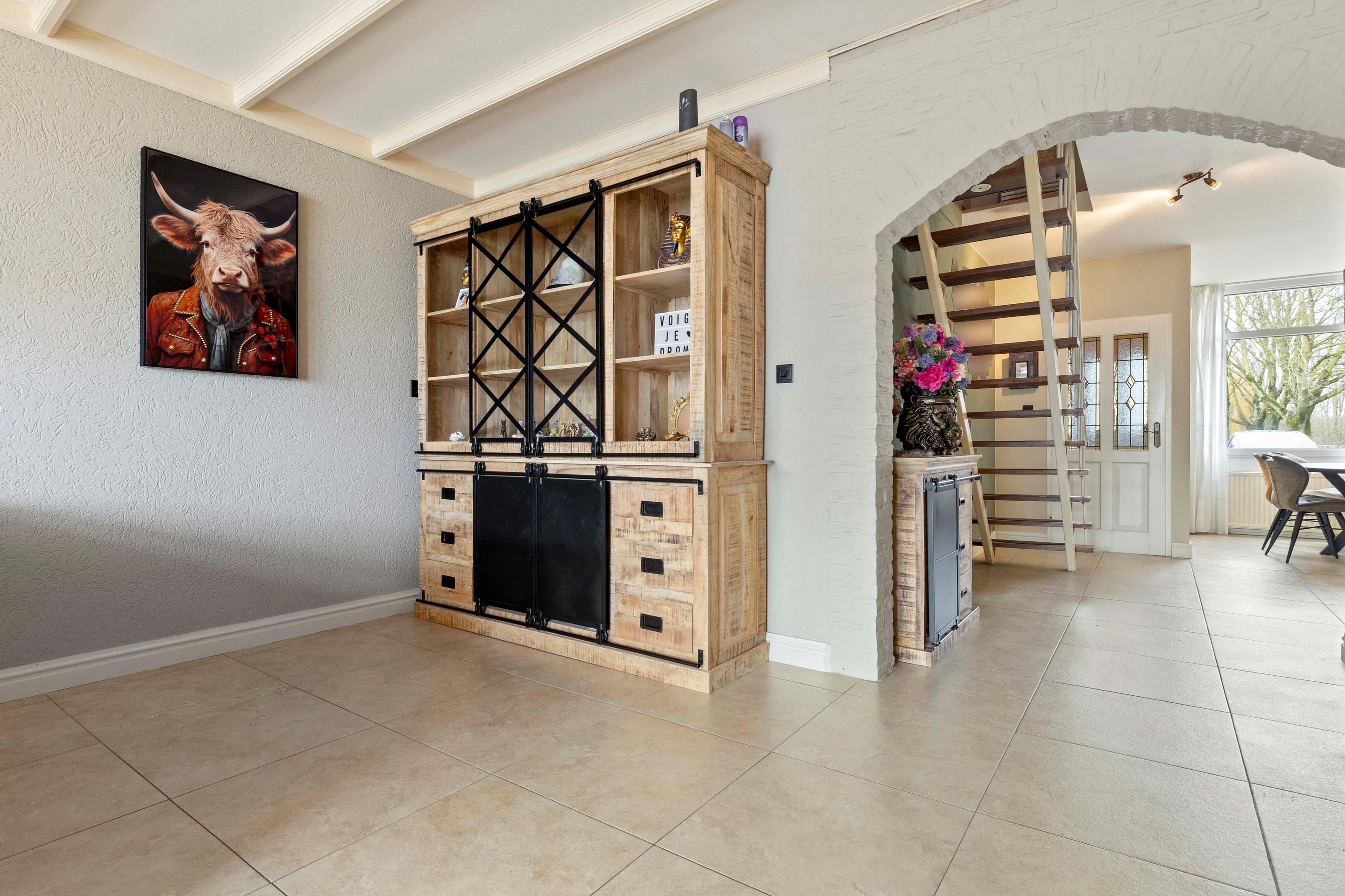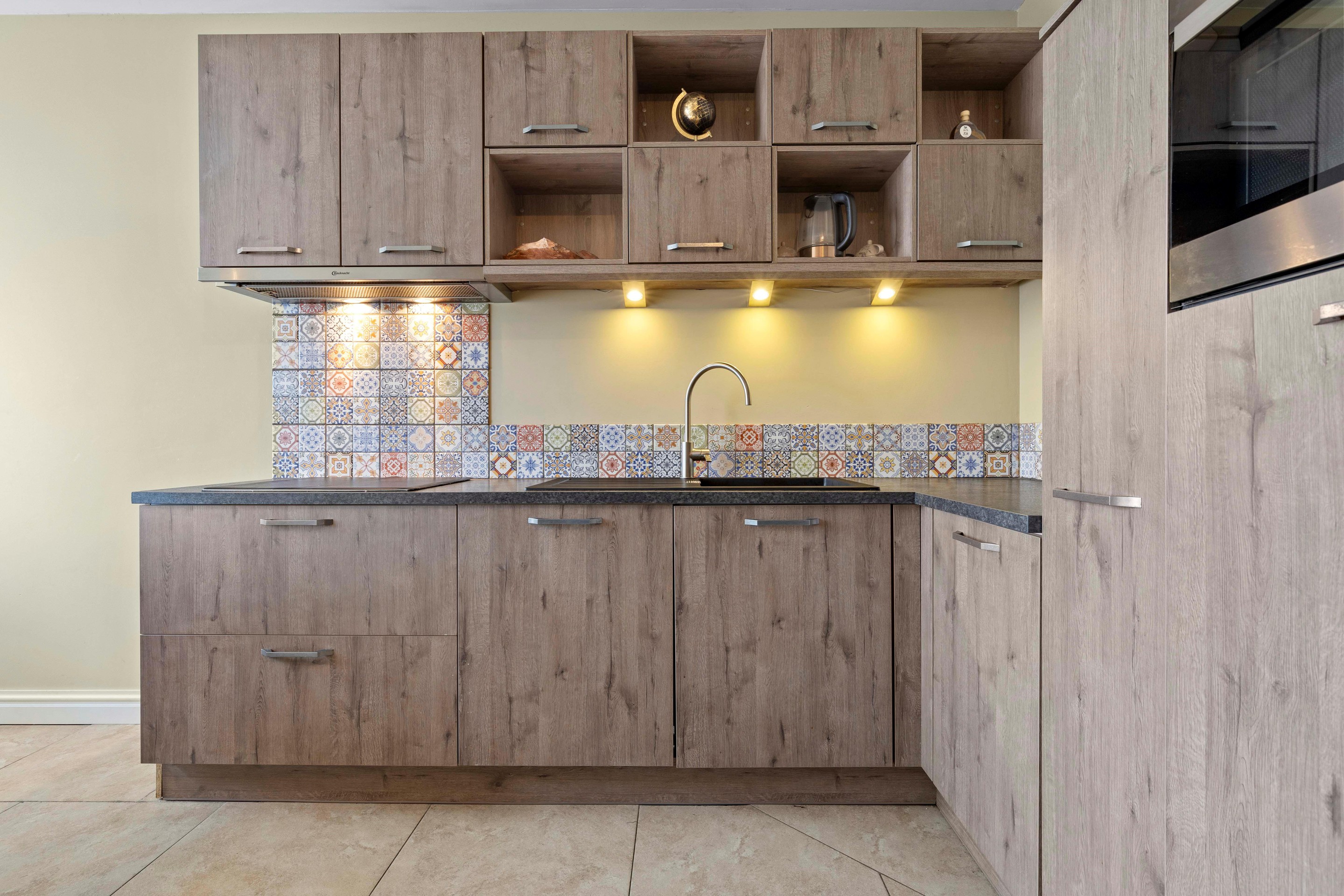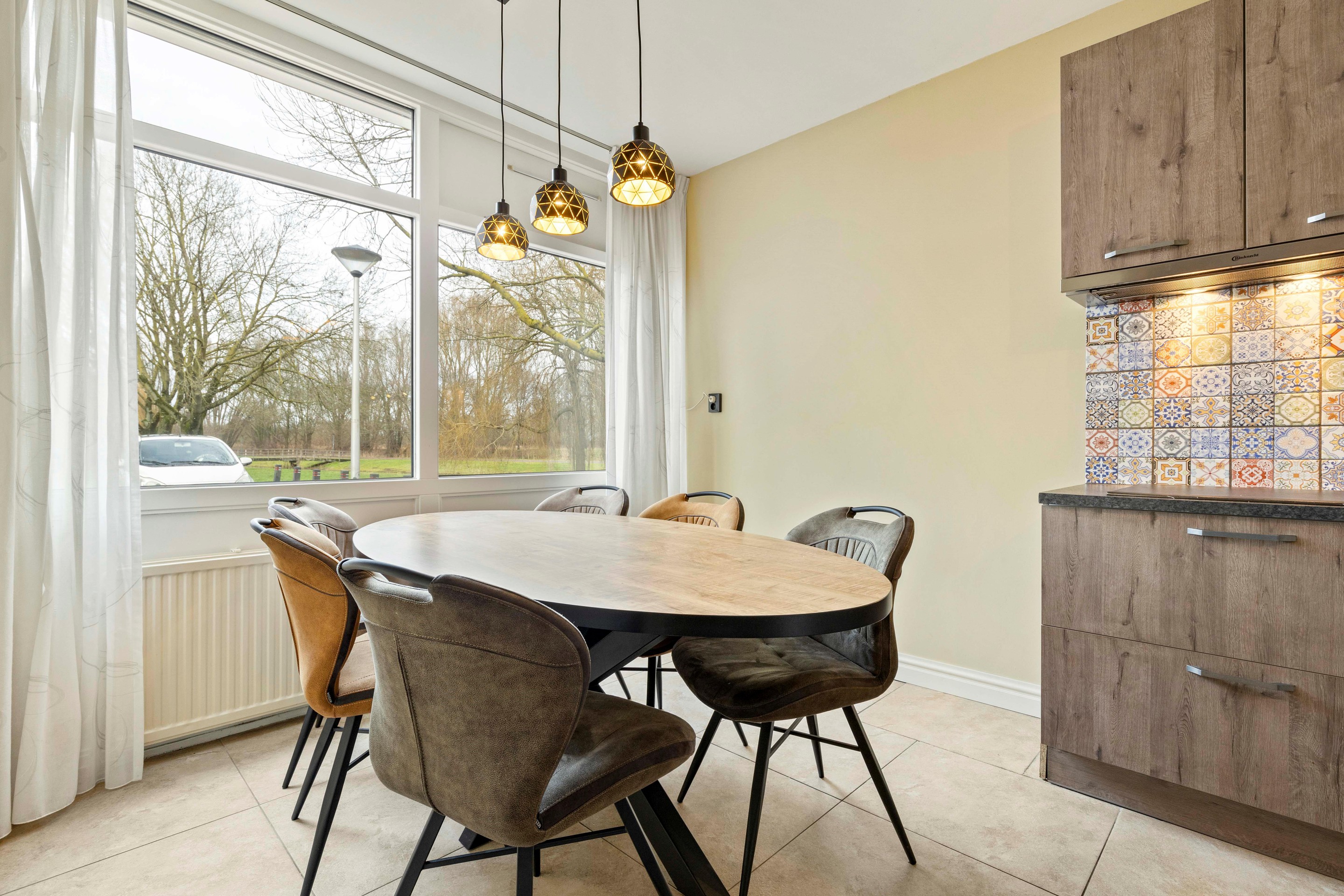 Aan de voorzijde bevindt zich de open keuken, met volop ruimte voor een eettafel en een schitterend vrij uitzicht over het aangrenzende natuurgebied. De keuken is recent vernieuwd (ca. 2024) en uitgevoerd in een praktische hoekopstelling met: