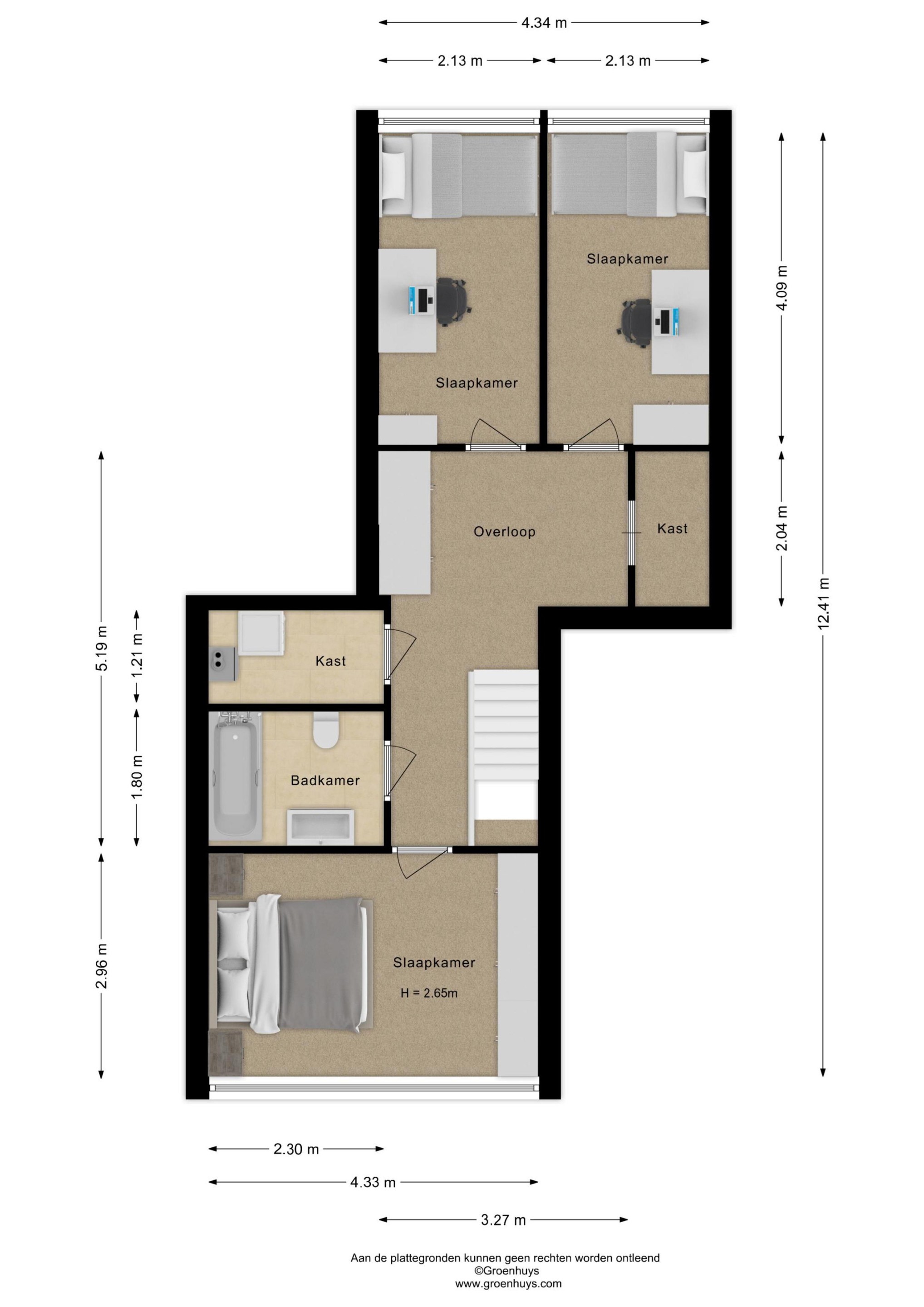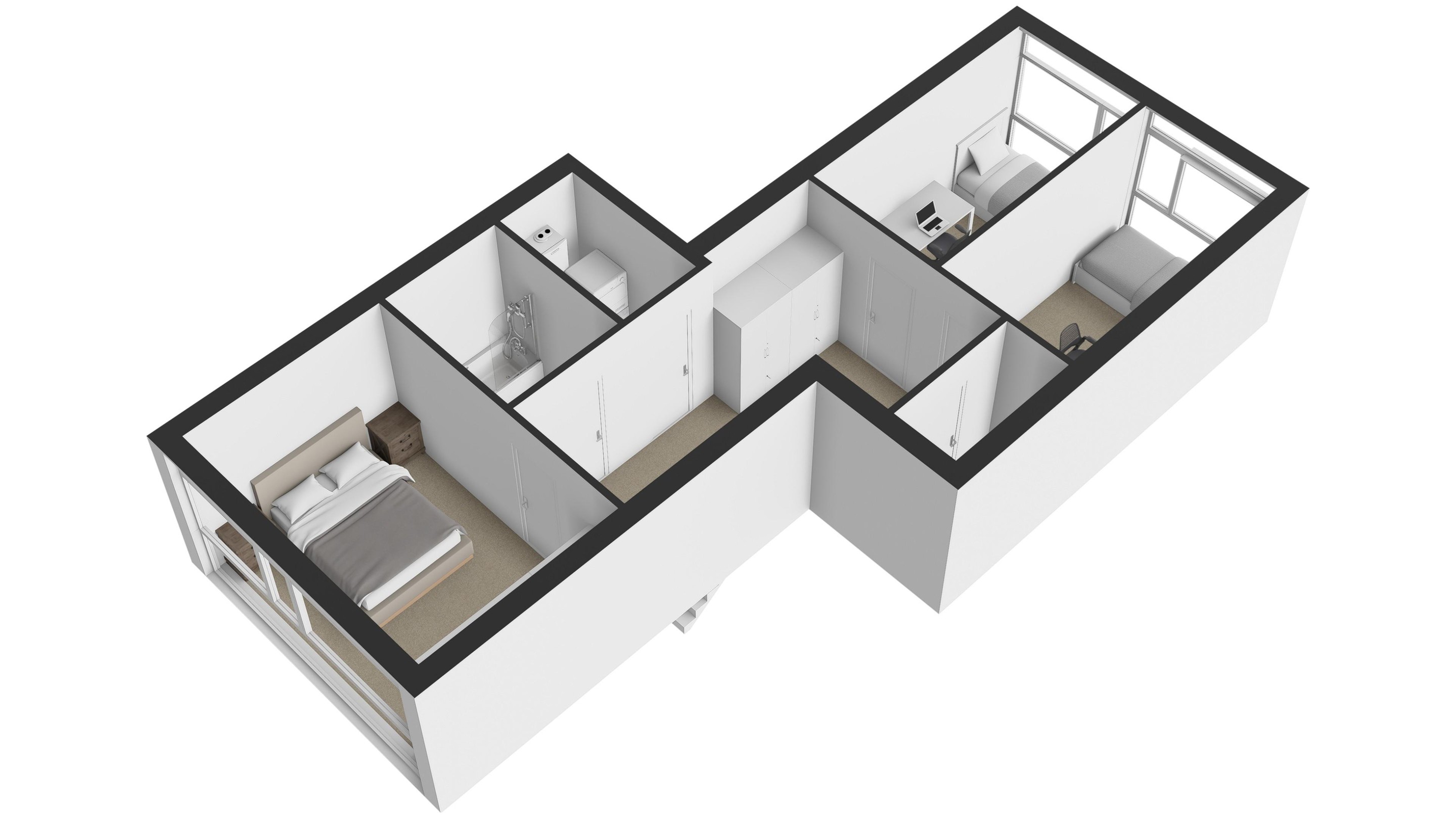 * Twee slaapkamers achterzijde: eveneens voorzien van rolluiken en een fraai vrij uitzicht.