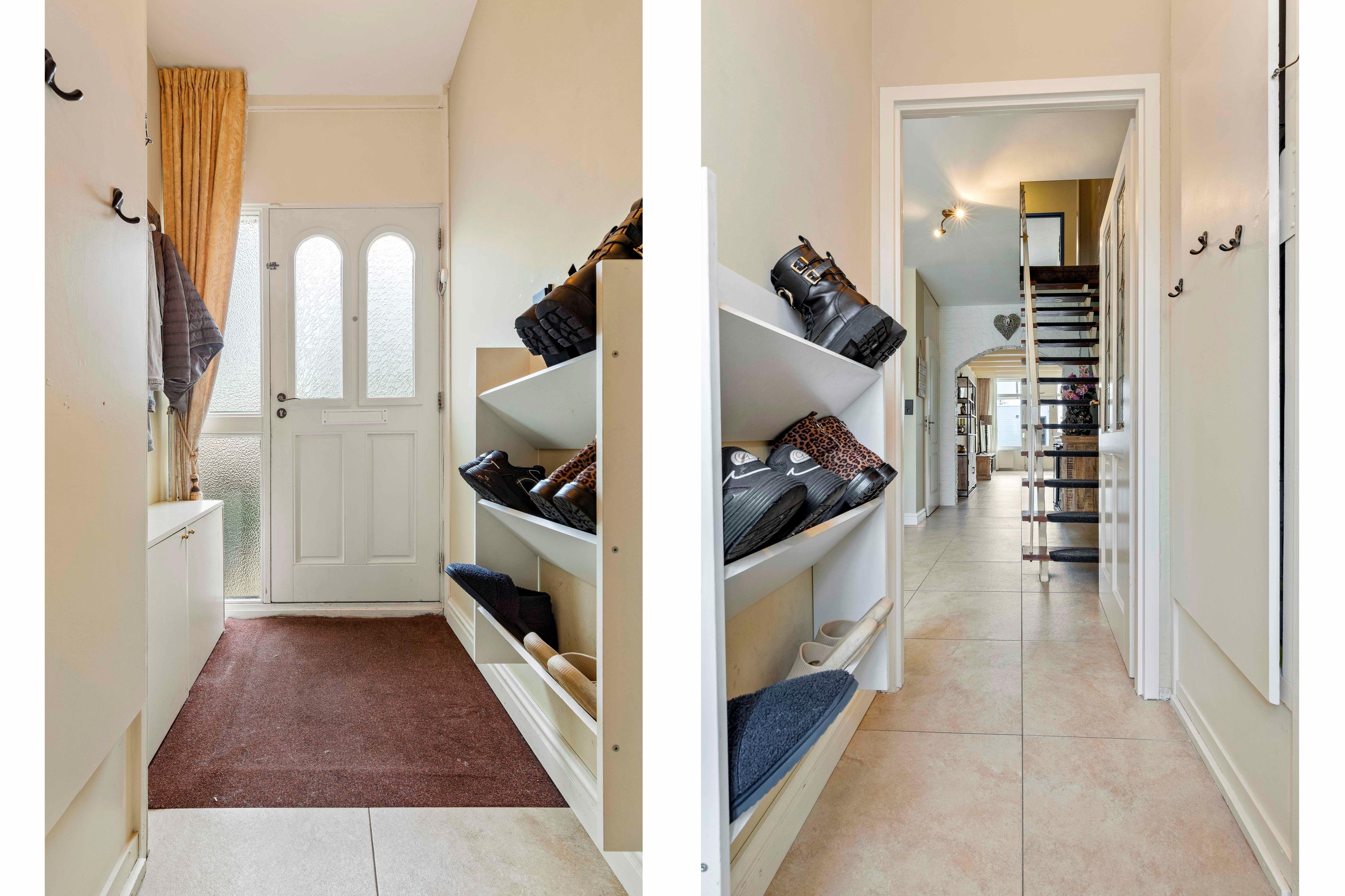 Via de verzorgd aangelegde voortuin met sierbestrating betreedt u de woning. In de hal vindt u toegang tot de woonkamer, de vernieuwde meterkast met slimme meters en glasvezelaansluiting en de vloerverwarmingsunit netjes weggewerkt in een ombouw.