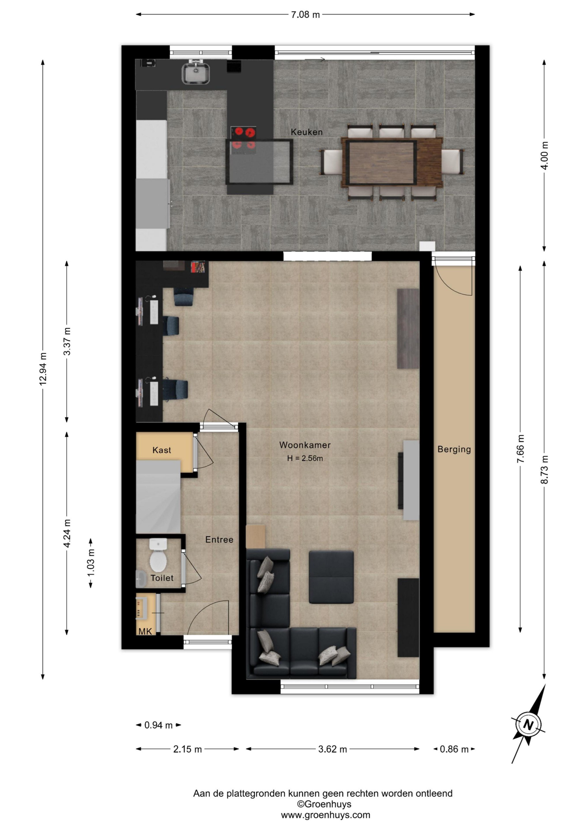 * Inpandige berging bereikbaar vanuit de keuken