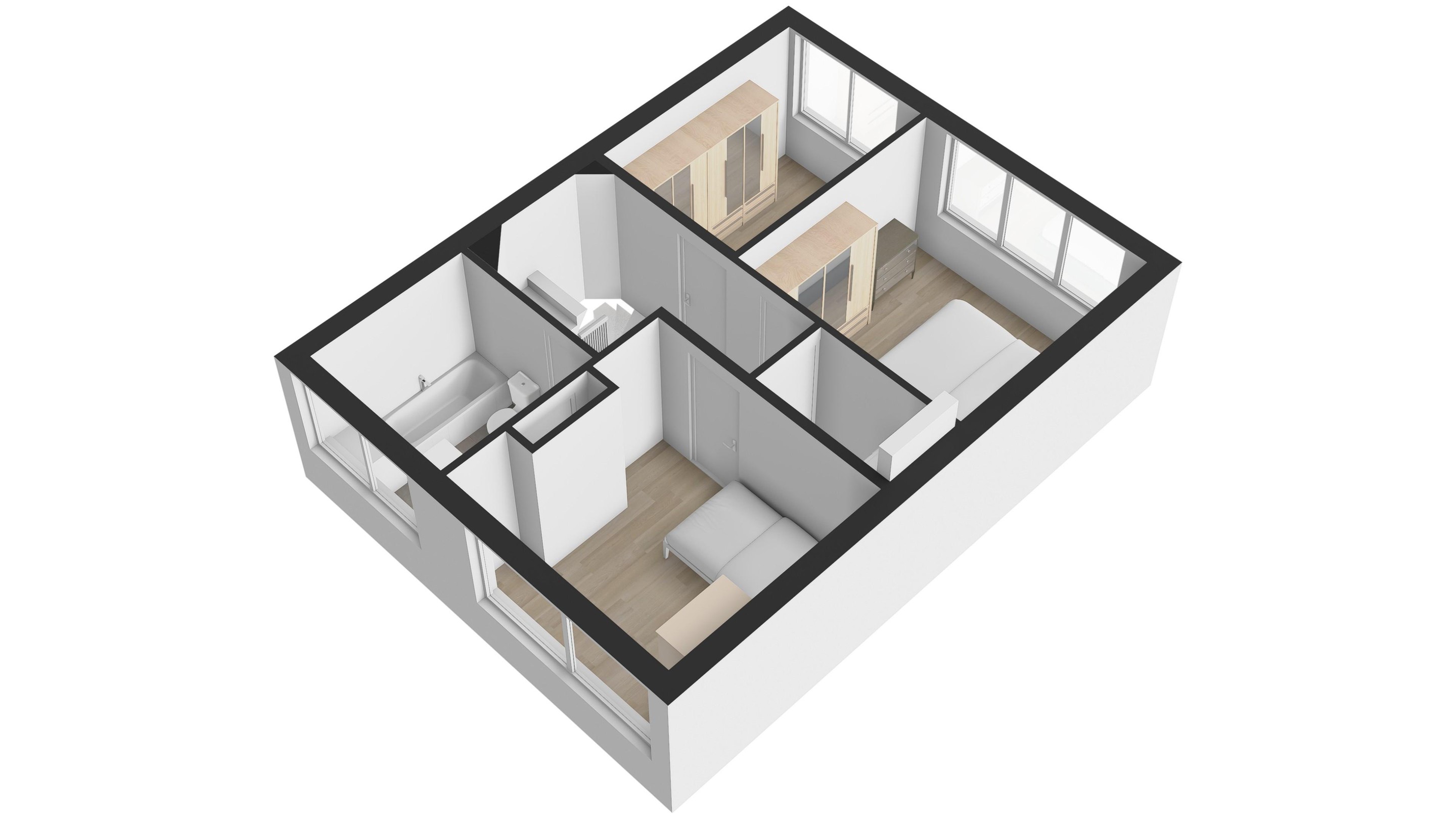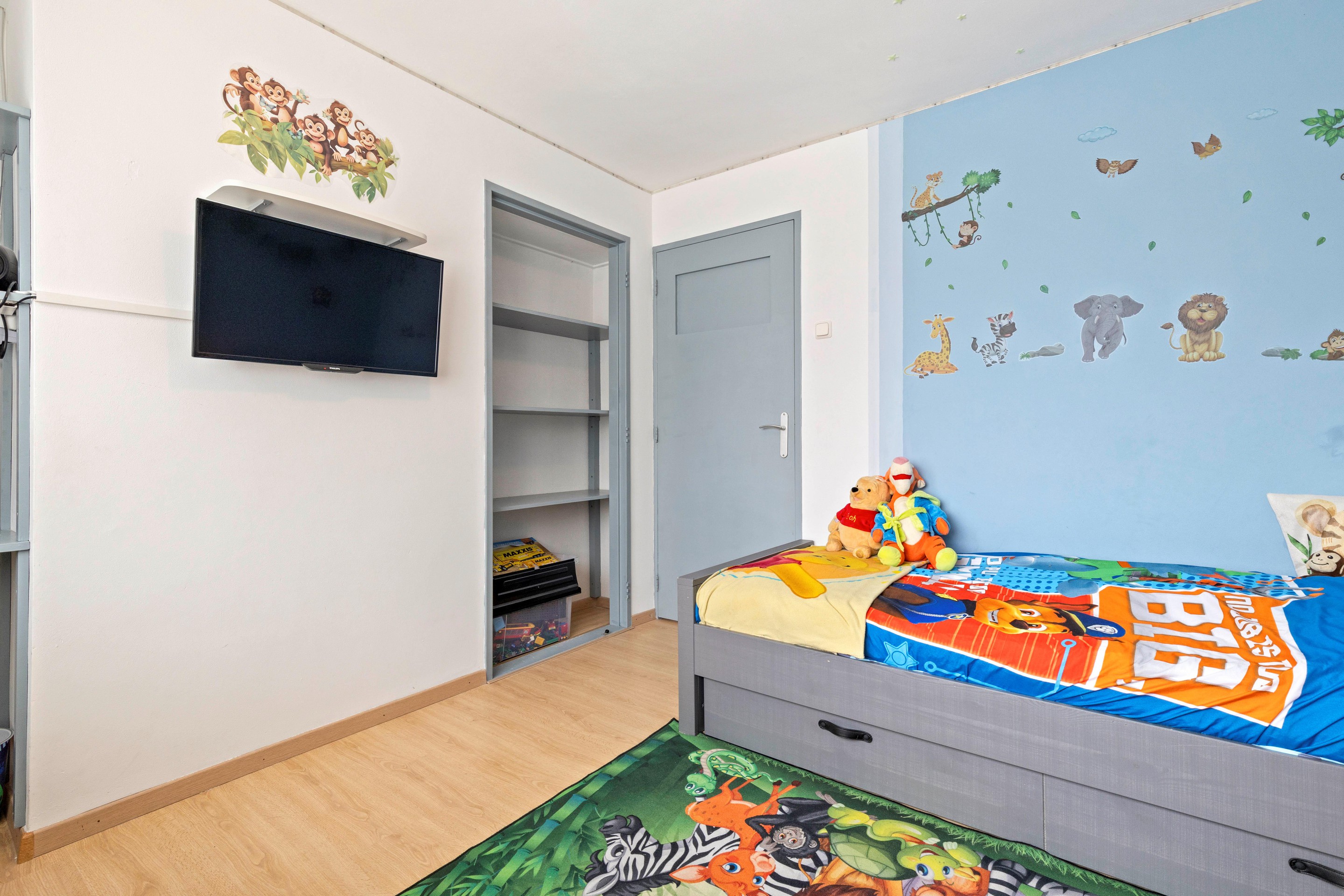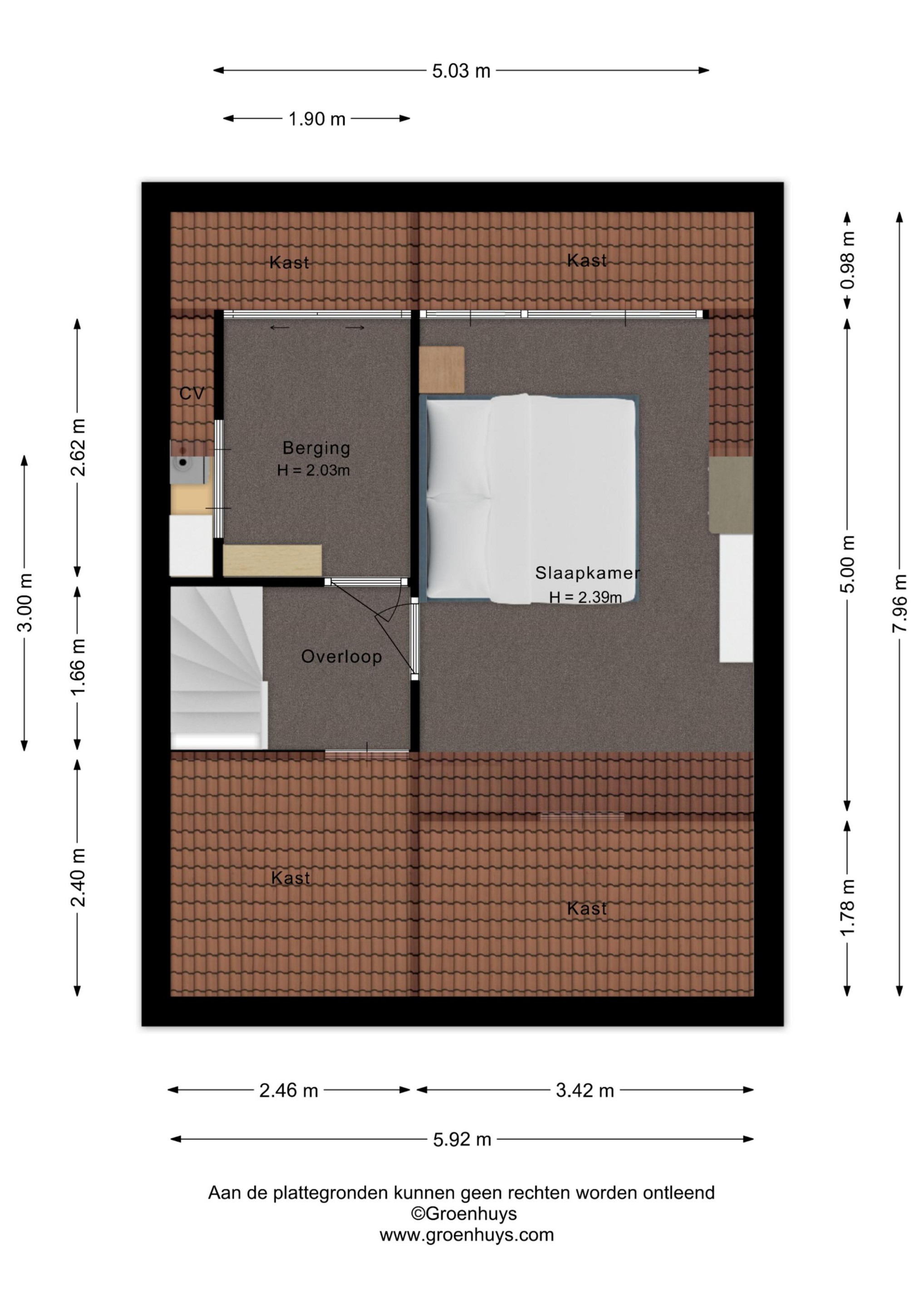 De ruime zolderkamer is voorzien van kunststof kozijnen met dubbele beglazing, airconditioning en praktische bergruimte achter de knieschotten. Deze verdieping is perfect als vierde slaapkamer, thuiskantoor of hobbyruimte.