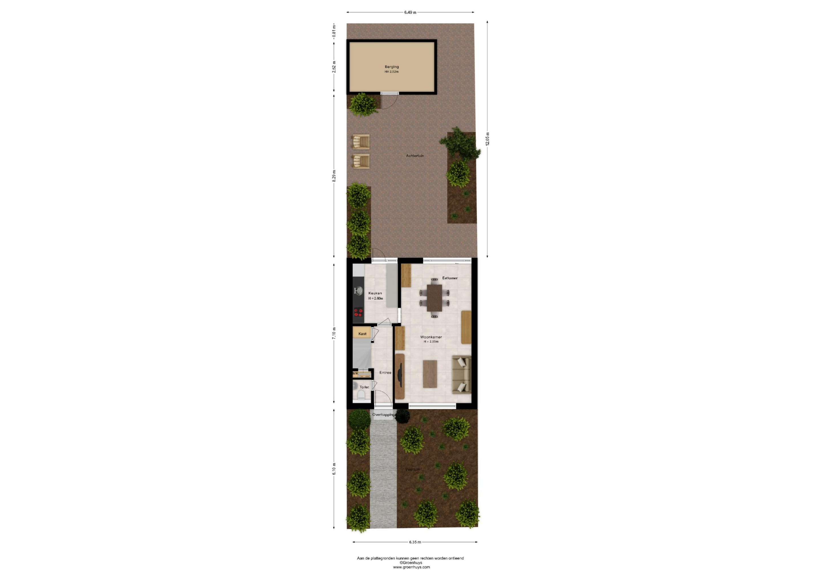 De fraai aangelegde achtertuin beschikt over een vijverpartij, zonneluifel, buitenverlichting, kraan en elektrapunten. De vrije achterom maakt de tuin extra praktisch. Achterin de tuin staat een stenen berging met licht en elektra.