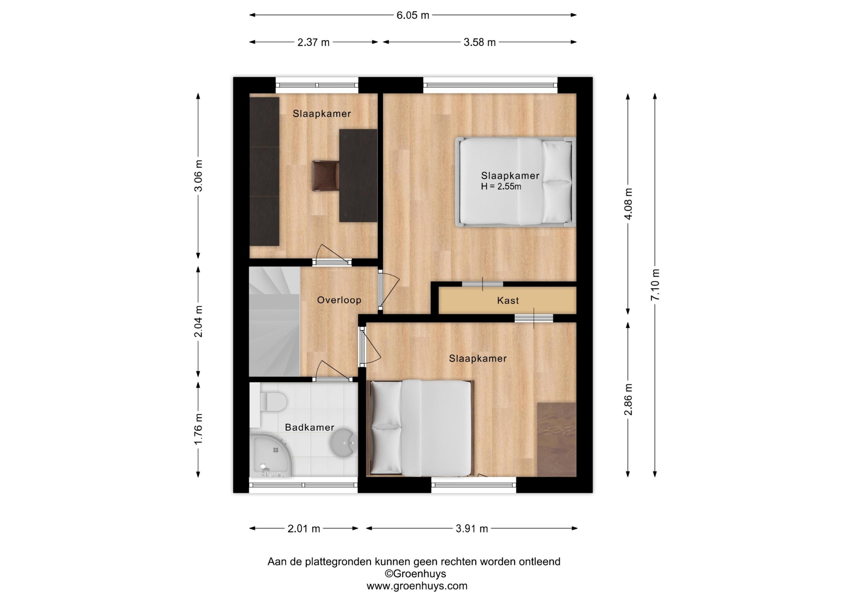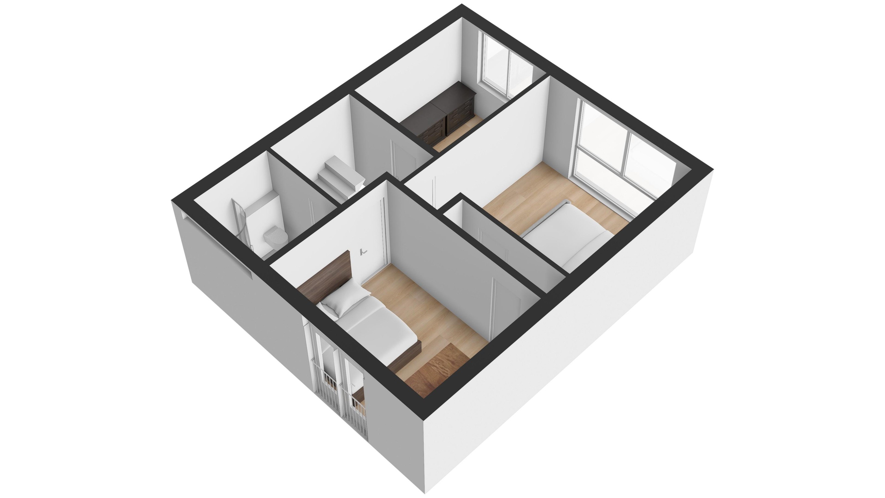 * Twee slaapkamers aan de achterzijde: beide met houten kozijnen, enkele beglazing en vaste inbouwkasten.