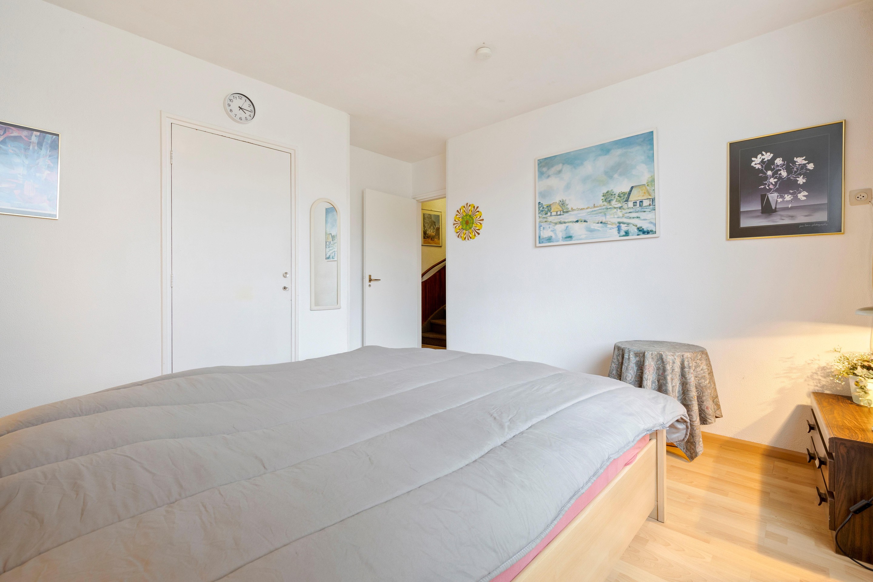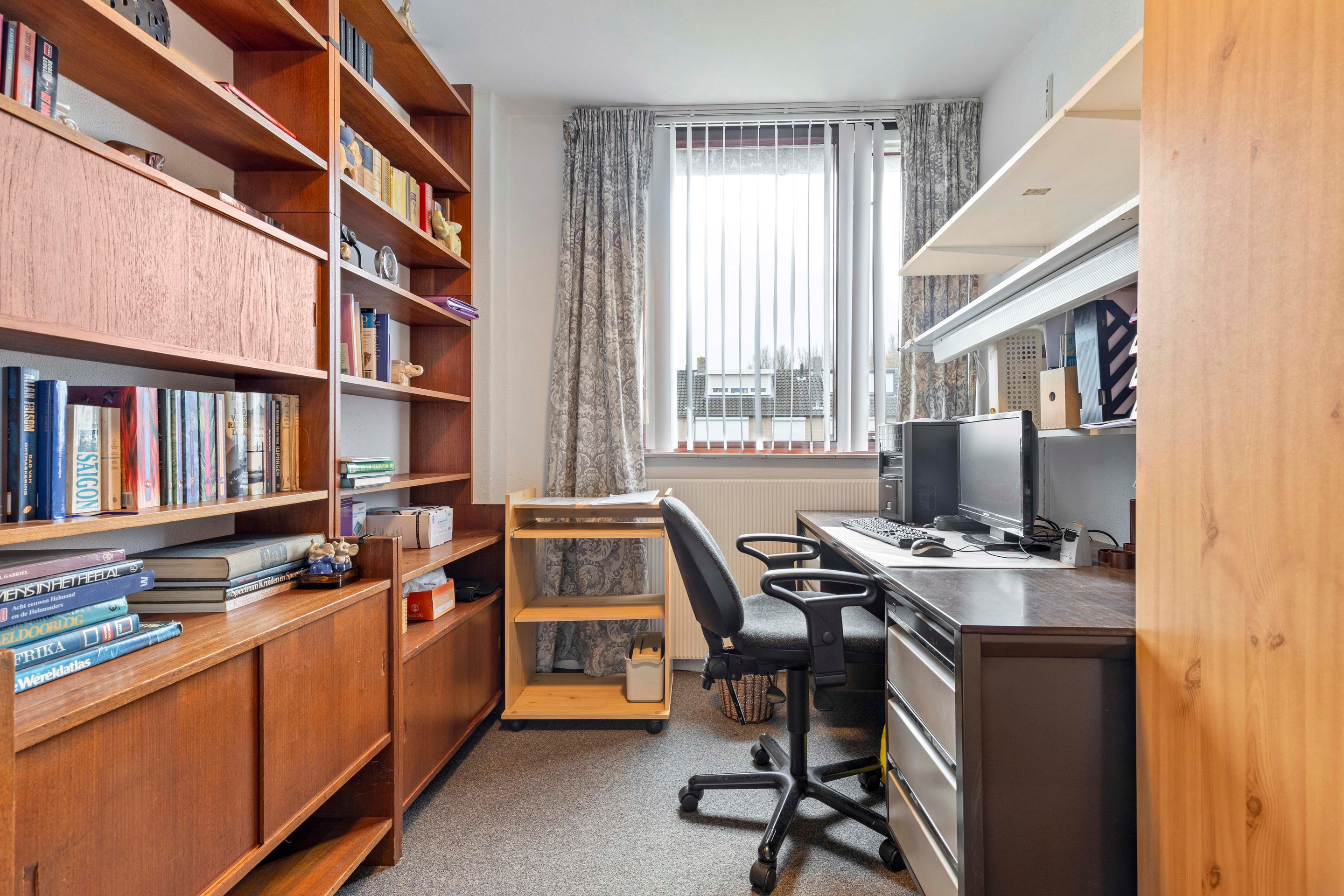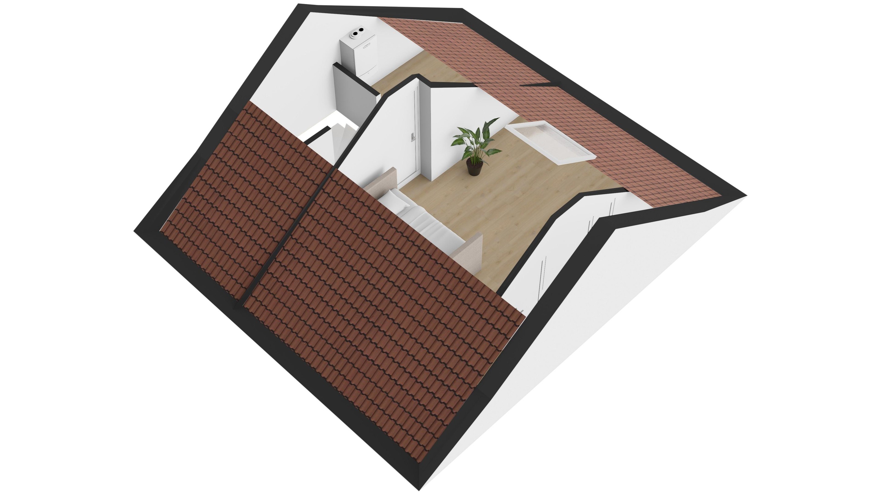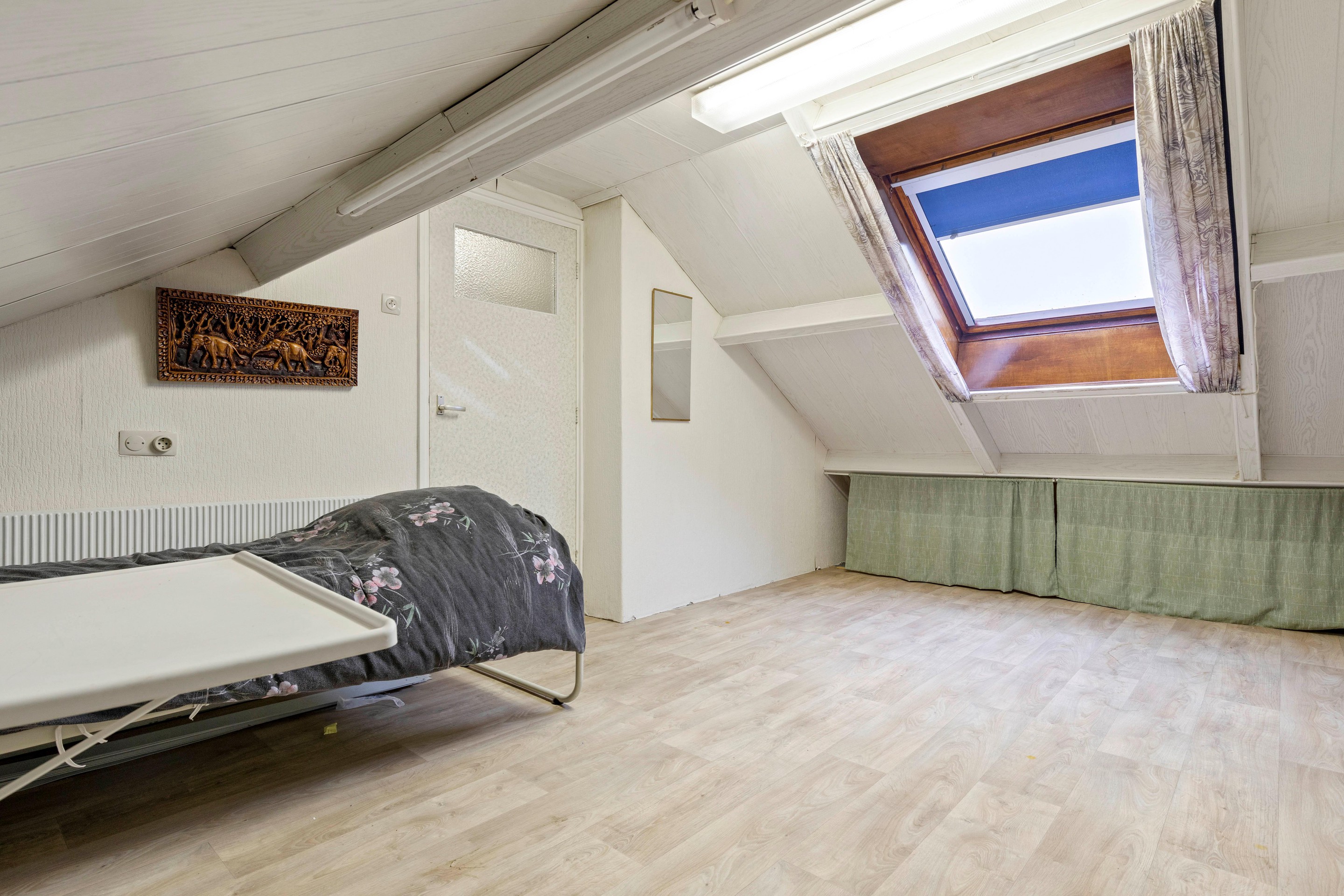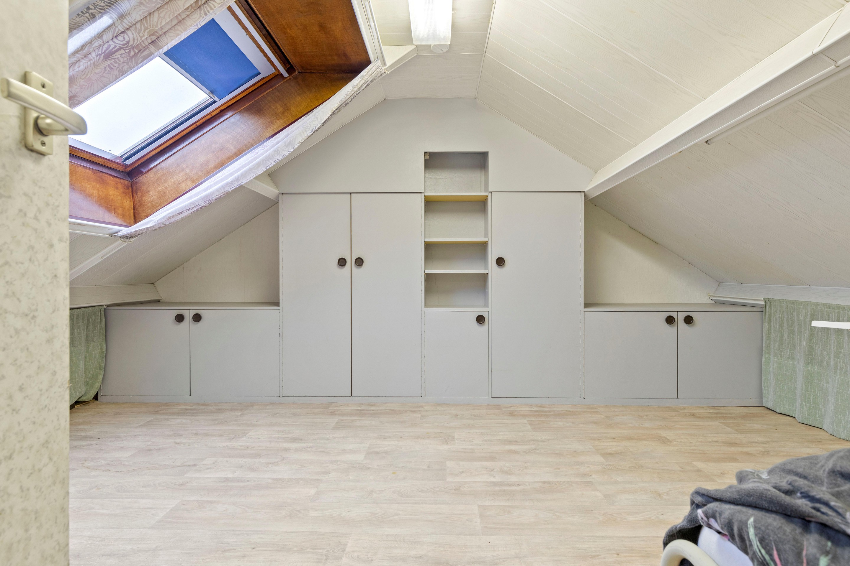 De zolderkamer is voorzien van een vaste kastenwand, dakraam met verduistering, dakisolatie en verwarming. Achter de knieschotten bevindt zich extra bergruimte. Een ideale extra (slaap) kamer.