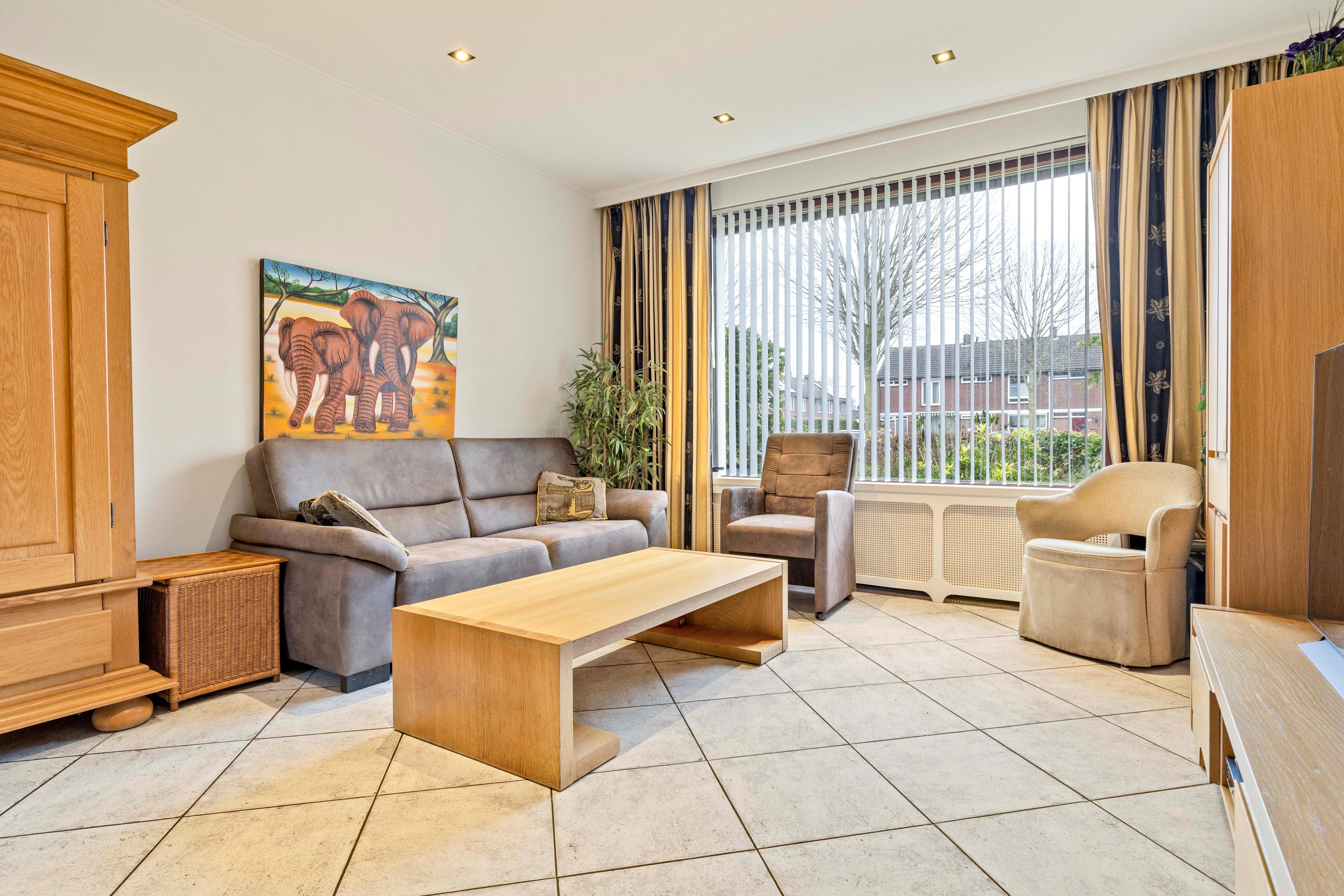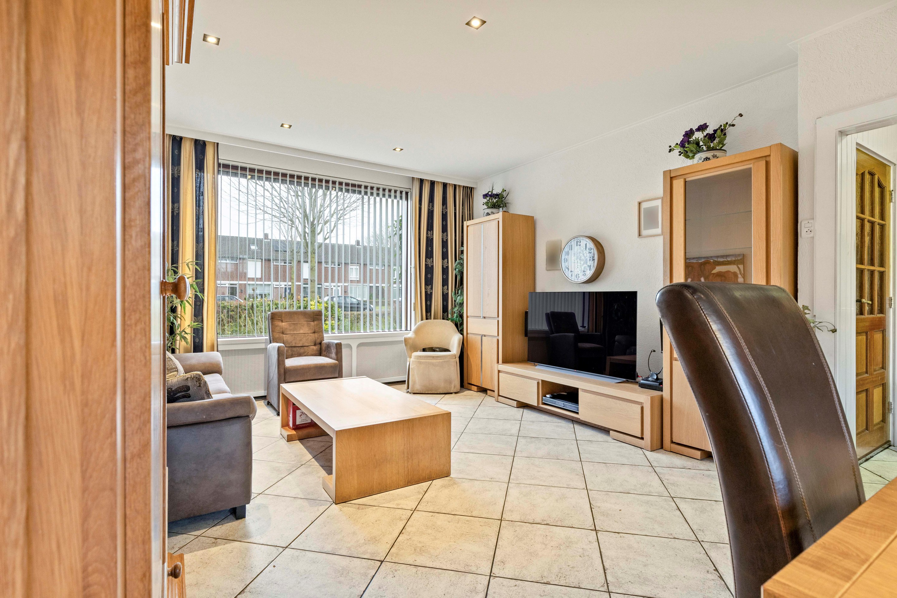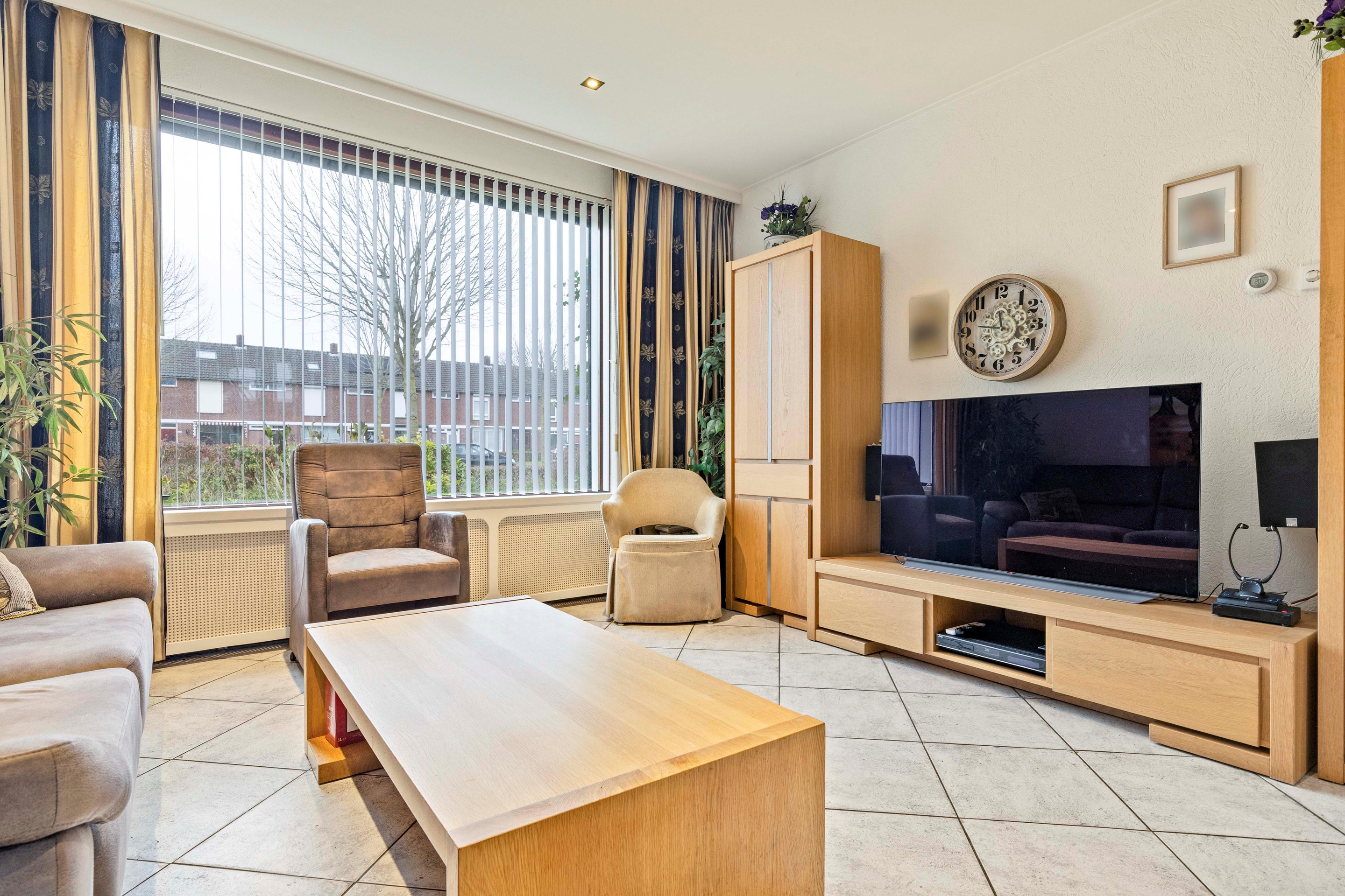 De woonkamer is heerlijk licht dankzij de grote raampartijen en openslaande tuindeuren aan de achterzijde. De ruimte is sfeervol afgewerkt met een tegelvloer, radiatorombouw en een strak Plameco-plafond met inbouwspots.
