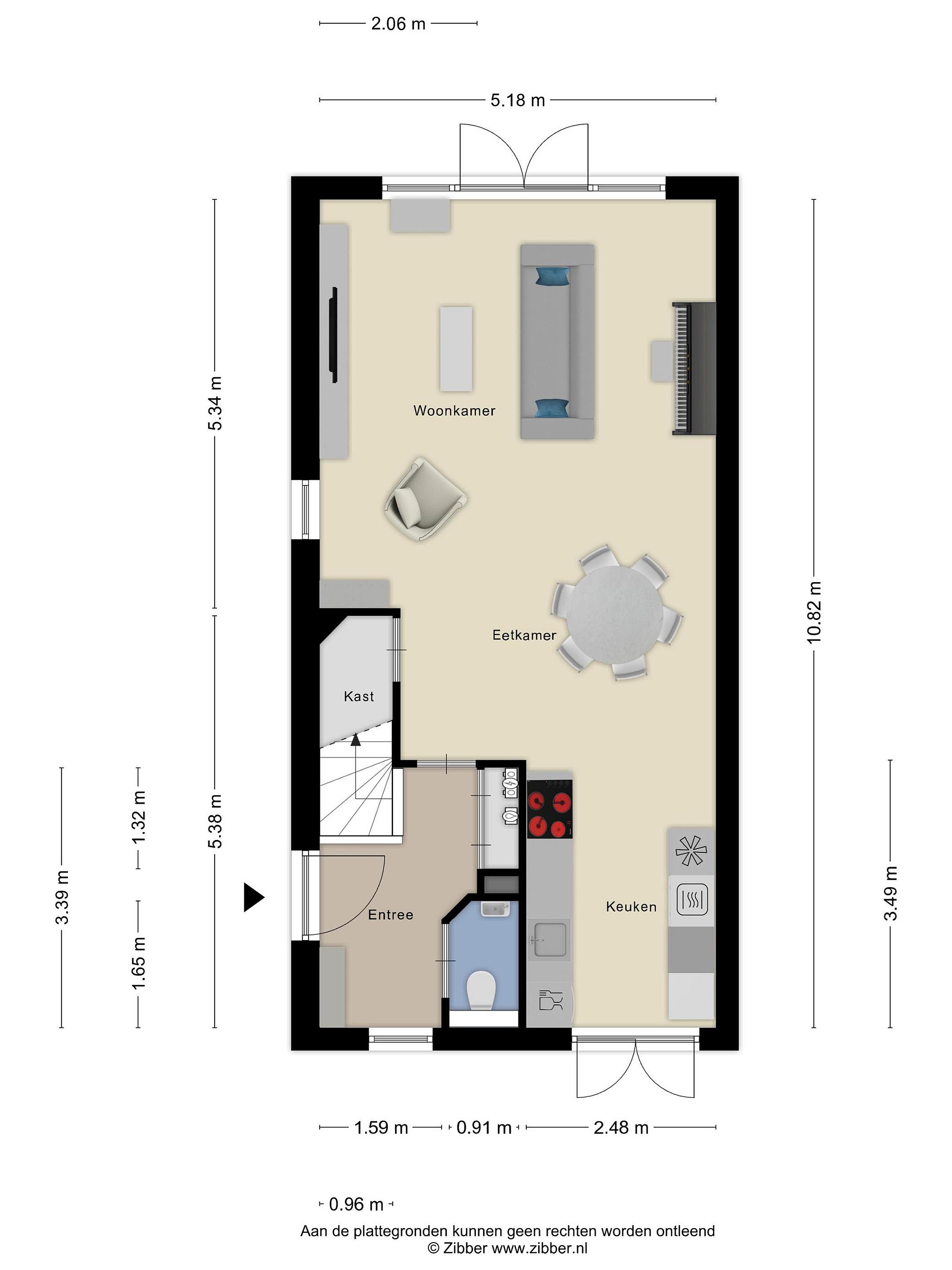 Met toegang tot de vertrekken en vaste trap naar de verdieping.