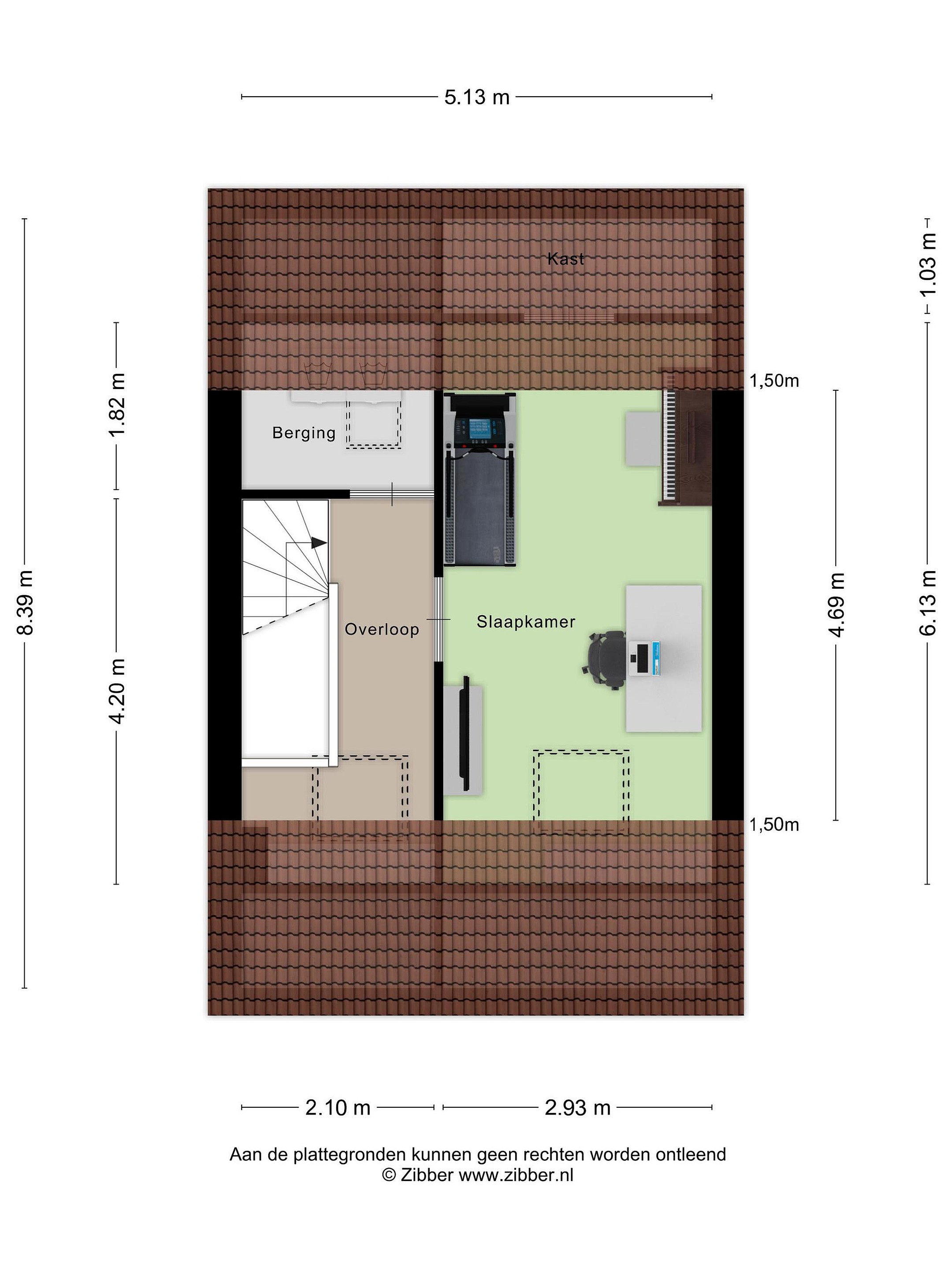 Met groot velux dakvenster en toegang tot de vertrekken.