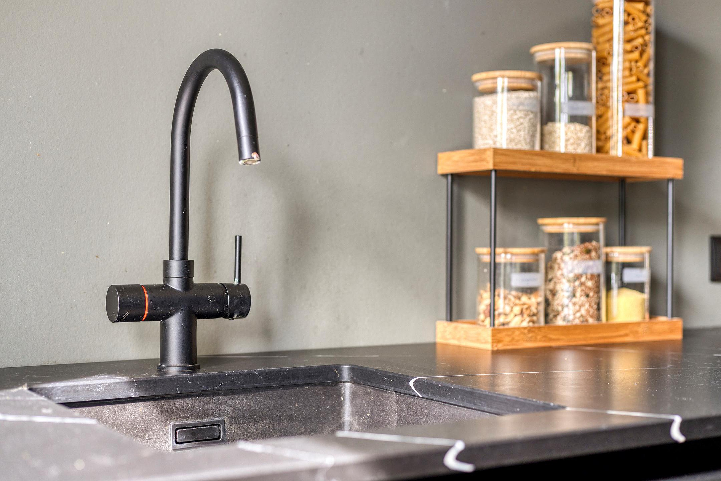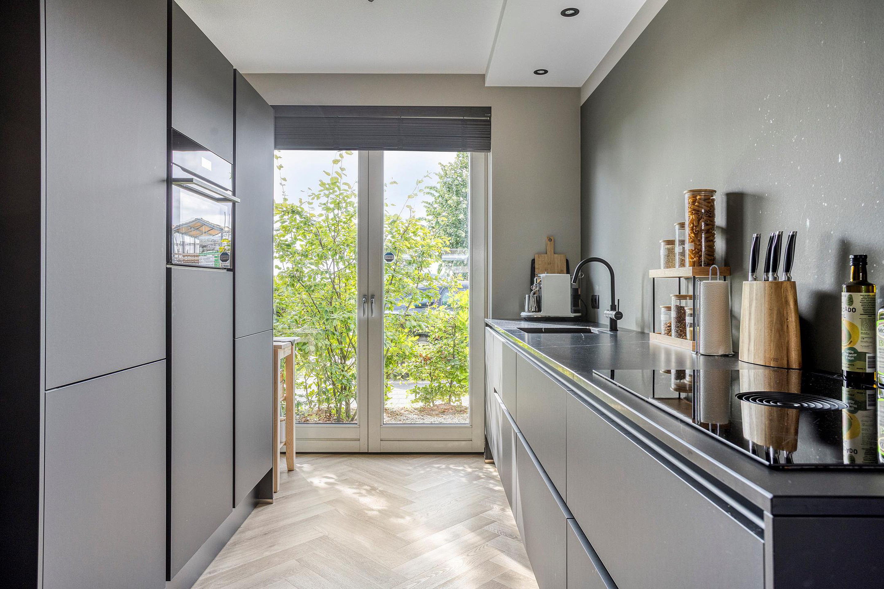 Daarnaast is de keuken voorzien van lades, een lichtkoof en openslaande deuren naar de voortuin.