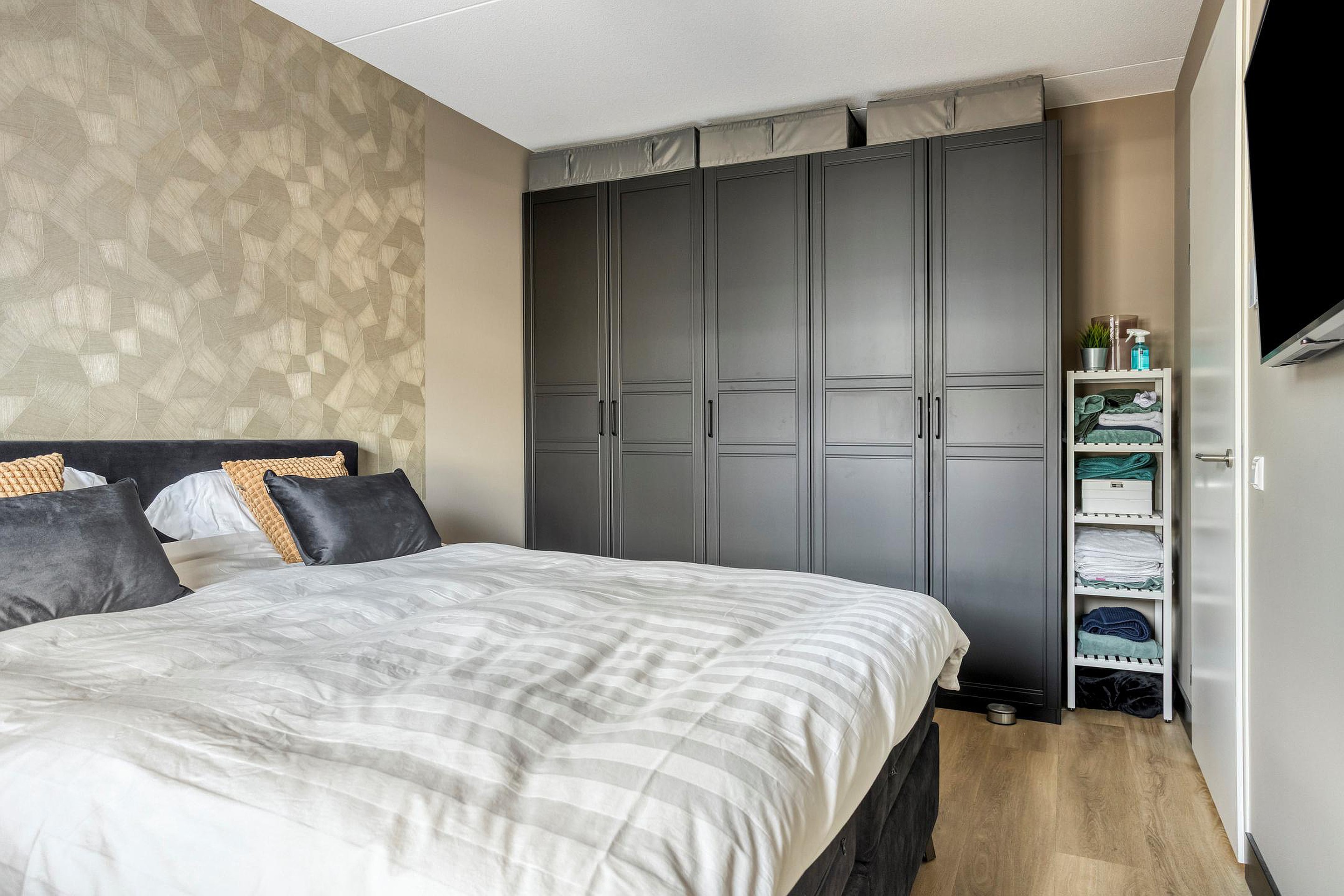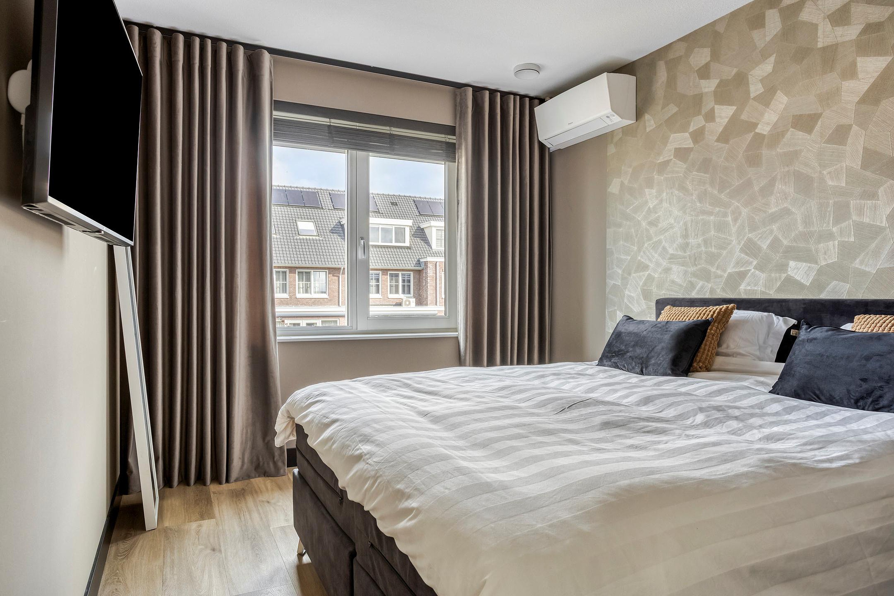Ruime slaapkamer aan de achterzijde van de woning met airconditioning.