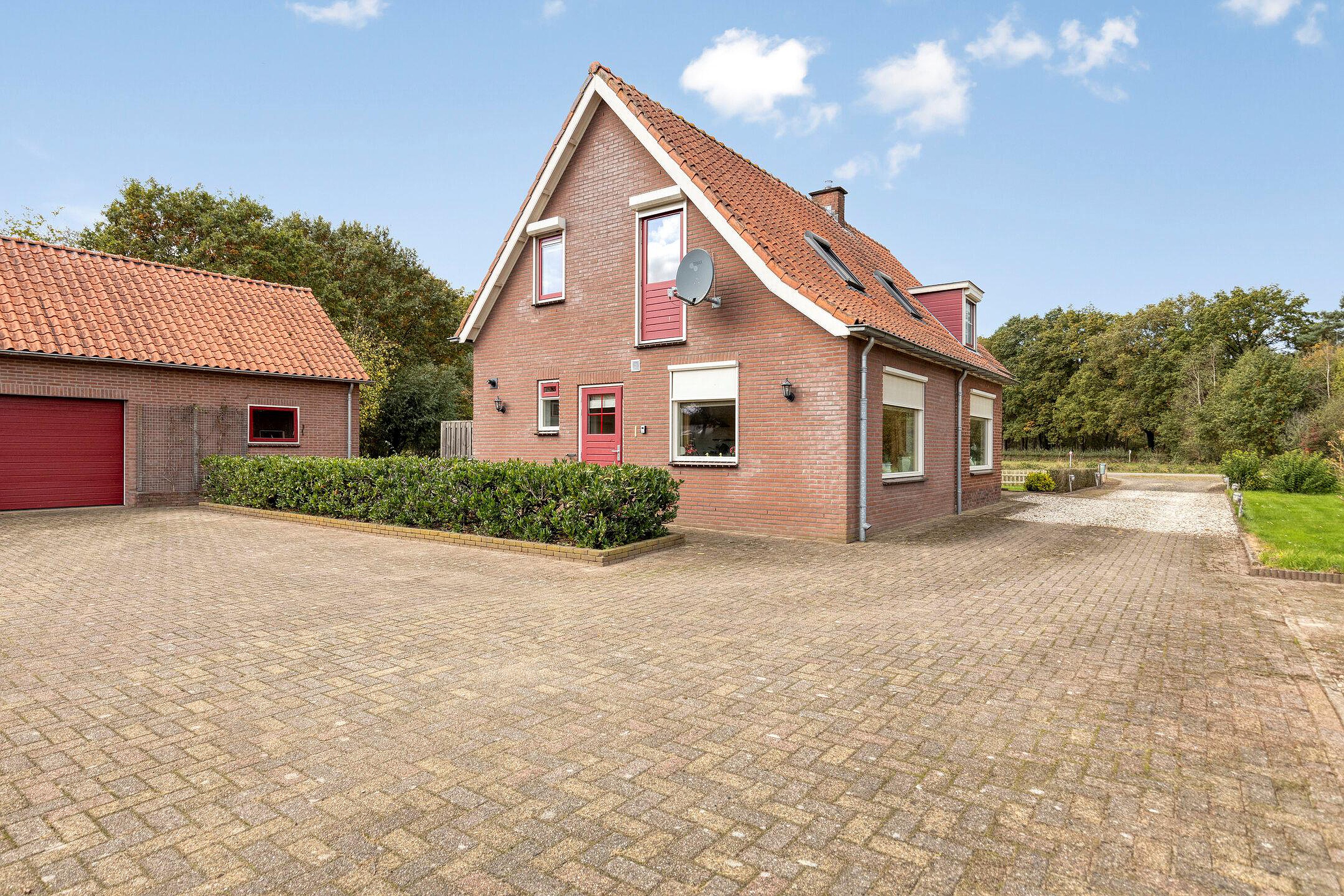 Nabij landgoed ’t Zand, de Markeplas en het natuurgebied ’t Klooster gelegen UITGEBOUWD VRIJSTAAND WOONHUIS met grote dubbele garage op een perceel van ruim 1 hectare (11.090 m2).