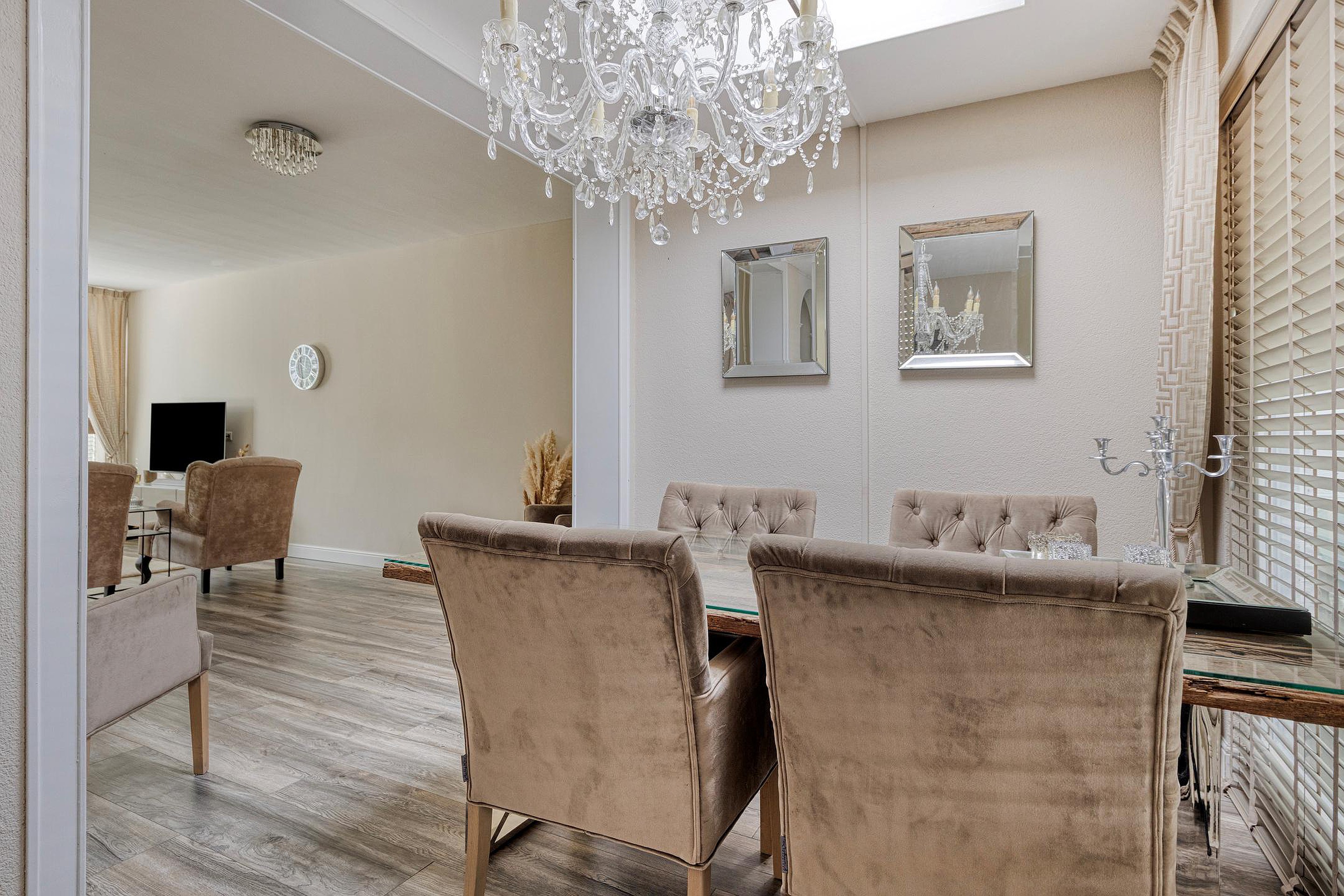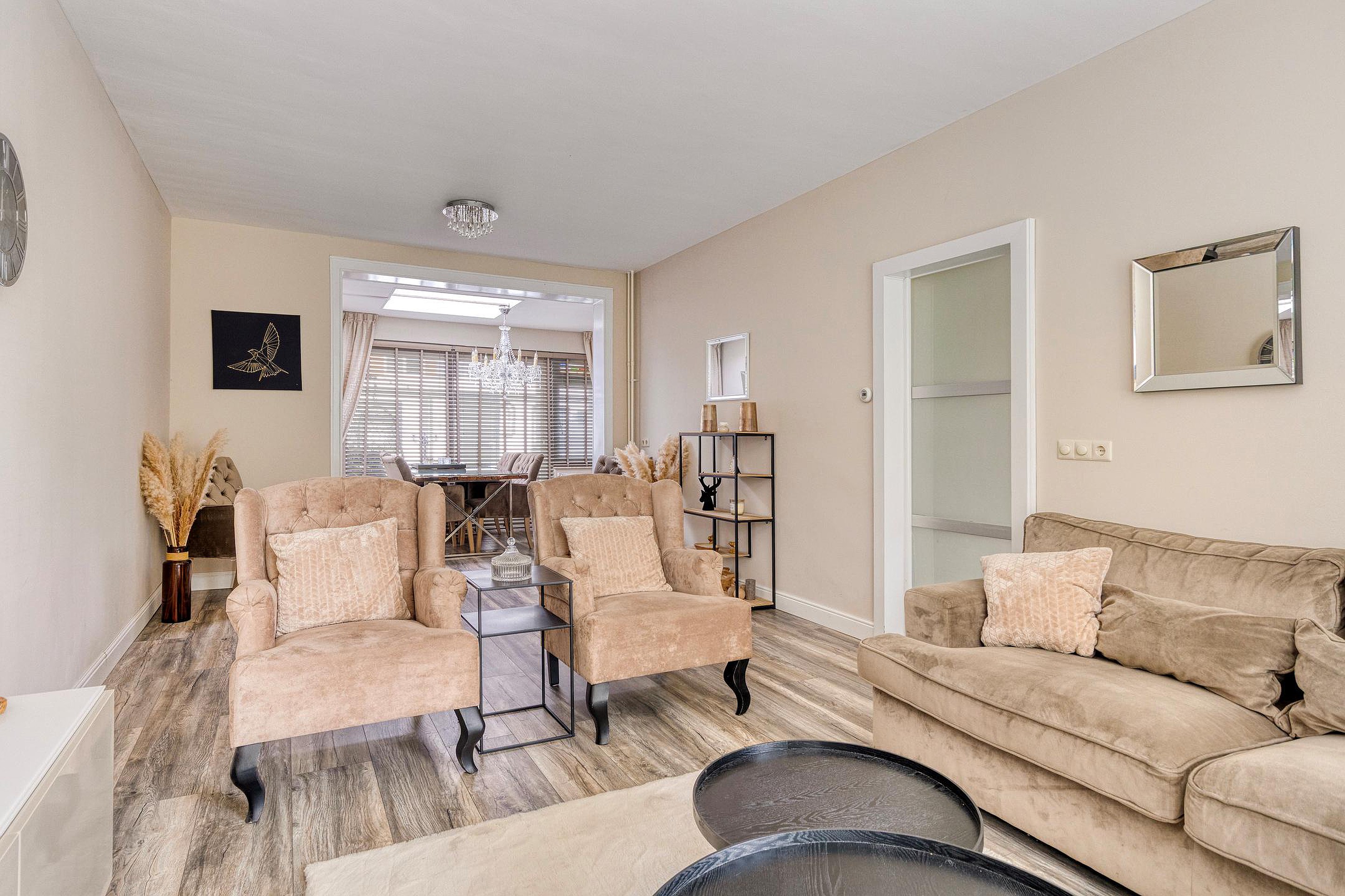 - Sfeervolle uitgebouwde woonkamer met lichtkoepel en schuifpui