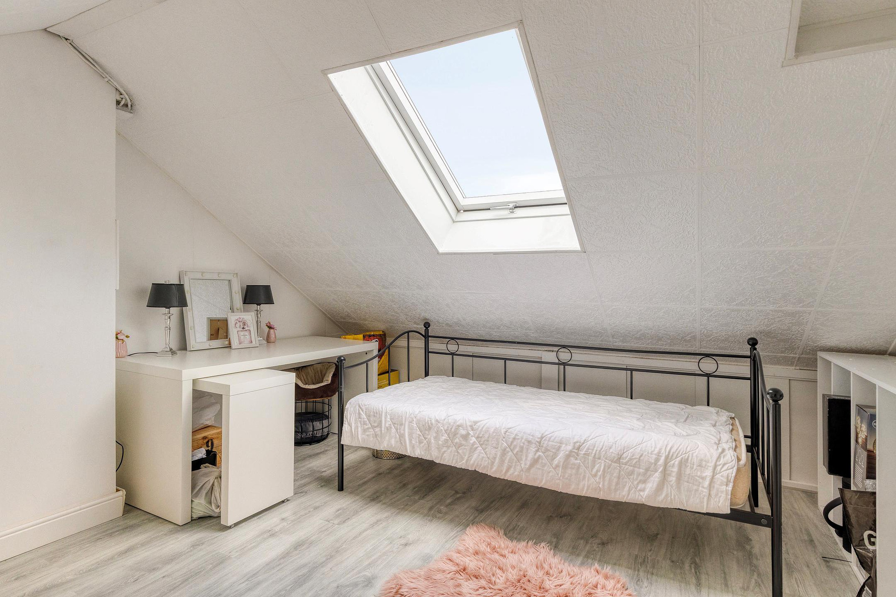 Via een vaste trap bereik je de tweede verdieping. Hier bevindt zich de vierde slaapkamer, voorzien van een dakraam.