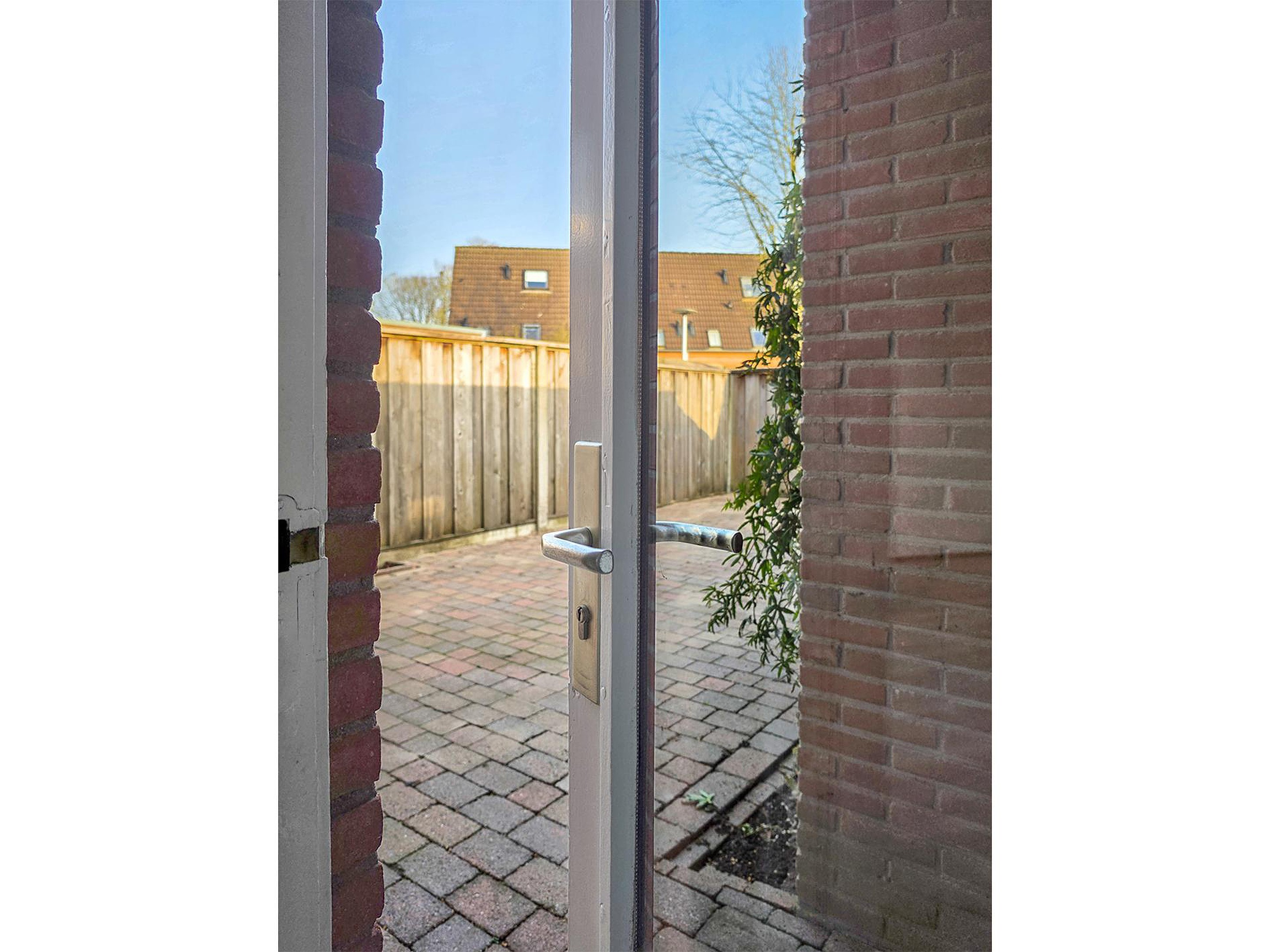 De tuin aan de achterzijde heeft een achterom en is onderhoudsarm.