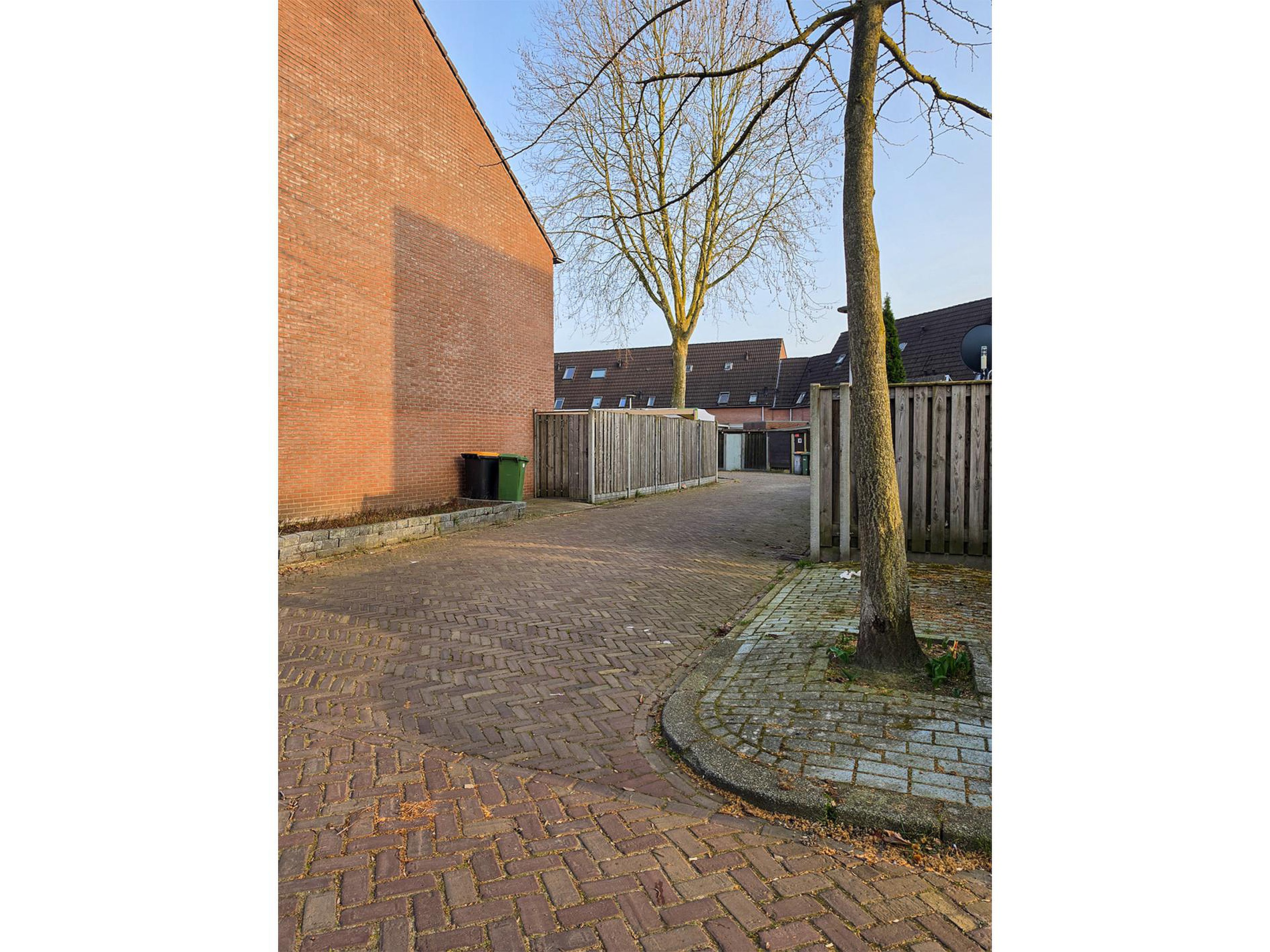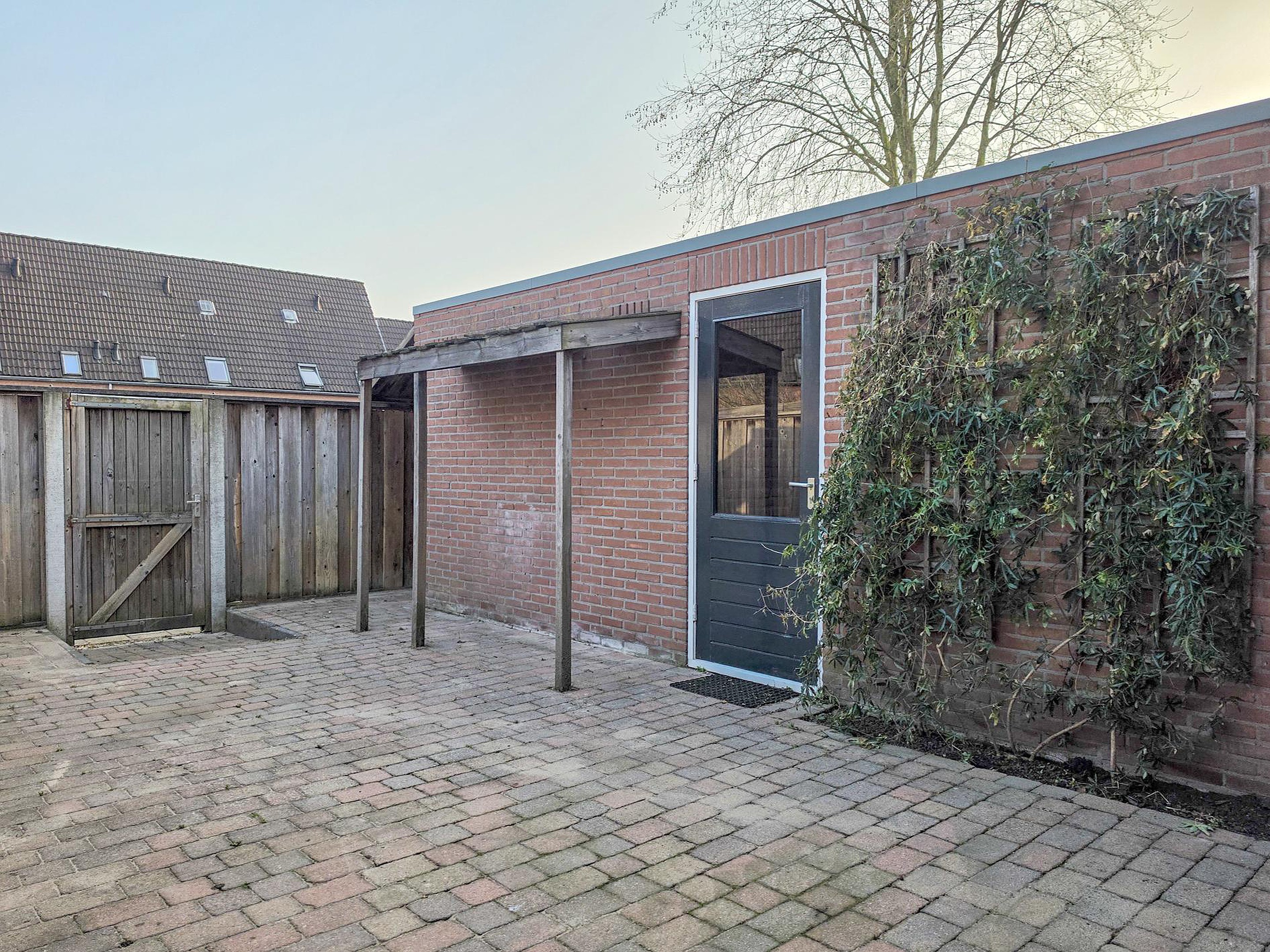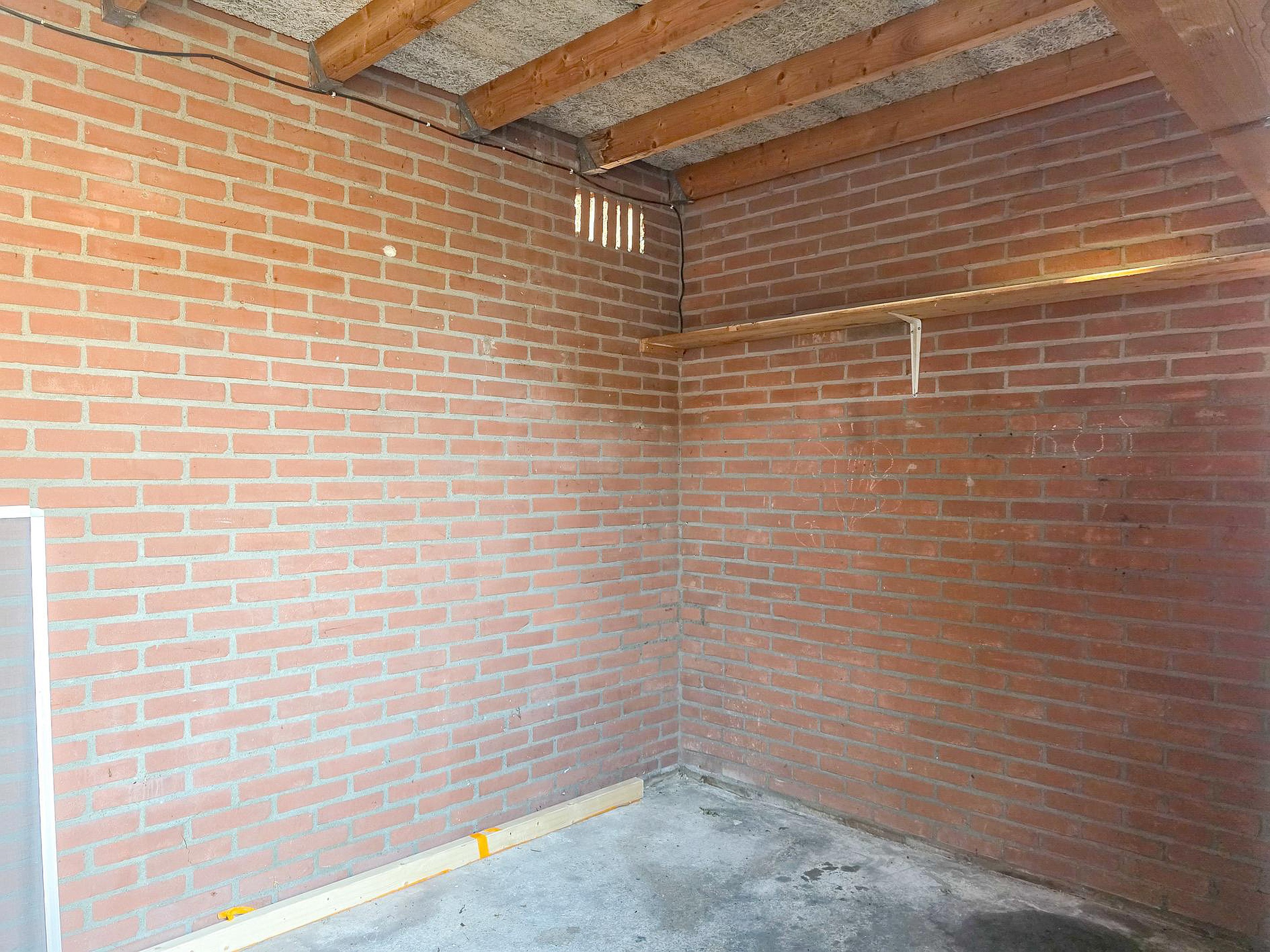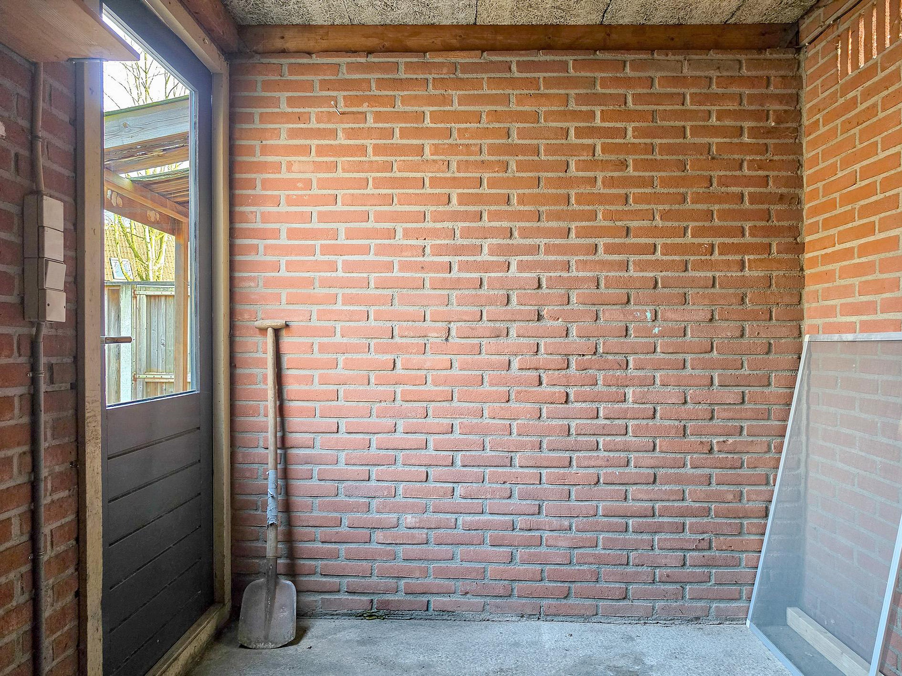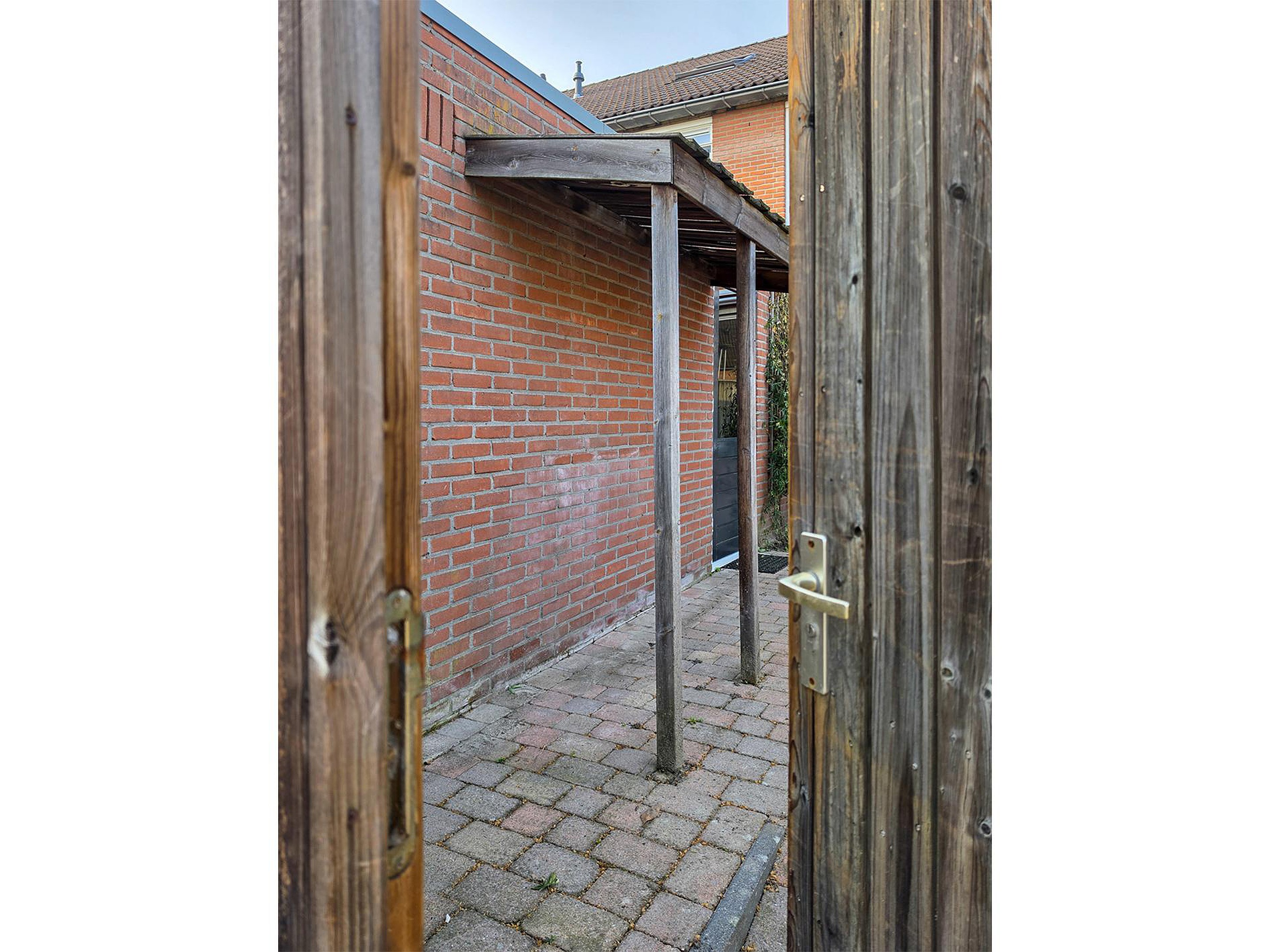 Je vindt er een berging en een afdakje voor het eventueel plaatsen van de containers.