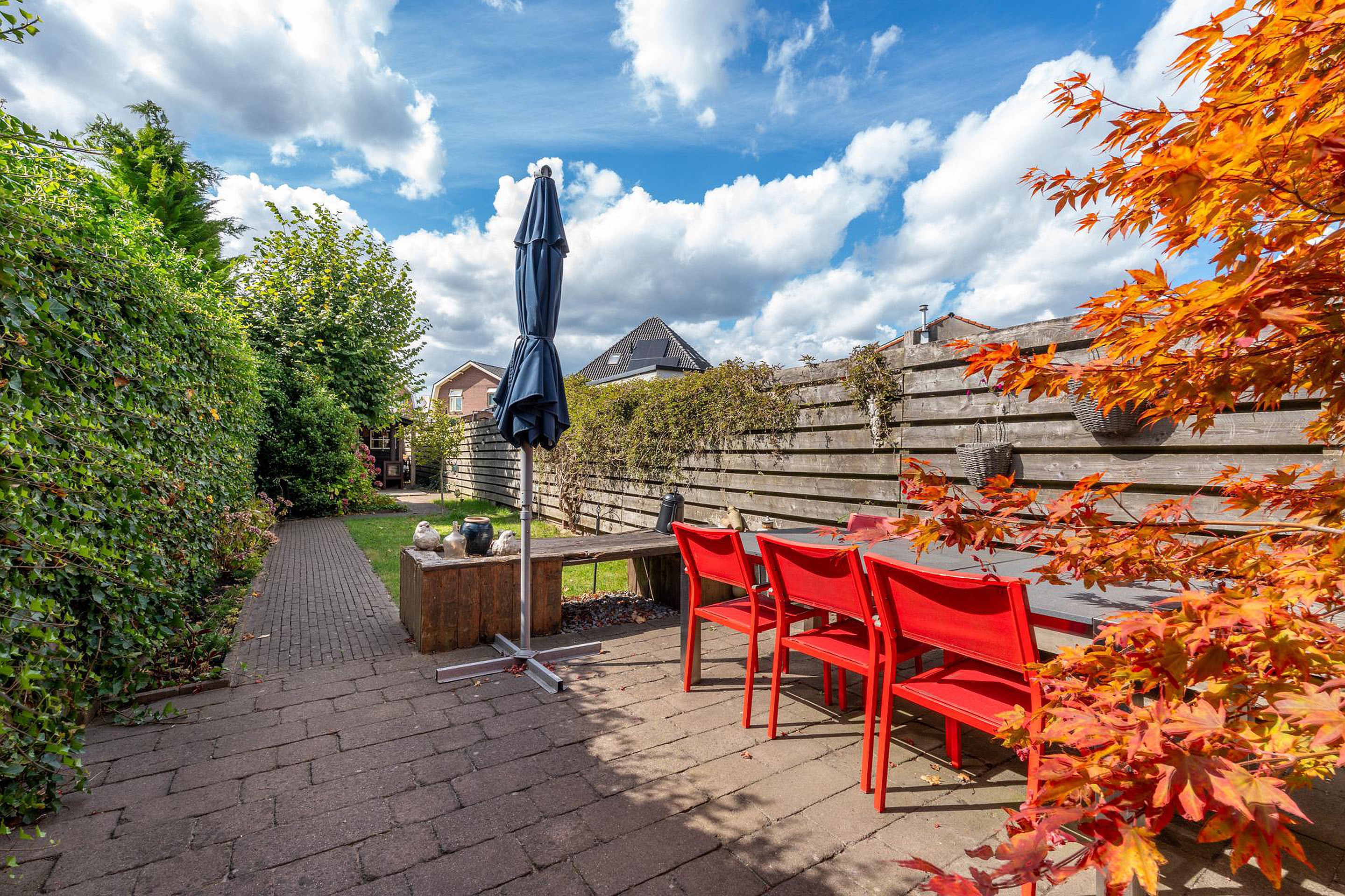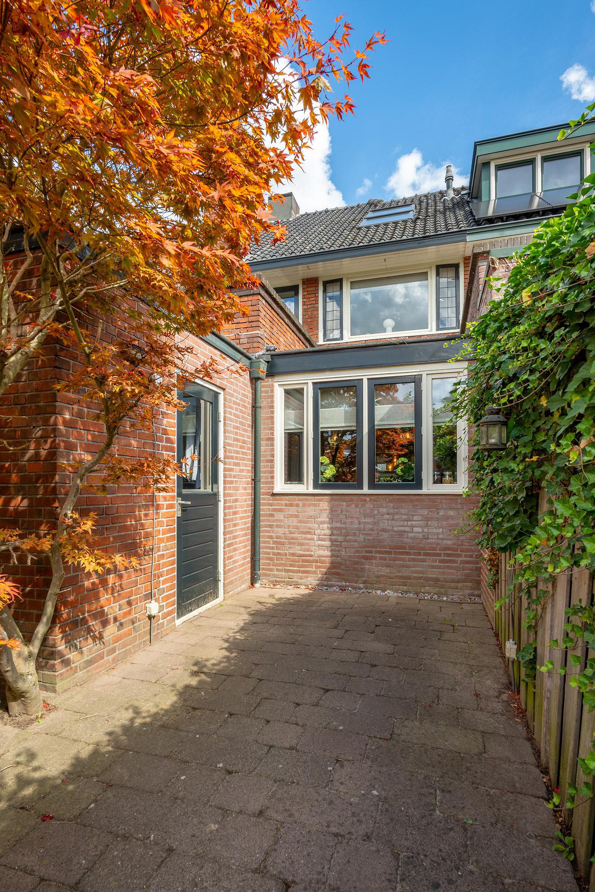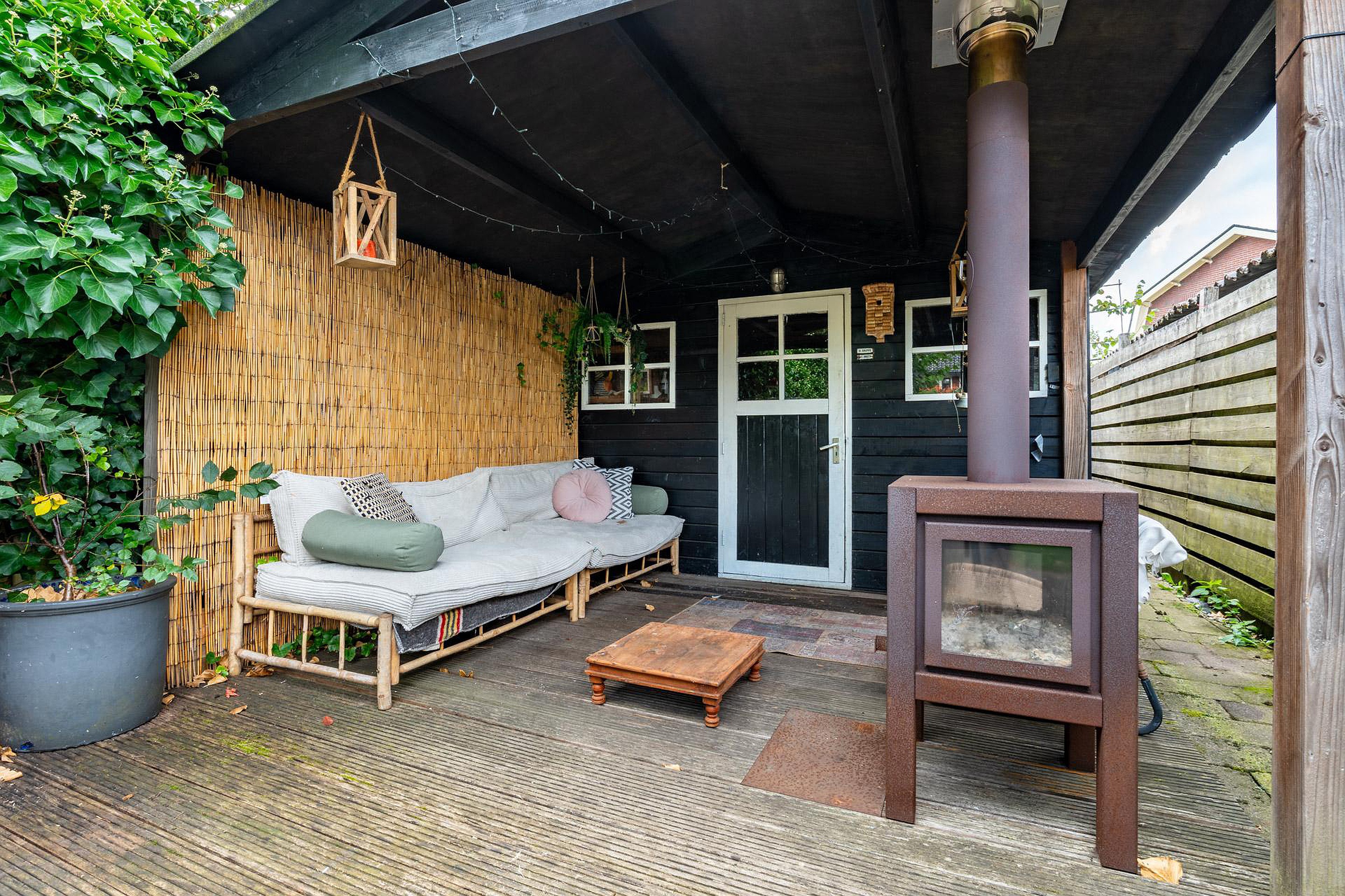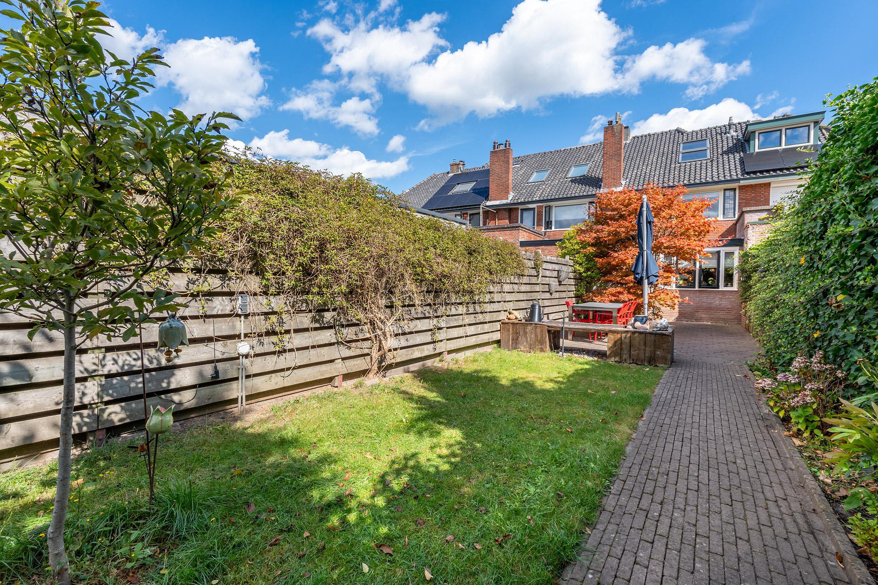 De achtertuin is een fraai aangelegd, royaal van formaat, zonnig en gunstig gelegen op het zuiden. De tuin beschikt over een terras, een vrijstaande houten berging met overkapping en elektra en is tevens bereikbaar via een achterom. Hier geniet u van rust en privacy, terwijl u toch dicht bij de stad woont. Ook de voortuin is verzorgd aangelegd en draagt bij aan de charmante uitstraling van de woning.