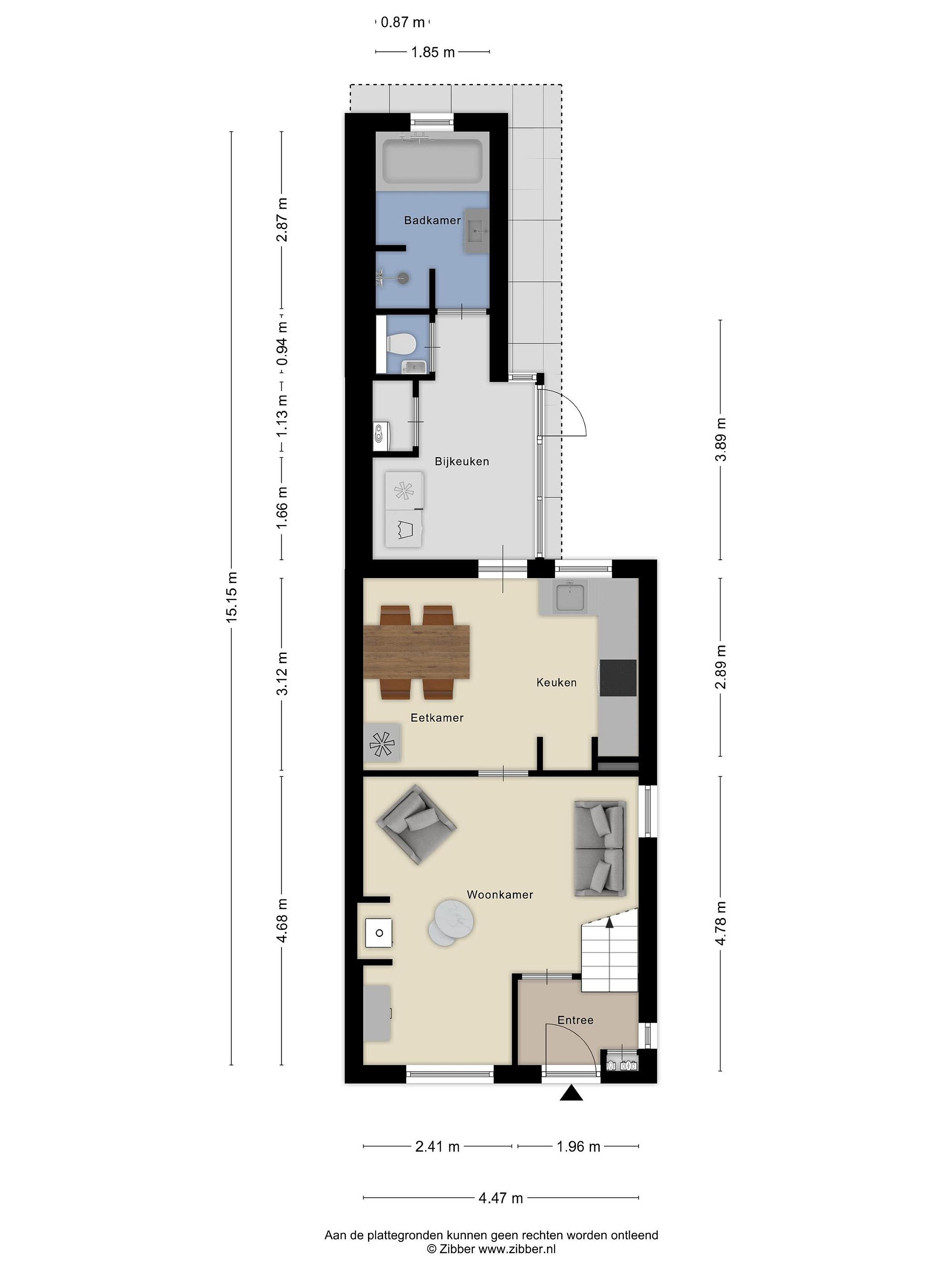 Bijkeuken met wasmachine- en drogeraansluiting;
