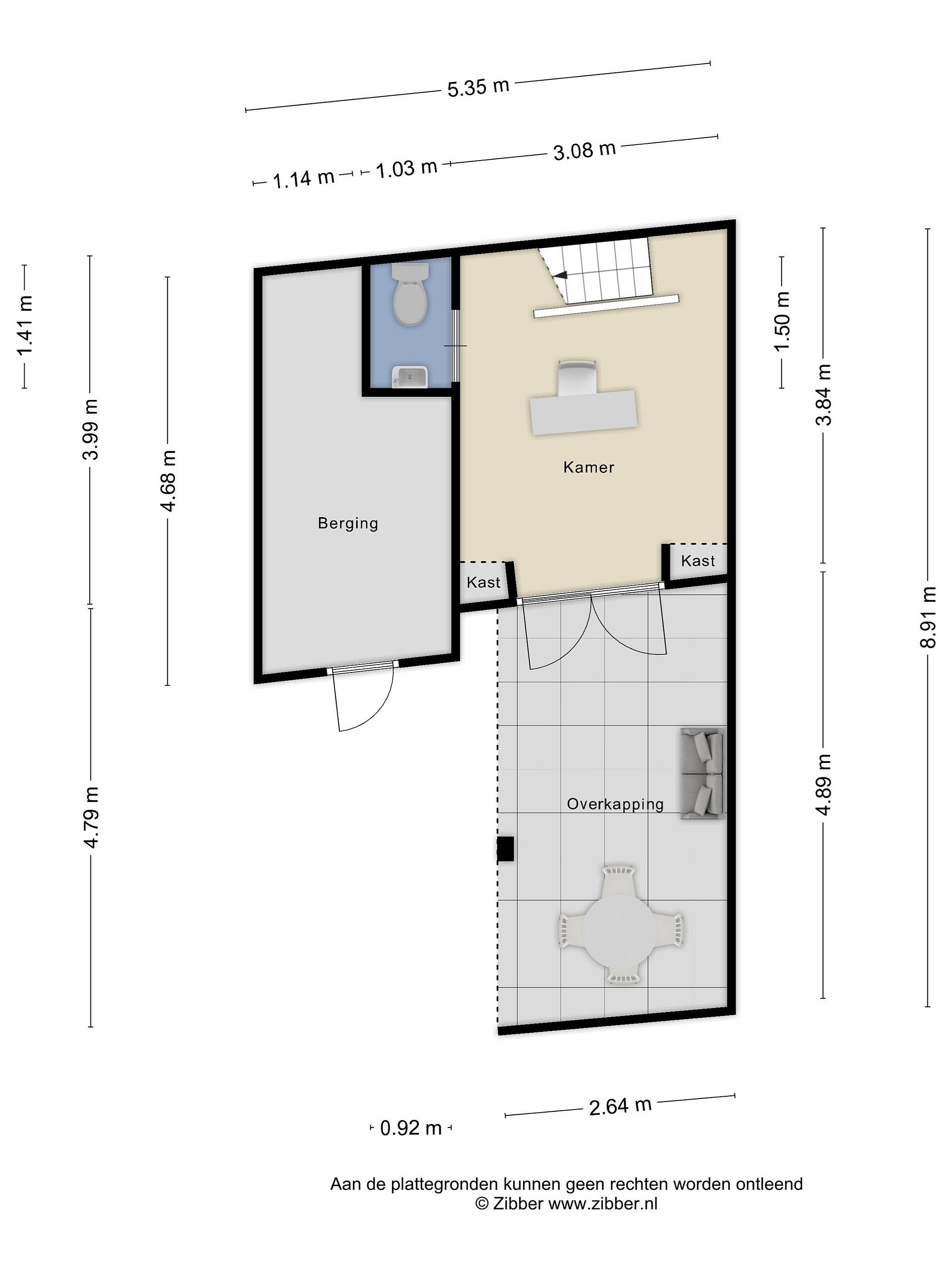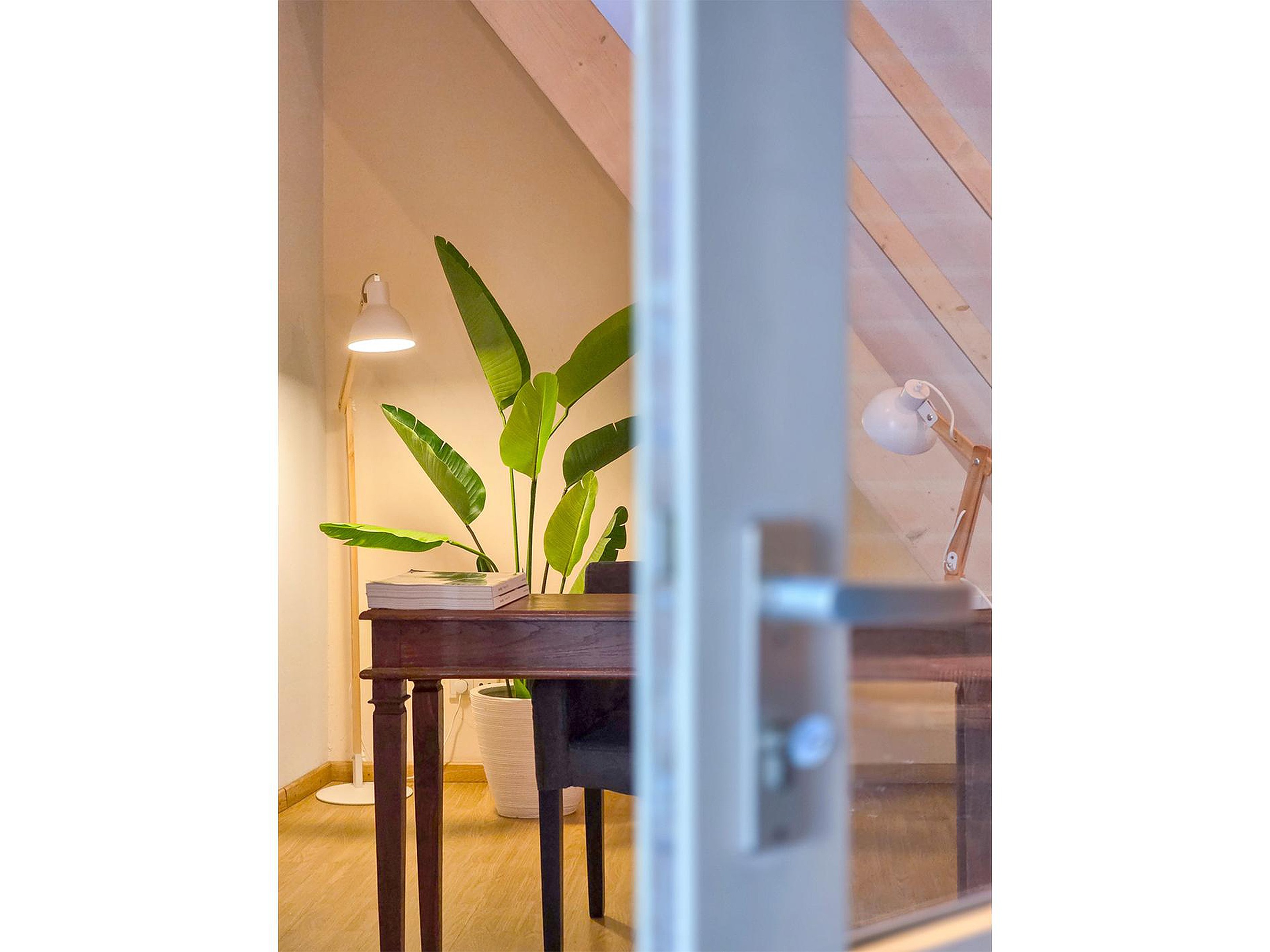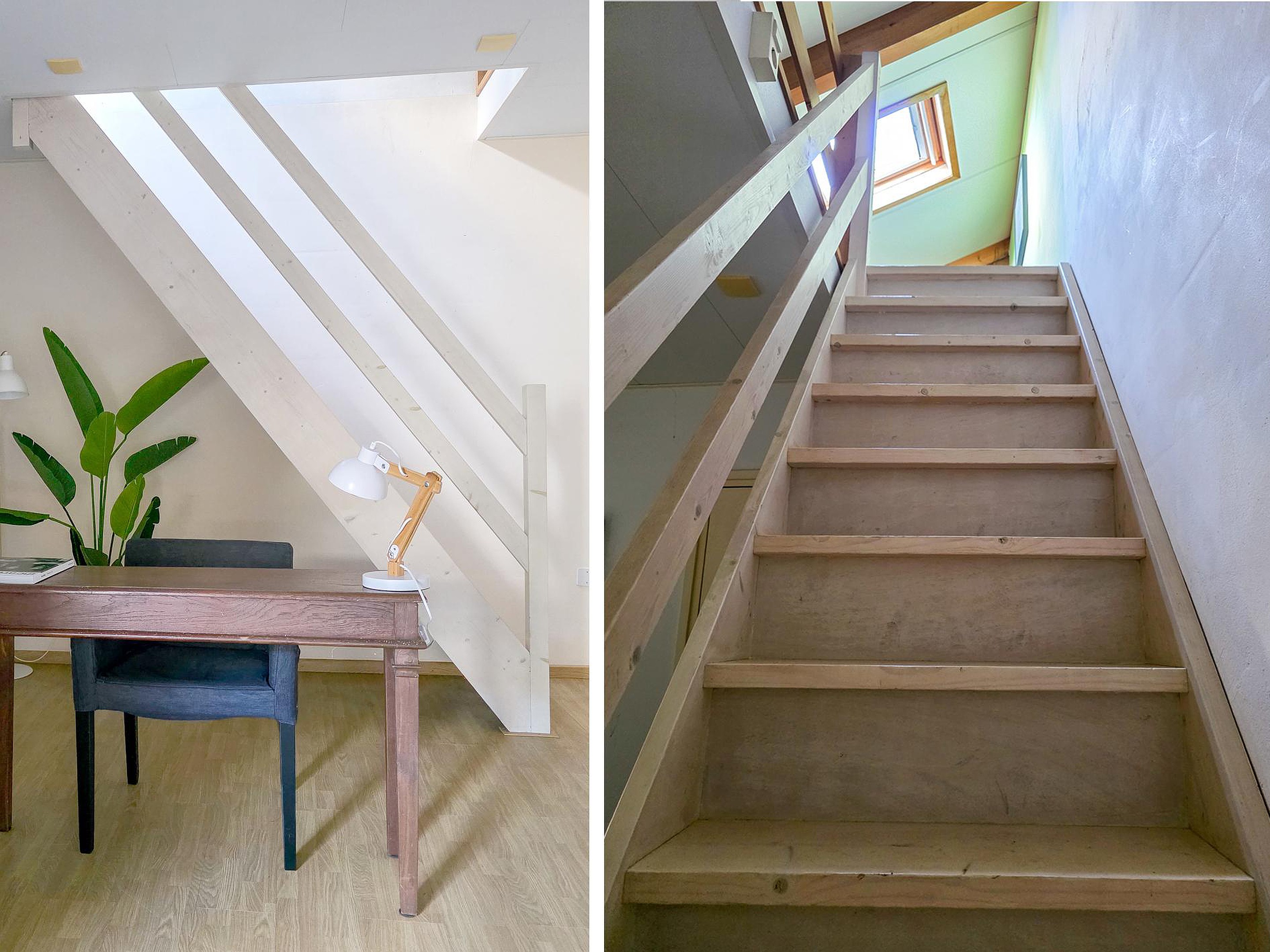 Werk/verblijfsruimte met eigen toilet en vaste trap naar vliering;