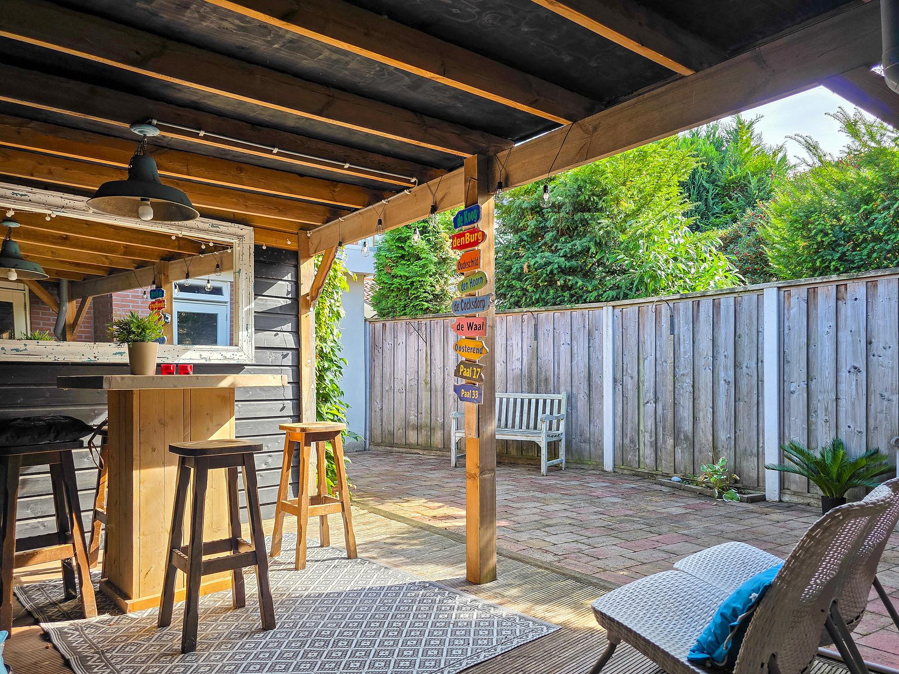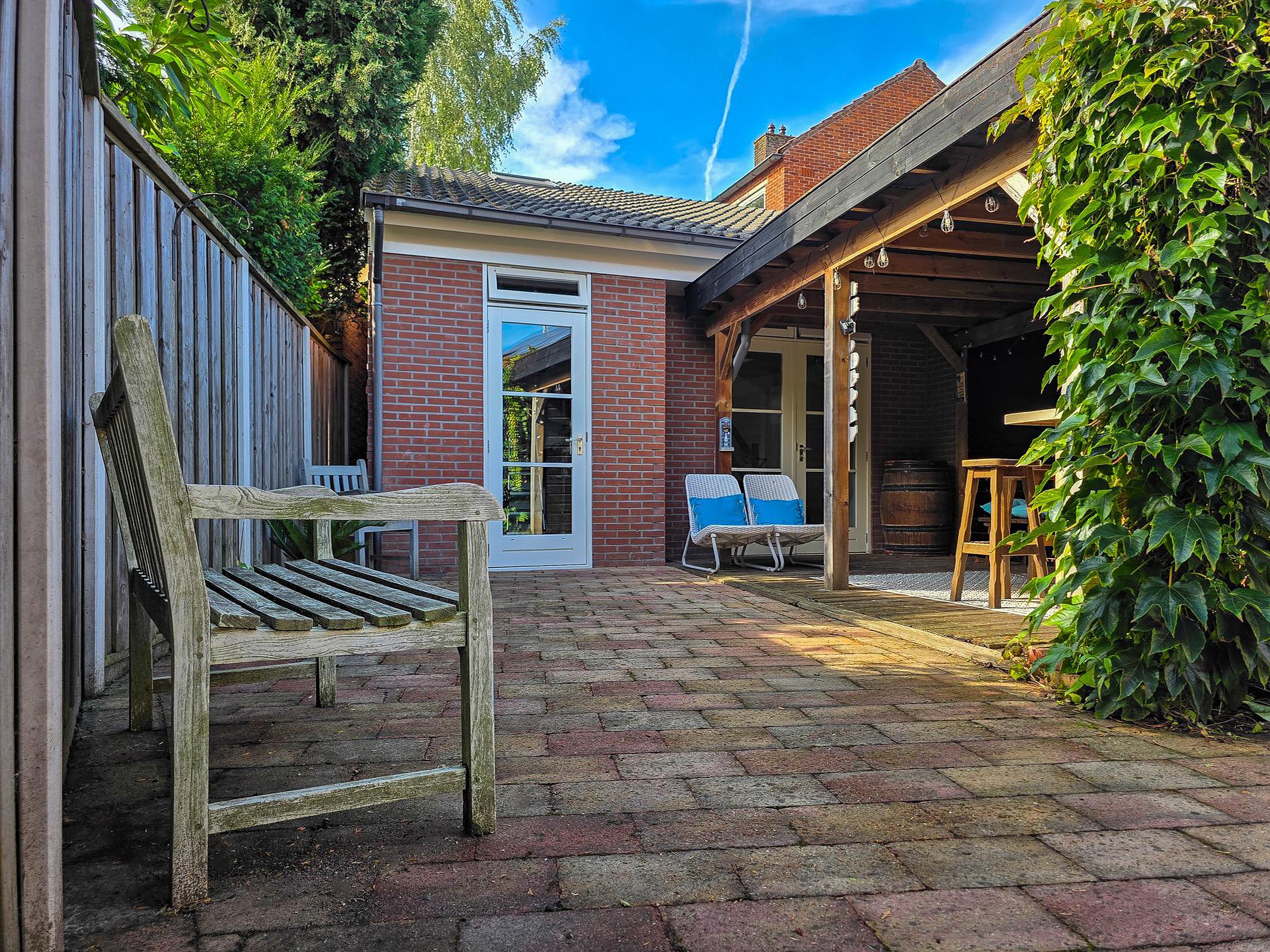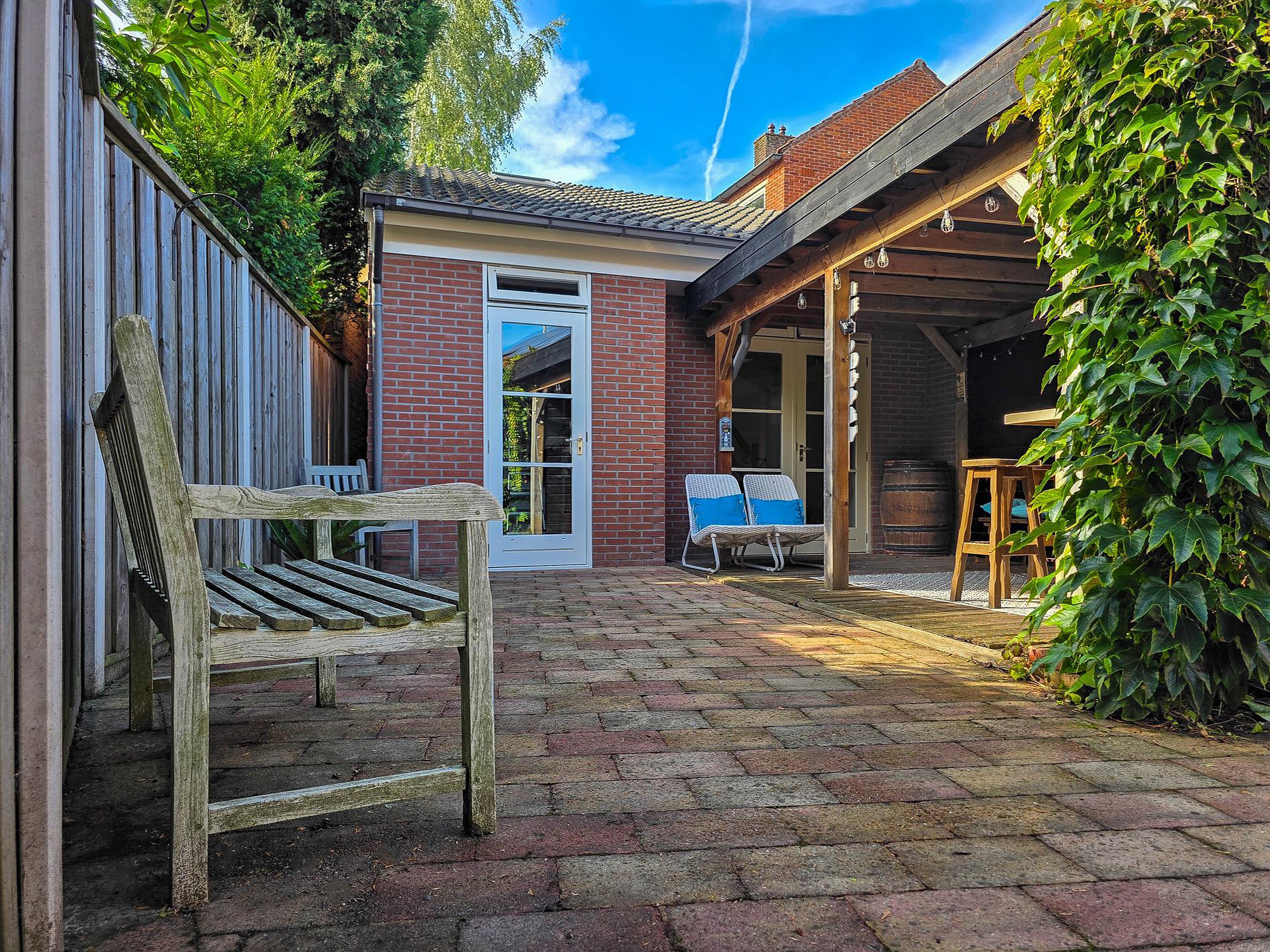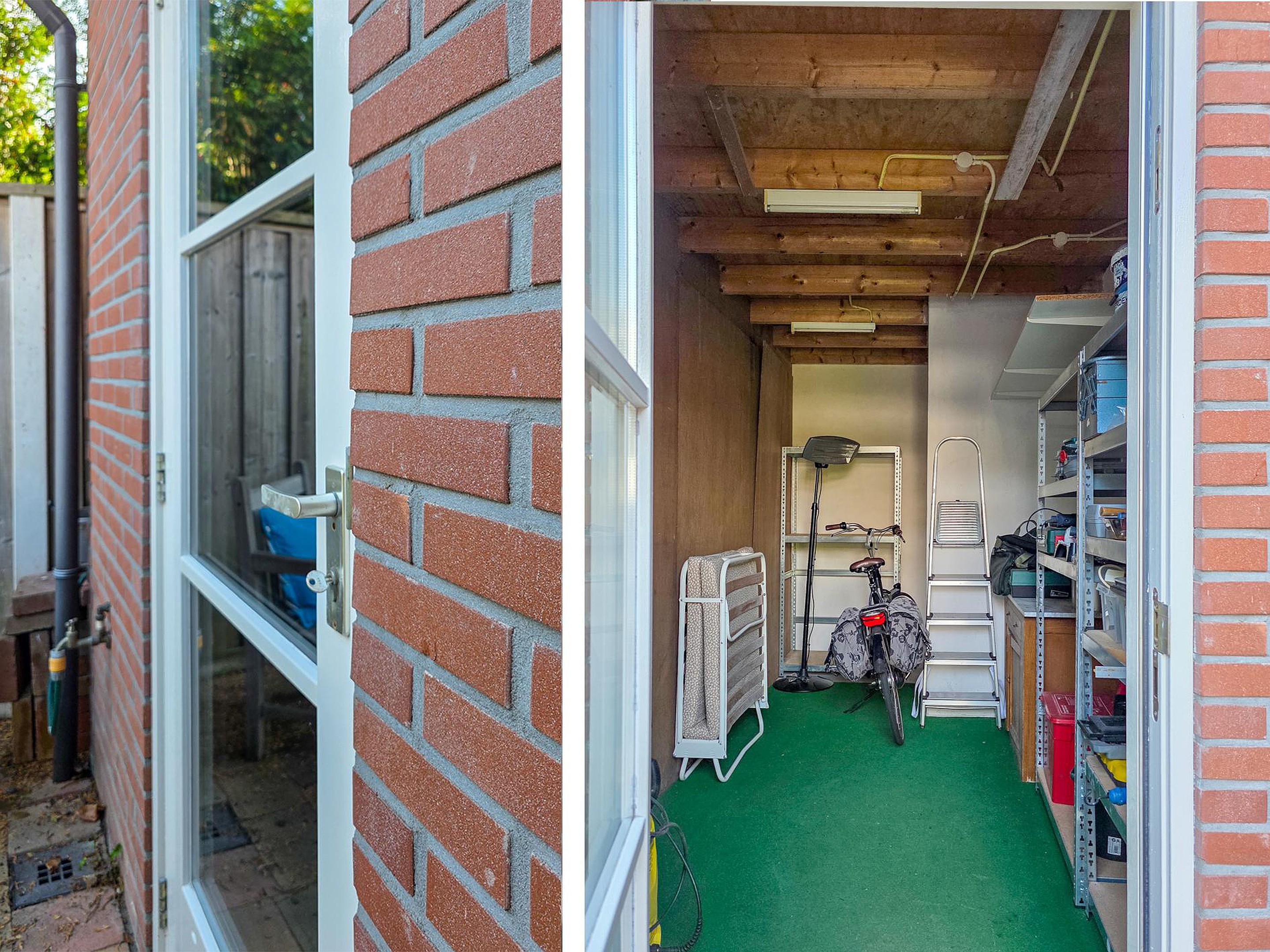 Deze extra ruimte achter in de tuin is écht een dikke plus. Met openslaande deuren naar de overkapping maak je op een regenachtige dag gewoon je eigen buitenzitje. De ruimte heeft een toiletruimte met wandcloset en fonteintje en een vaste trap naar de praktische vliering. Naast deze verblijfsruimte gelegen vind je nog een stenen berging – voor fietsen, gereedschap of gewoon al die spullen die je liever uit het zicht hebt.