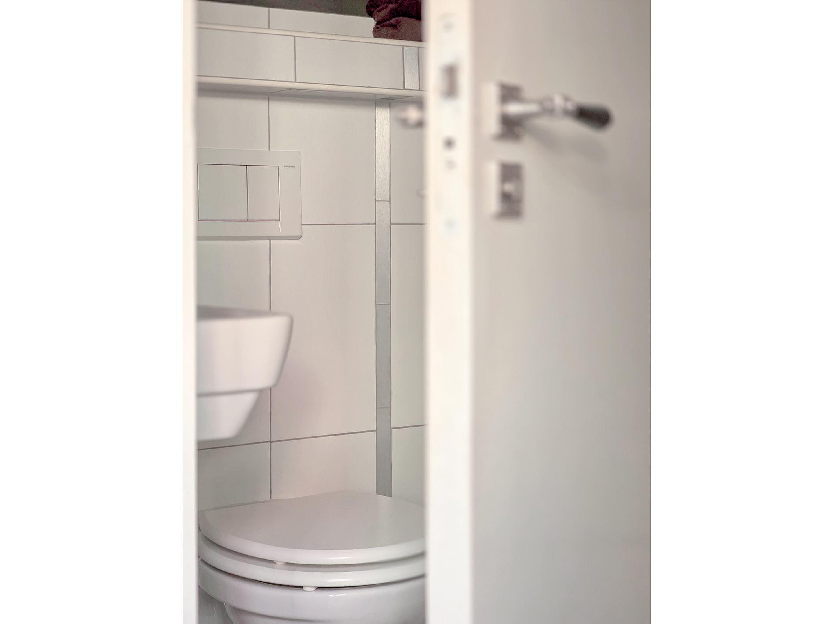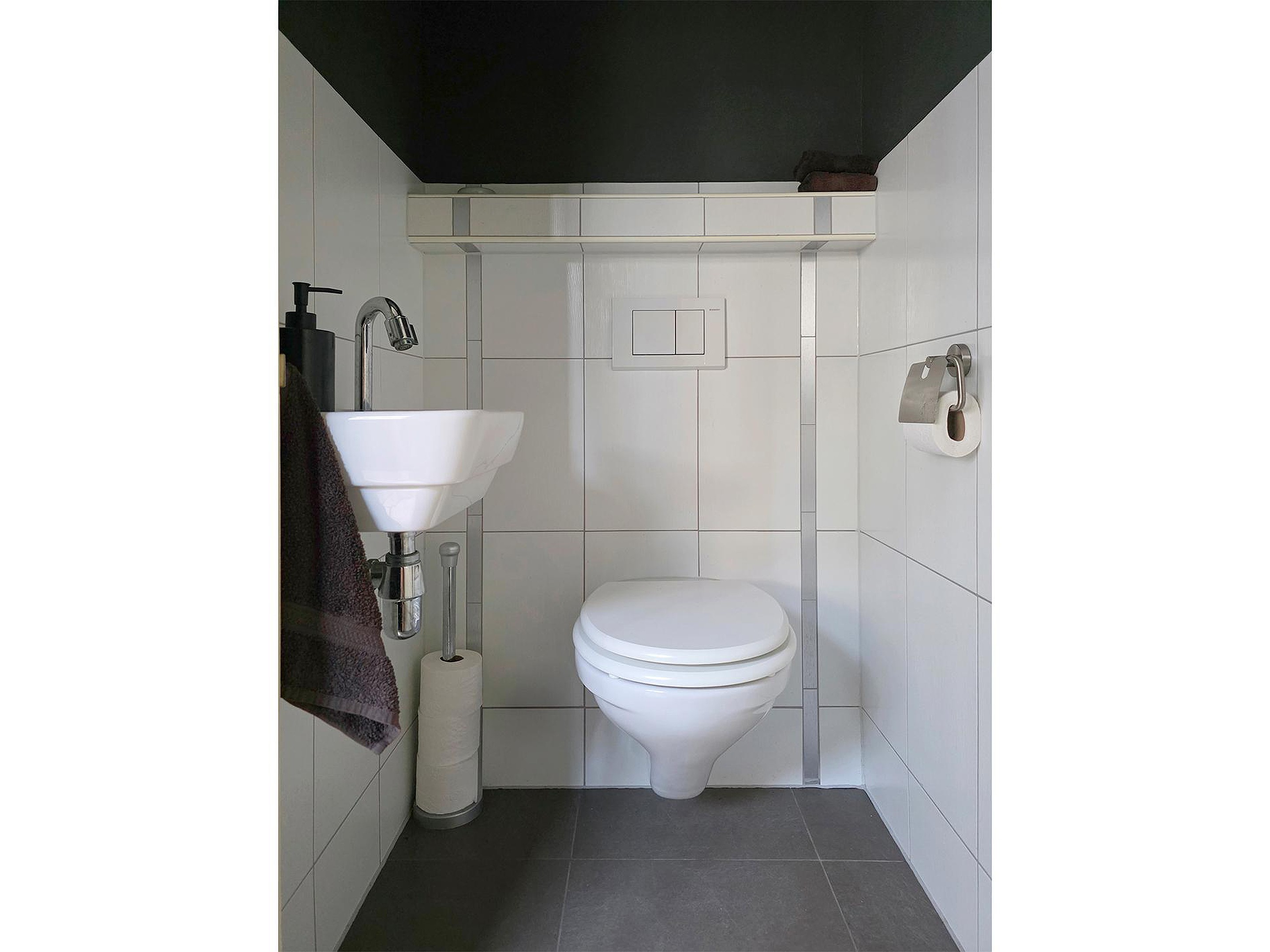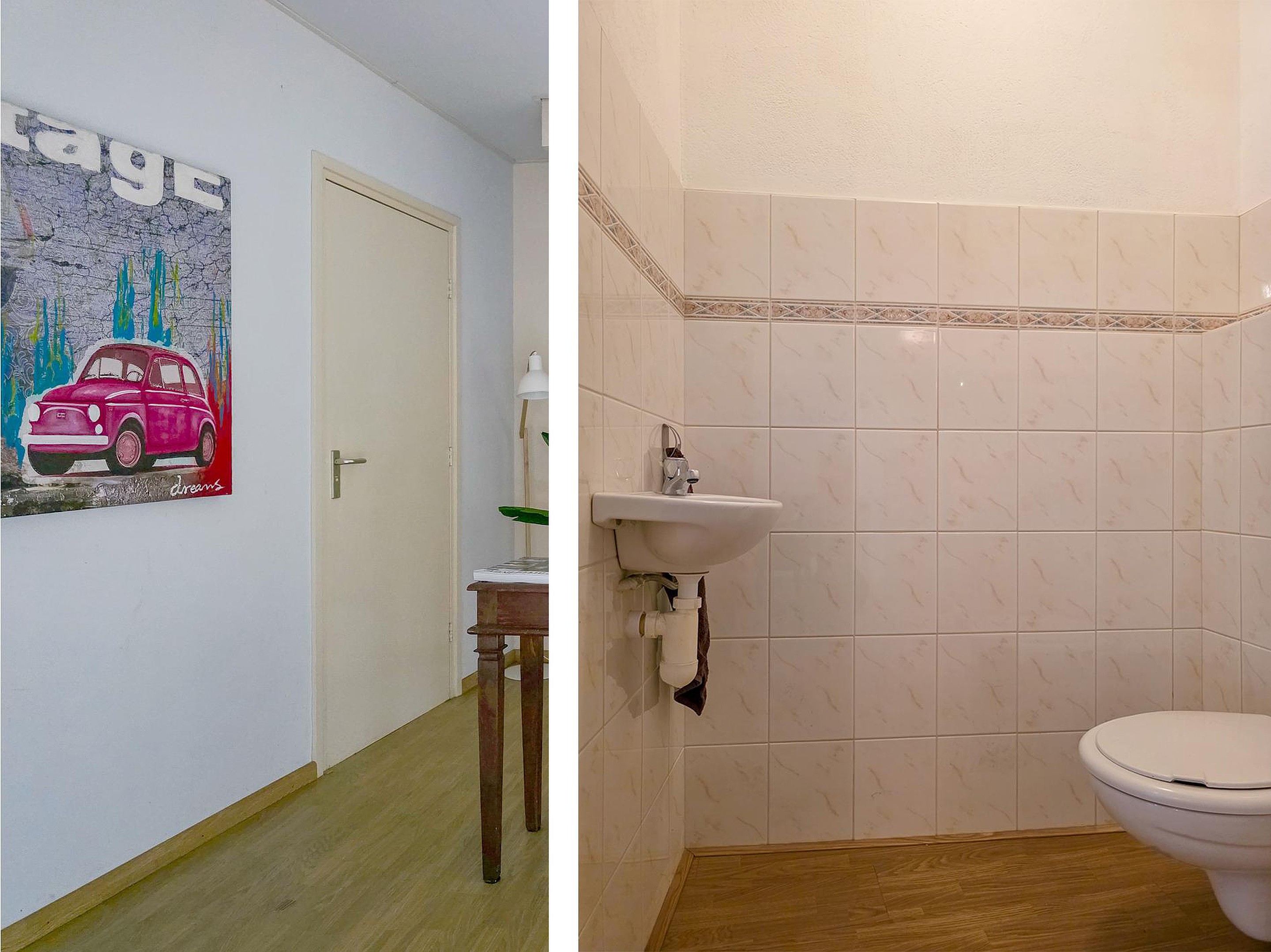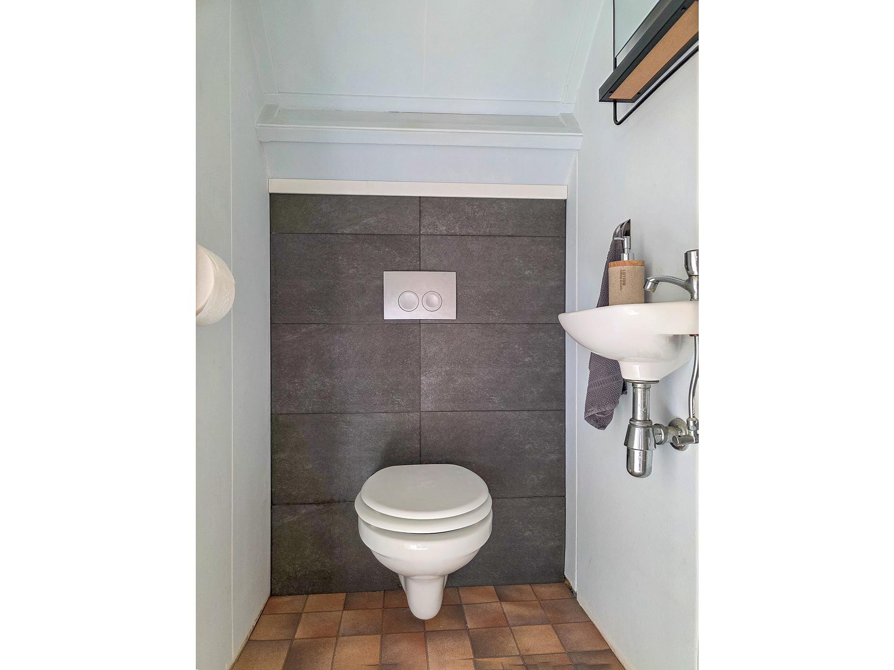 Op de overloop is de 2e toiletruimte met wandcloset en fonteintje.