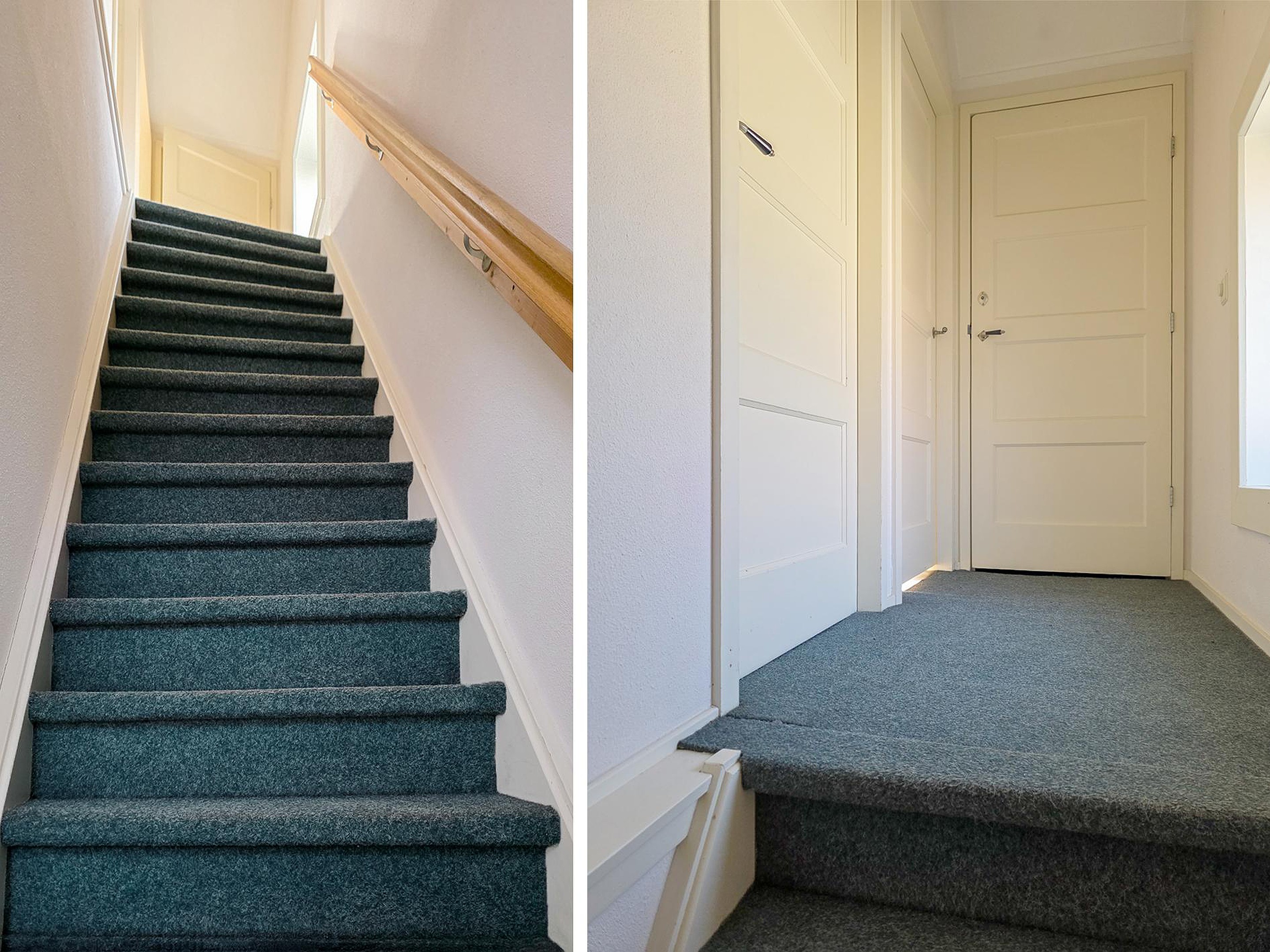 Eerste verdieping Via vaste trap te bereiken eerste verdieping met overloop waaraan 2 slaapkamers en de toiletruimte met wandcloset en fonteintje.