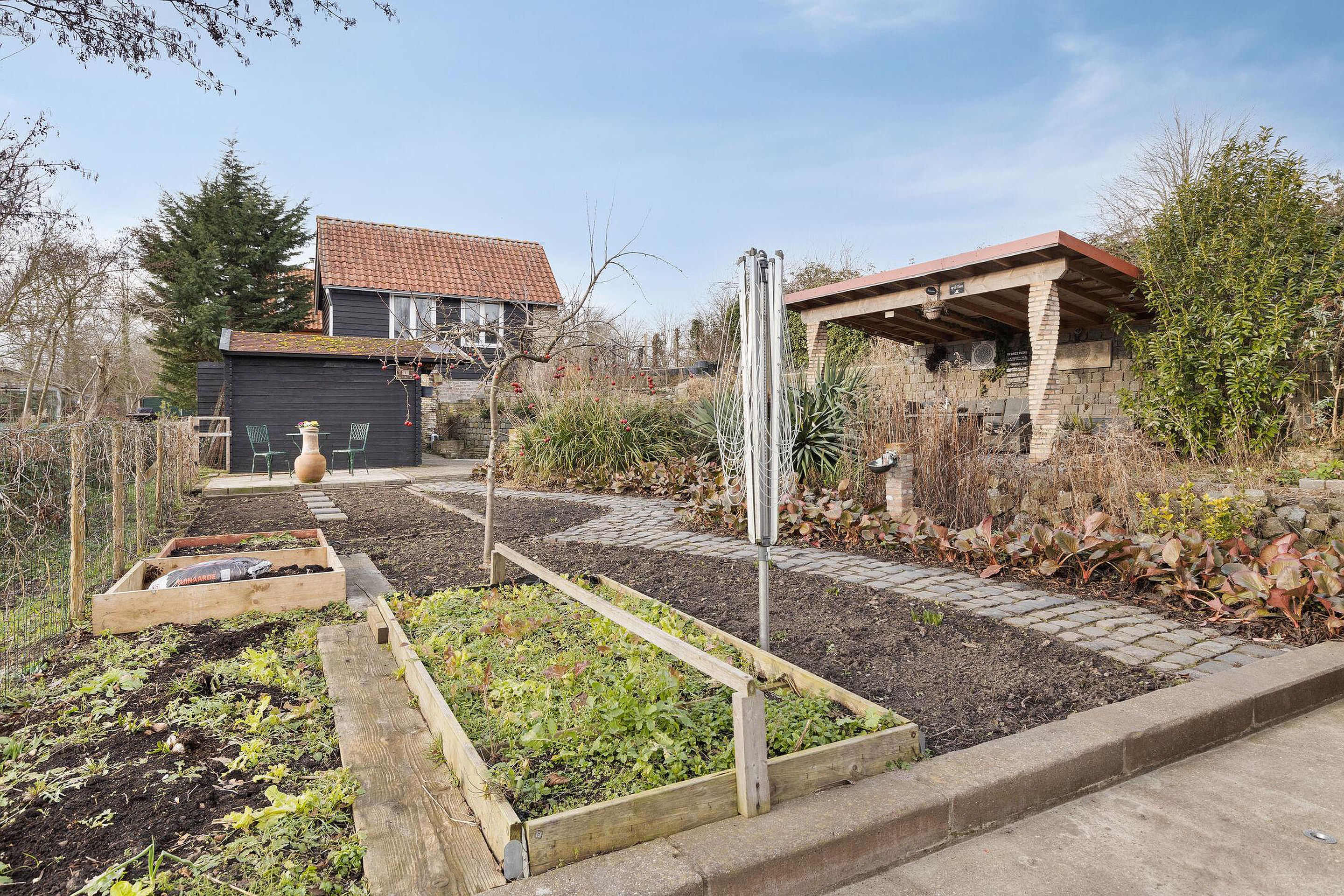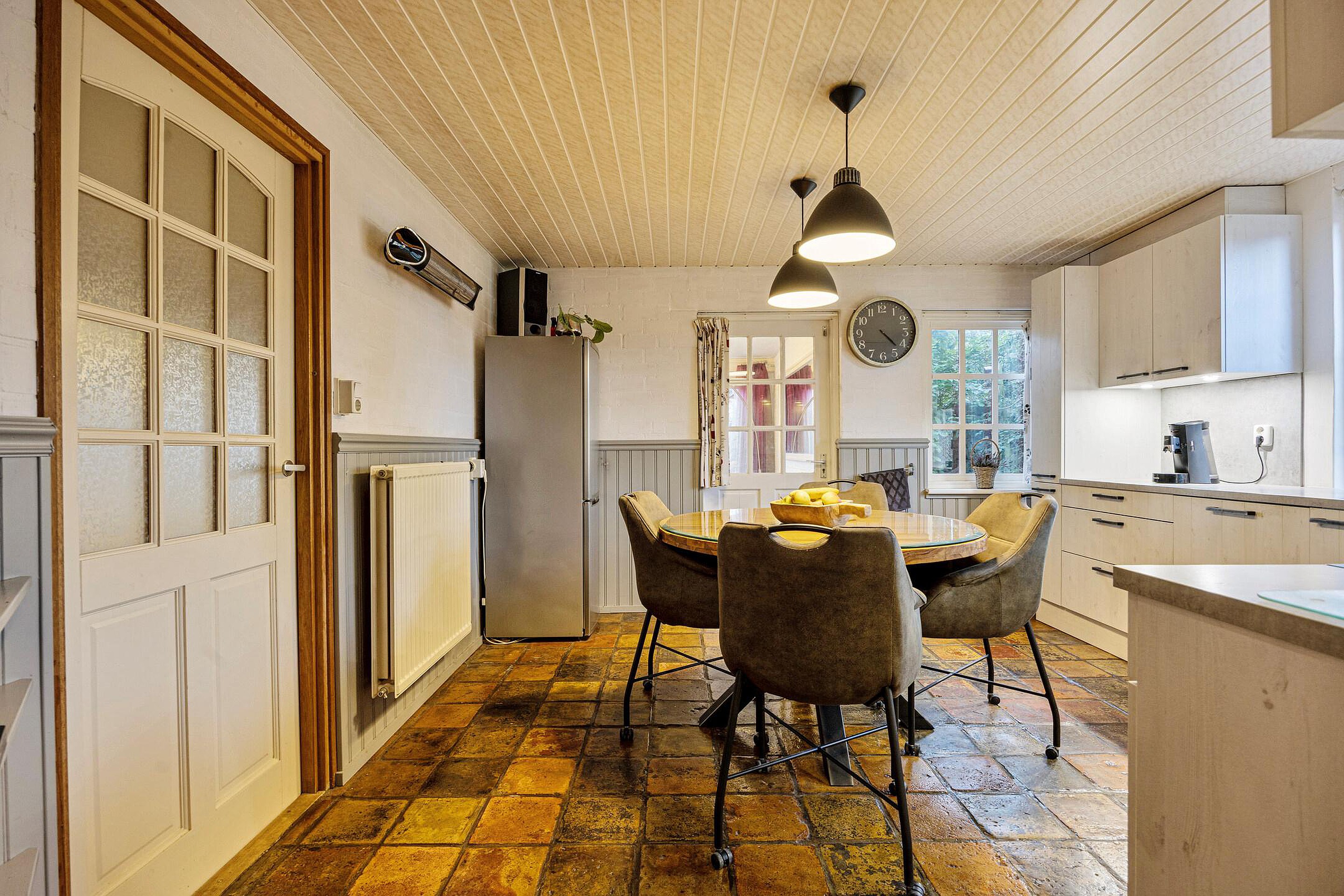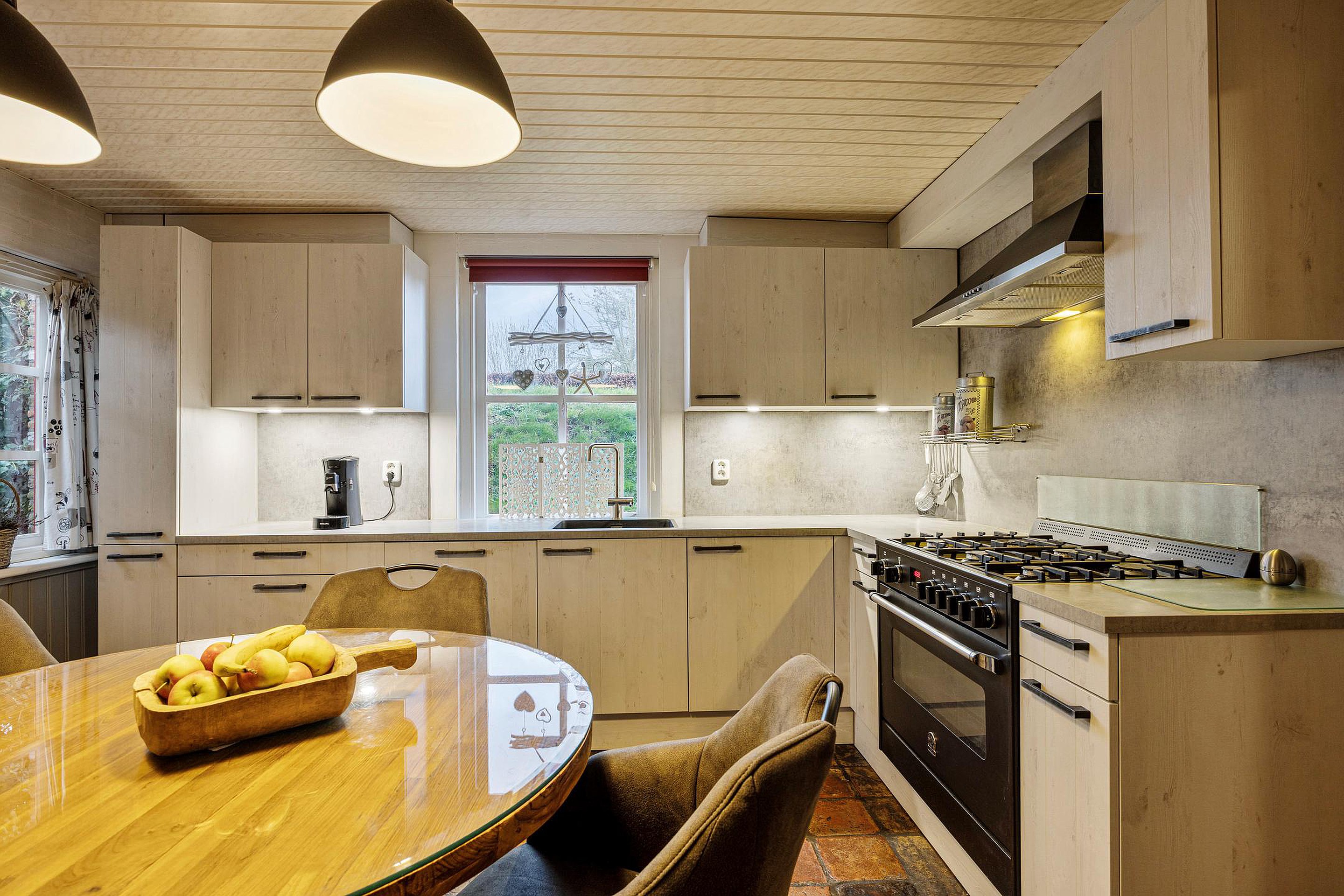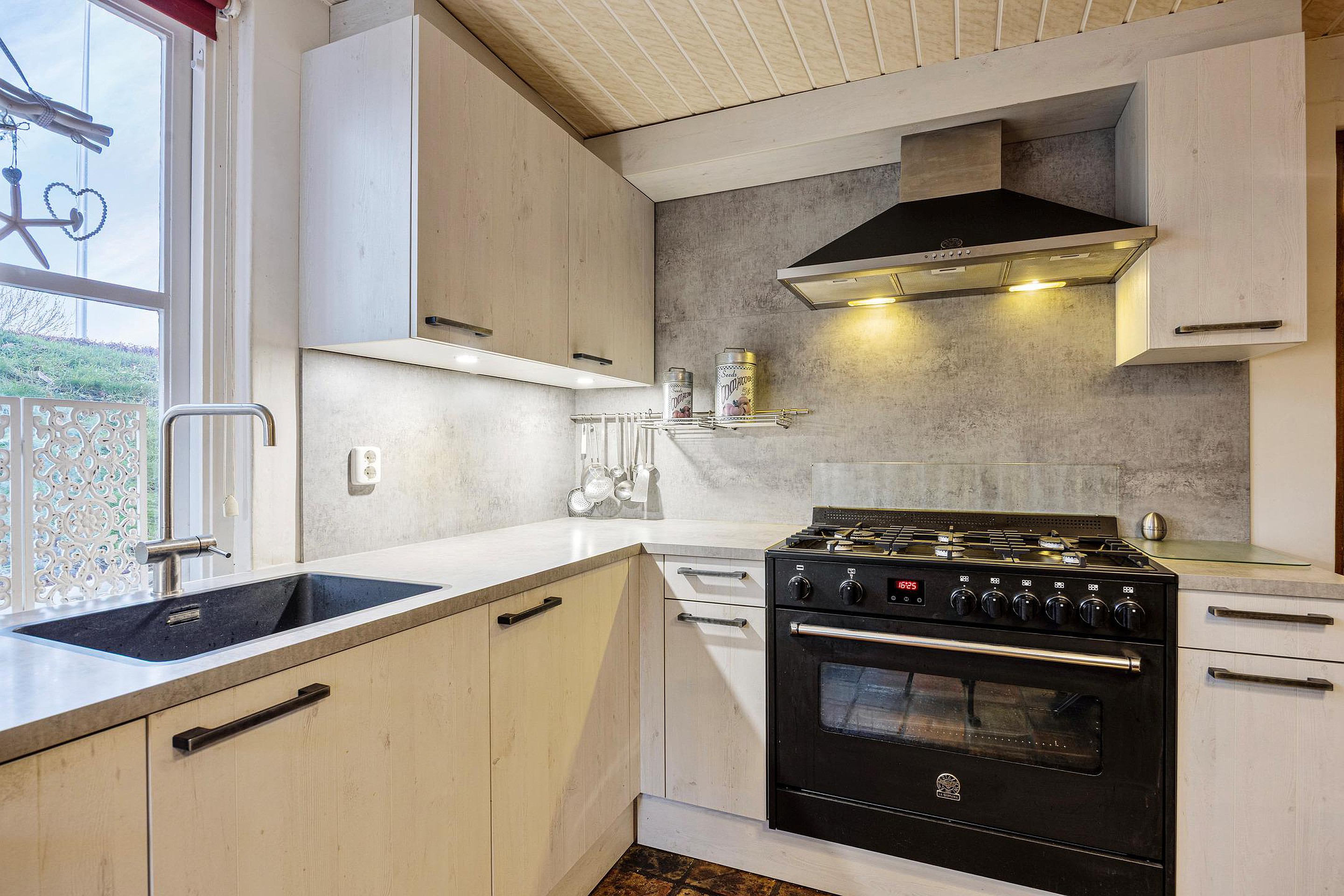 De keuken is praktisch ingericht en staat in verbinding met de bijkeuken. Aansluitend bevindt zich de tuinkamer, een fijne en bijzondere leefruimte waar binnen en buiten naadloos in elkaar overlopen.