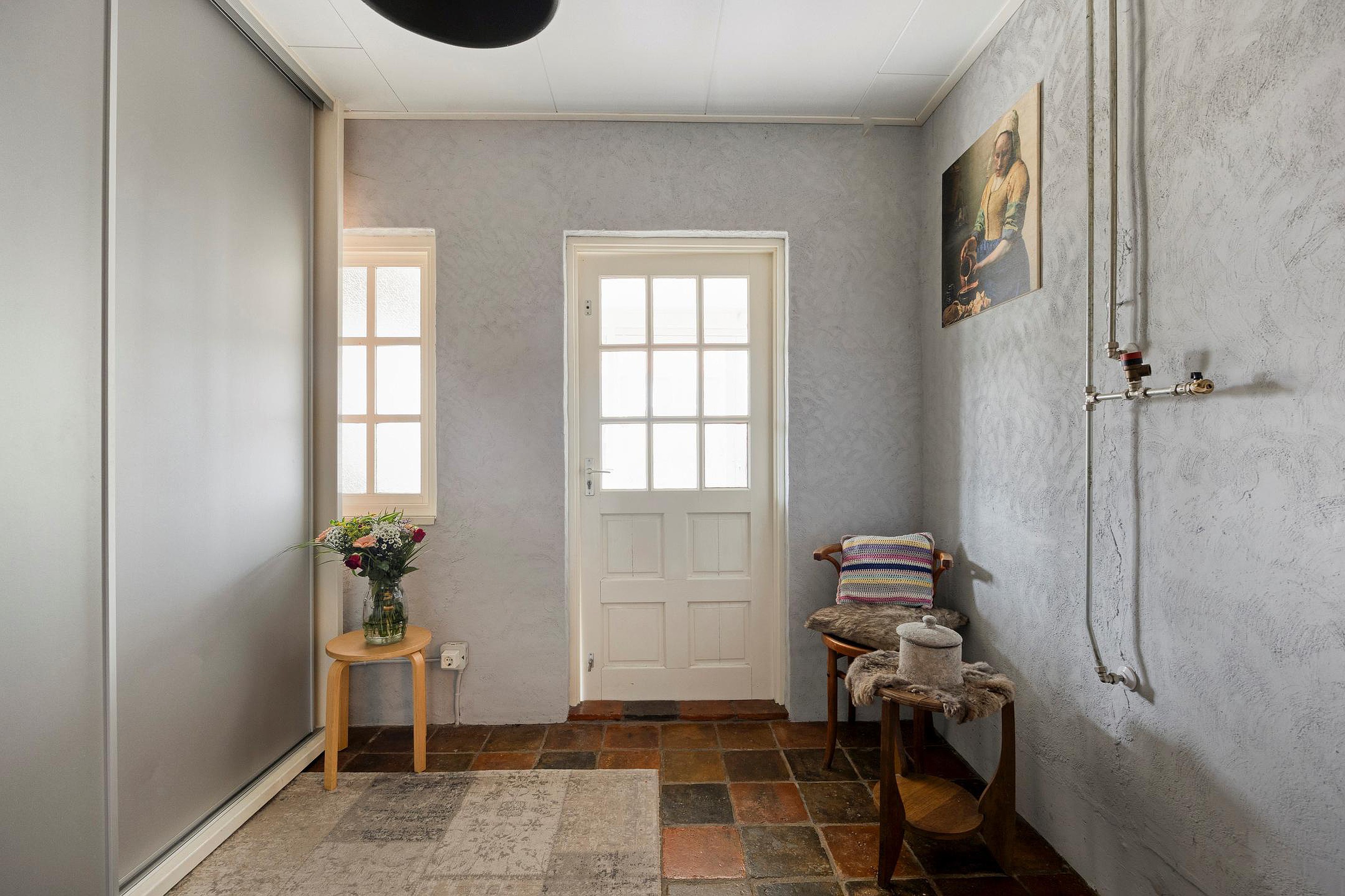 Begane grond Je betreedt de woning via de entree met trapopgang. De begane grond is voorzien van vloerverwarming met daarover heen authentieke boerenplavuizen. De royale woonkamer met eethoek is heerlijk licht en wordt extra sfeervol gemaakt door de houtkachel, een karaktervol element dat bijdraagt aan de warme uitstraling van de woning.