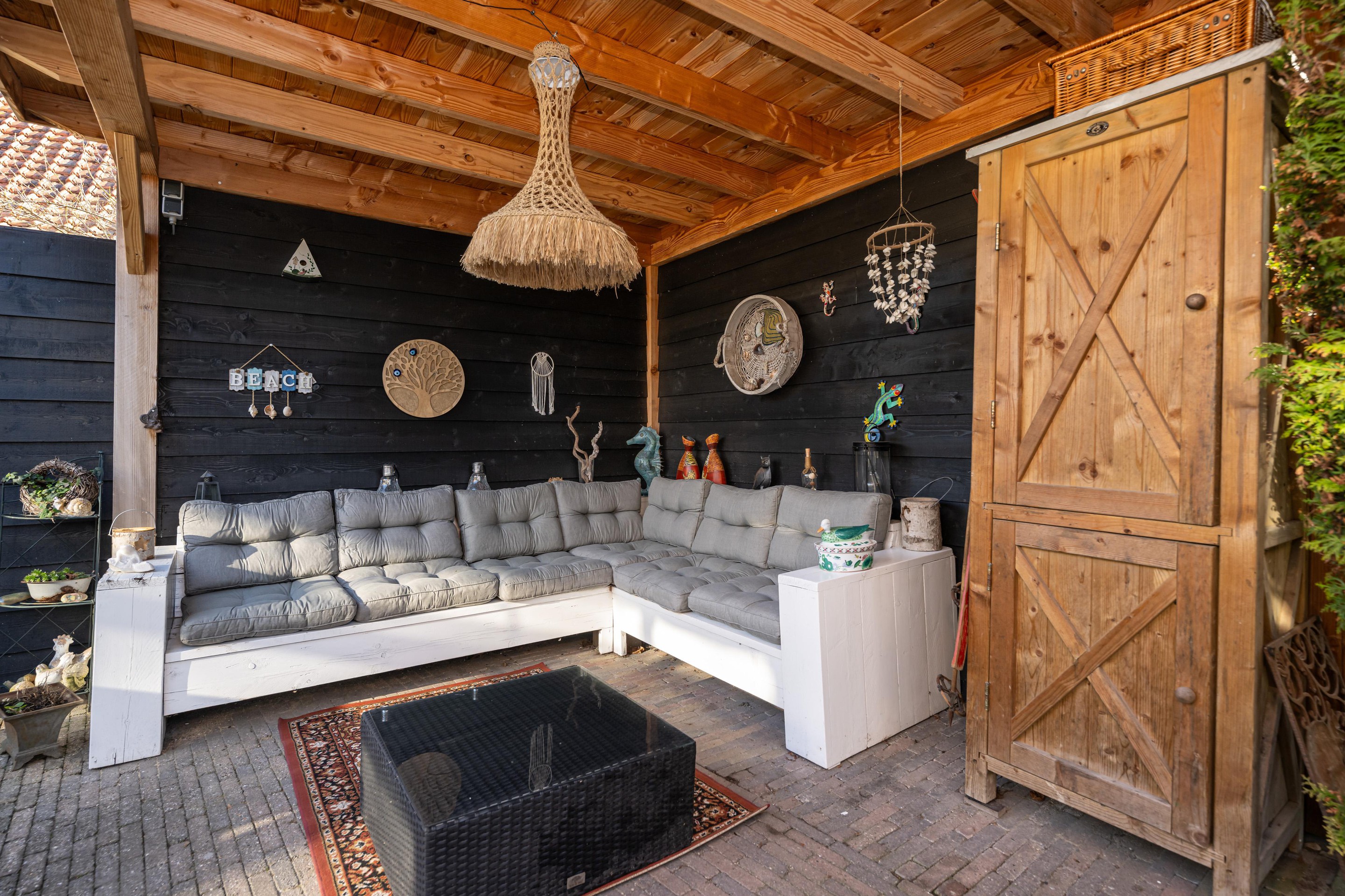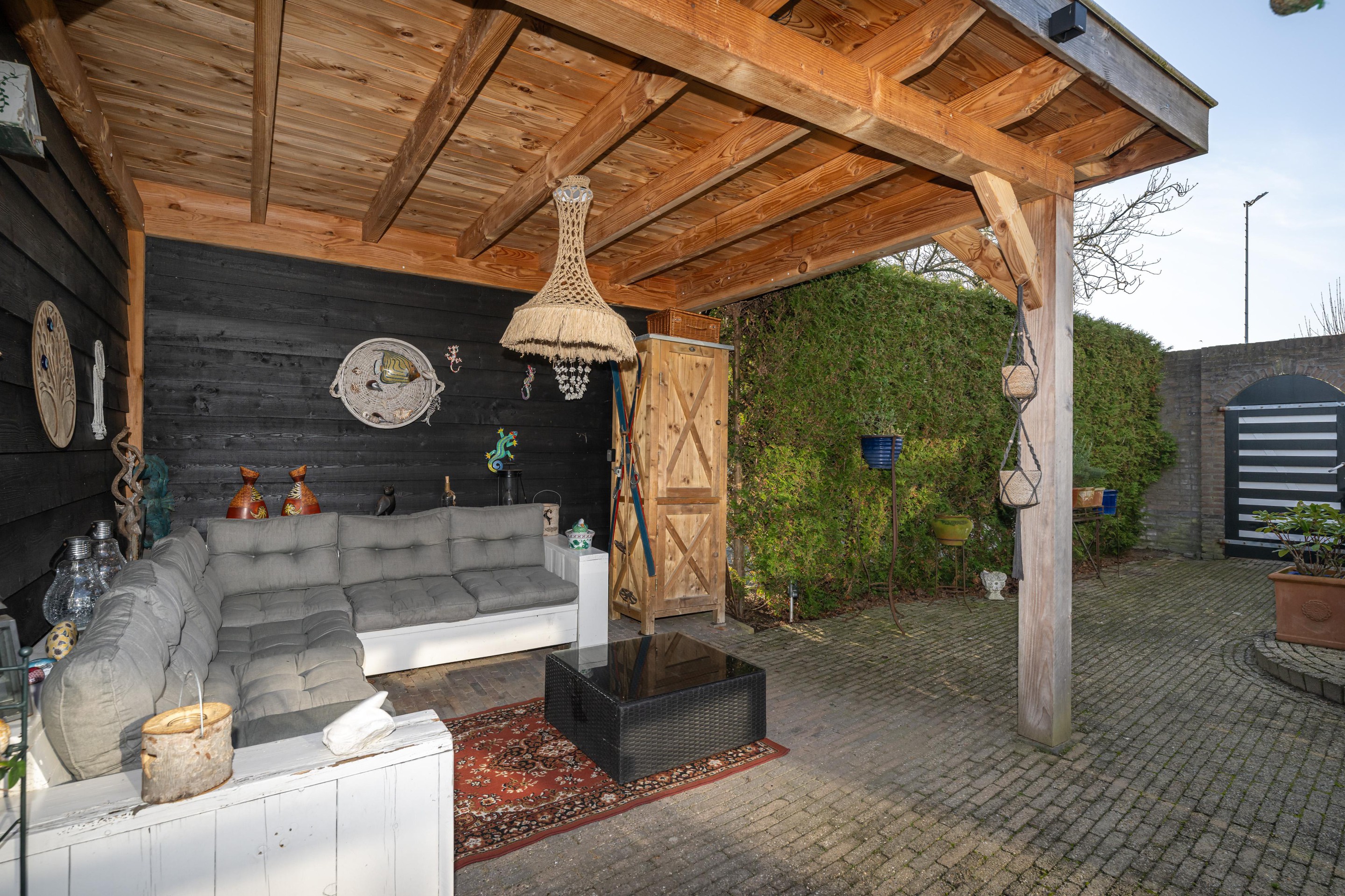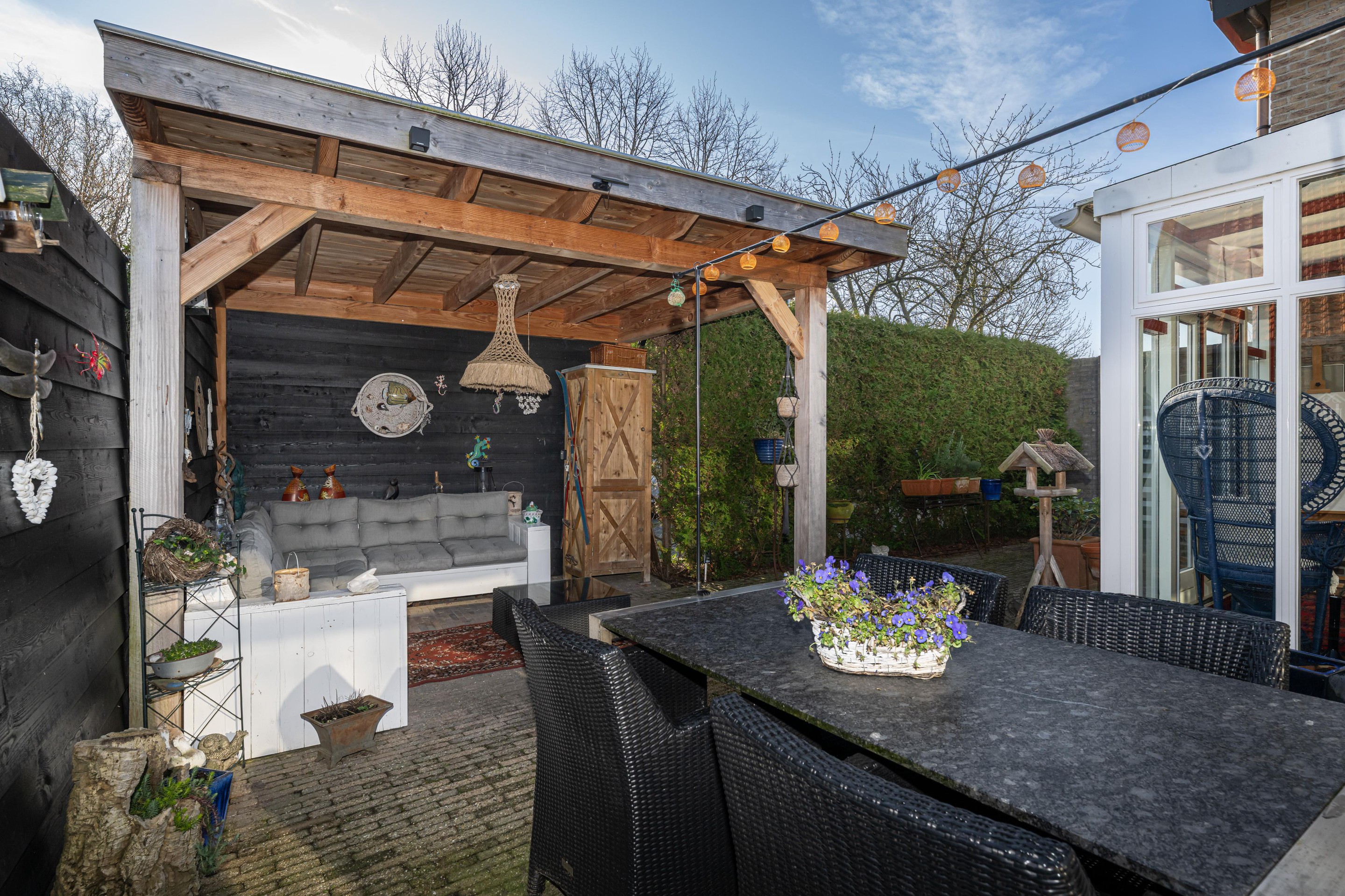 De achtertuin is een prettige plek waar u in alle rust kunt ontspannen. De aanwezige overkapping maakt het geheel extra aantrekkelijk, omdat u hier ook bij minder mooi weer heerlijk buiten kunt zitten. Of u nu graag lang tafelt op zomeravonden, een speelhoek voor de kinderen wilt creëren of simpelweg wilt genieten van een kop koffie in de buitenlucht, deze tuin biedt u daar volop mogelijkheden voor. De combinatie van de serre en de overkapping zorgt ervoor dat u het buitenleven hier optimaal kunt beleven.