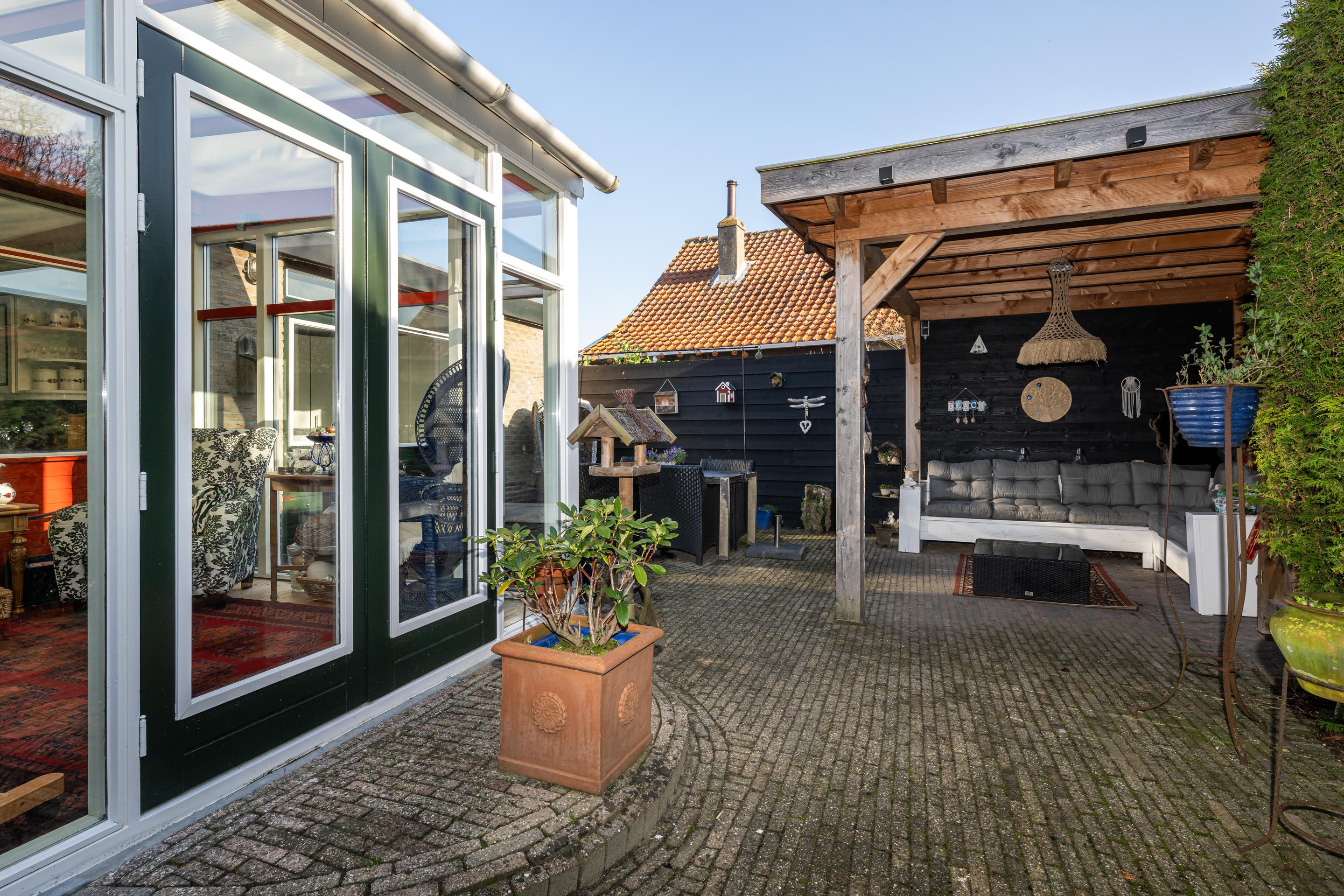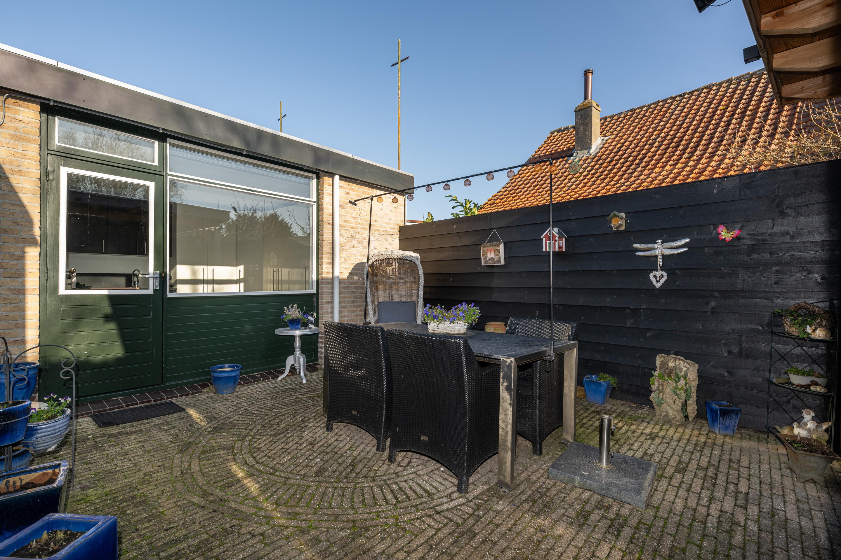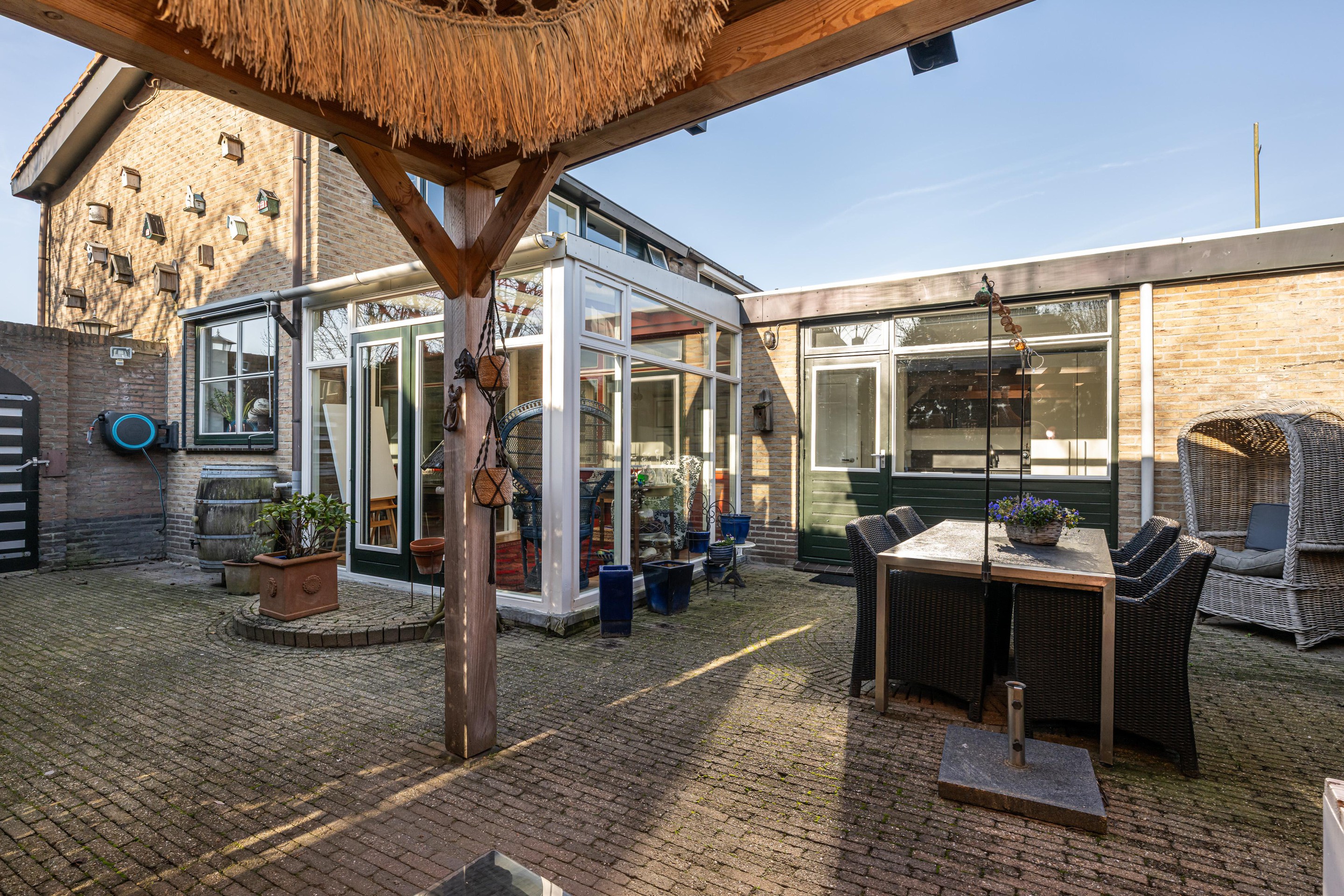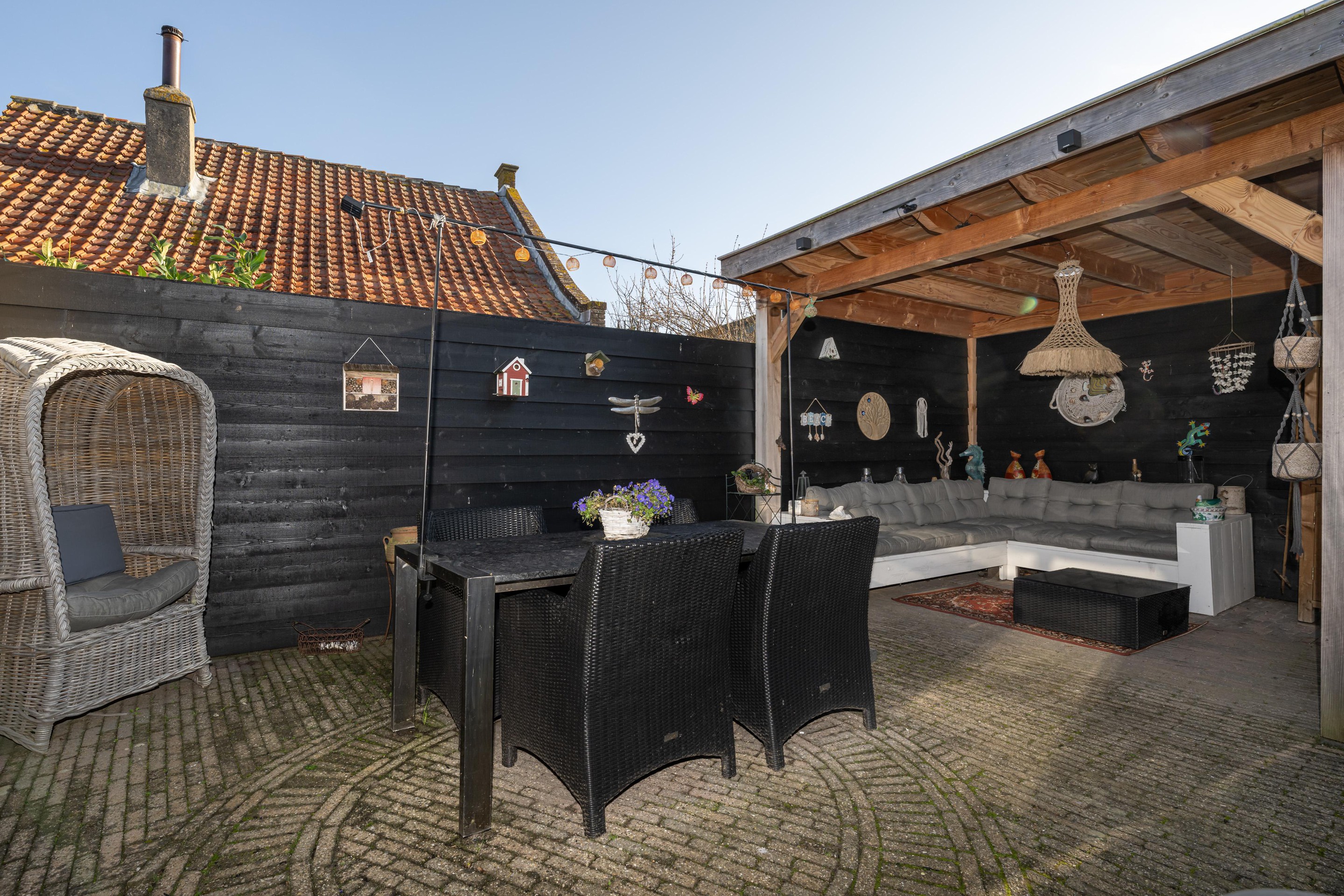 De achtertuin is een prettige plek waar u in alle rust kunt ontspannen. De aanwezige overkapping maakt het geheel extra aantrekkelijk, omdat u hier ook bij minder mooi weer heerlijk buiten kunt zitten. Of u nu graag lang tafelt op zomeravonden, een speelhoek voor de kinderen wilt creëren of simpelweg wilt genieten van een kop koffie in de buitenlucht, deze tuin biedt u daar volop mogelijkheden voor. De combinatie van de serre en de overkapping zorgt ervoor dat u het buitenleven hier optimaal kunt beleven.