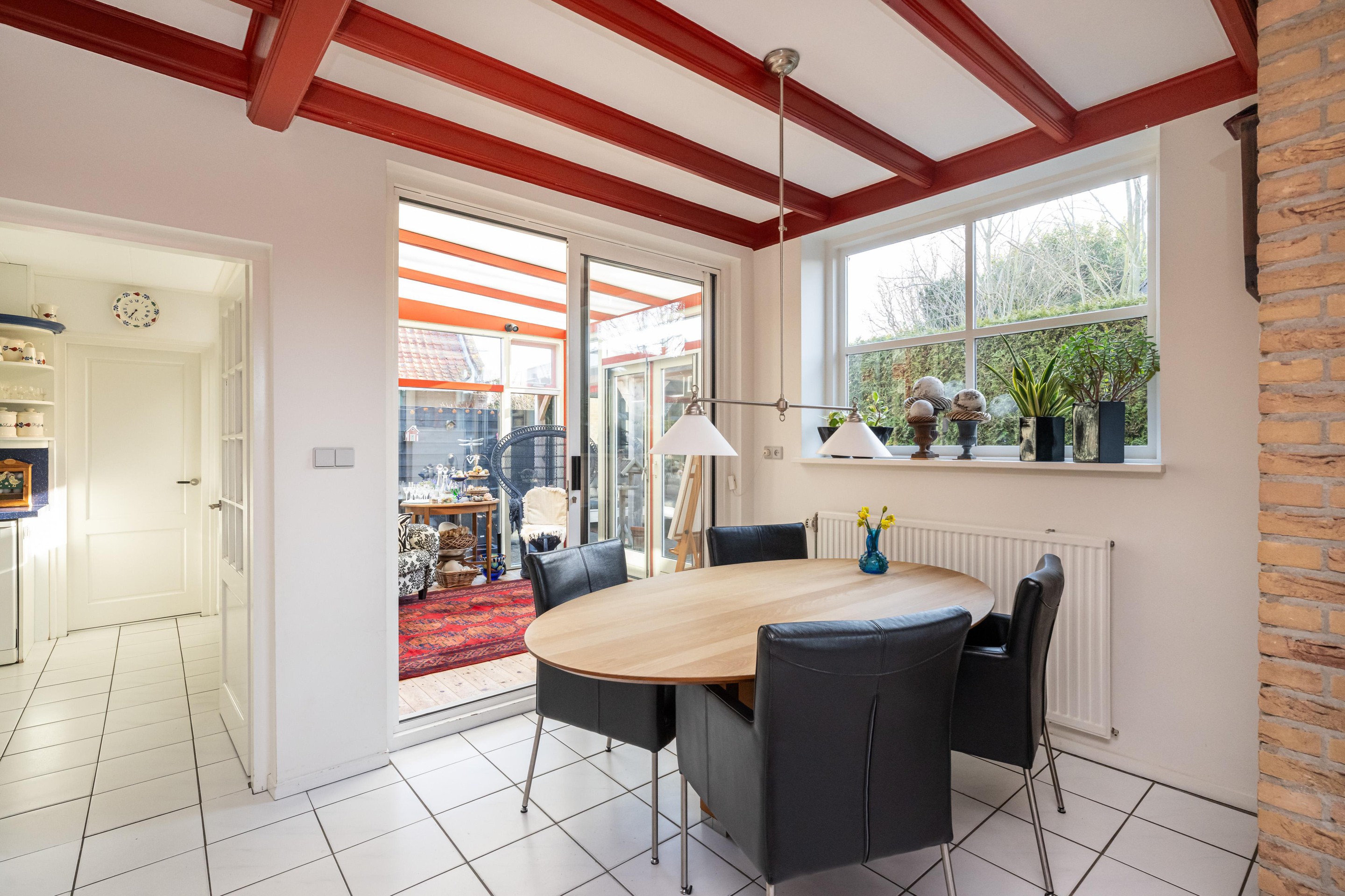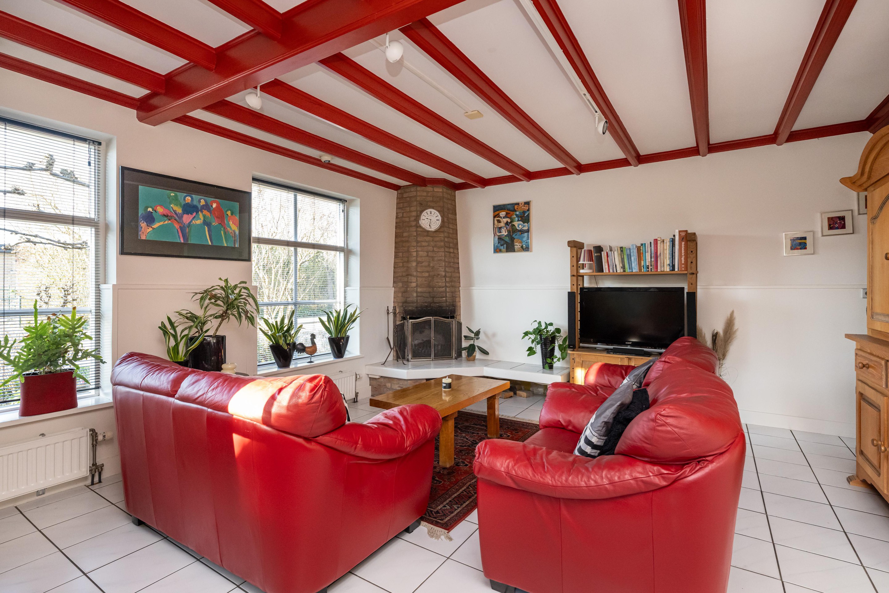 Binnen treft u een woonkamer aan die aangenaam en uitnodigend aanvoelt. Dit is een plek waar u zich al snel thuis zult voelen, of u nu een rustige avond op de bank doorbrengt of gezellig gasten ontvangt. De woonkamer loopt mooi over in de serre, wat zorgt voor extra leefruimte en een fijne verbinding met buiten. Deze serre vormt een waardevolle aanvulling op het wooncomfort en is een heerlijke plek om al vroeg in het voorjaar van het daglicht te genieten. Dankzij de openslaande deuren naar de tuin haalt u buiten op een natuurlijke manier naar binnen en ontstaat er een open, ruimtelijk gevoel.
