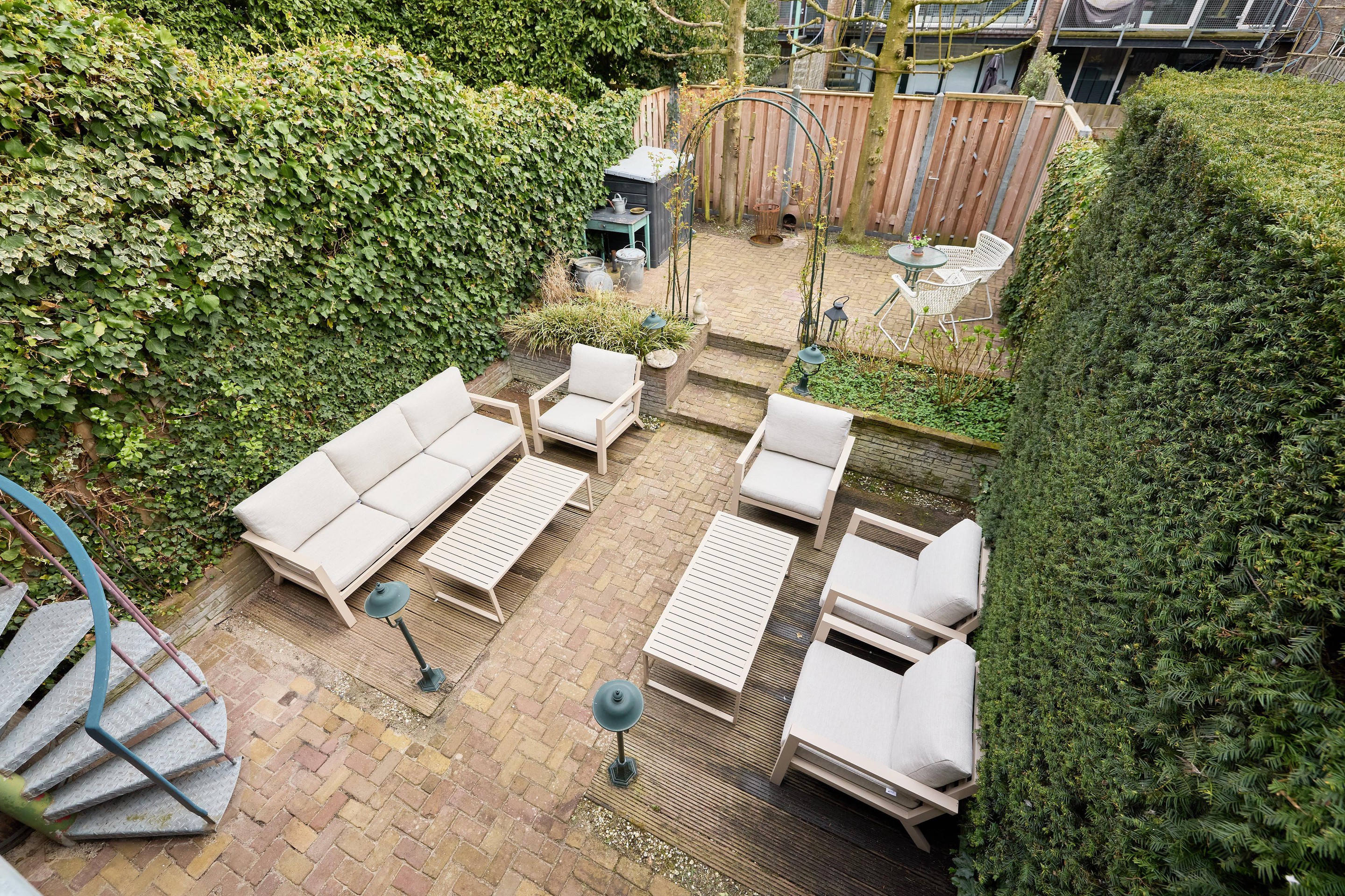 Tuin De woning beschikt over een sfeervolle en verzorgd aangelegde achtertuin die volop privacy biedt dankzij de groene erfafscheidingen. De tuin is speels ingedeeld met meerdere terrassen, waardoor je op verschillende plekken kunt zitten en optimaal kunt genieten van zowel zon als schaduw gedurende de dag. Via het balkon is de tuin direct bereikbaar middels een trap, wat zorgt voor een prettige verbinding tussen de woonverdieping en buitenruimte. Achterin de tuin bevindt zich nog een extra zitgedeelte, ideaal voor lange zomeravonden. De tuin beschikt bovendien over een praktische achterom. Aan de voorzijde is parkeergelegenheid voor 2 auto’s op eigen terrein.