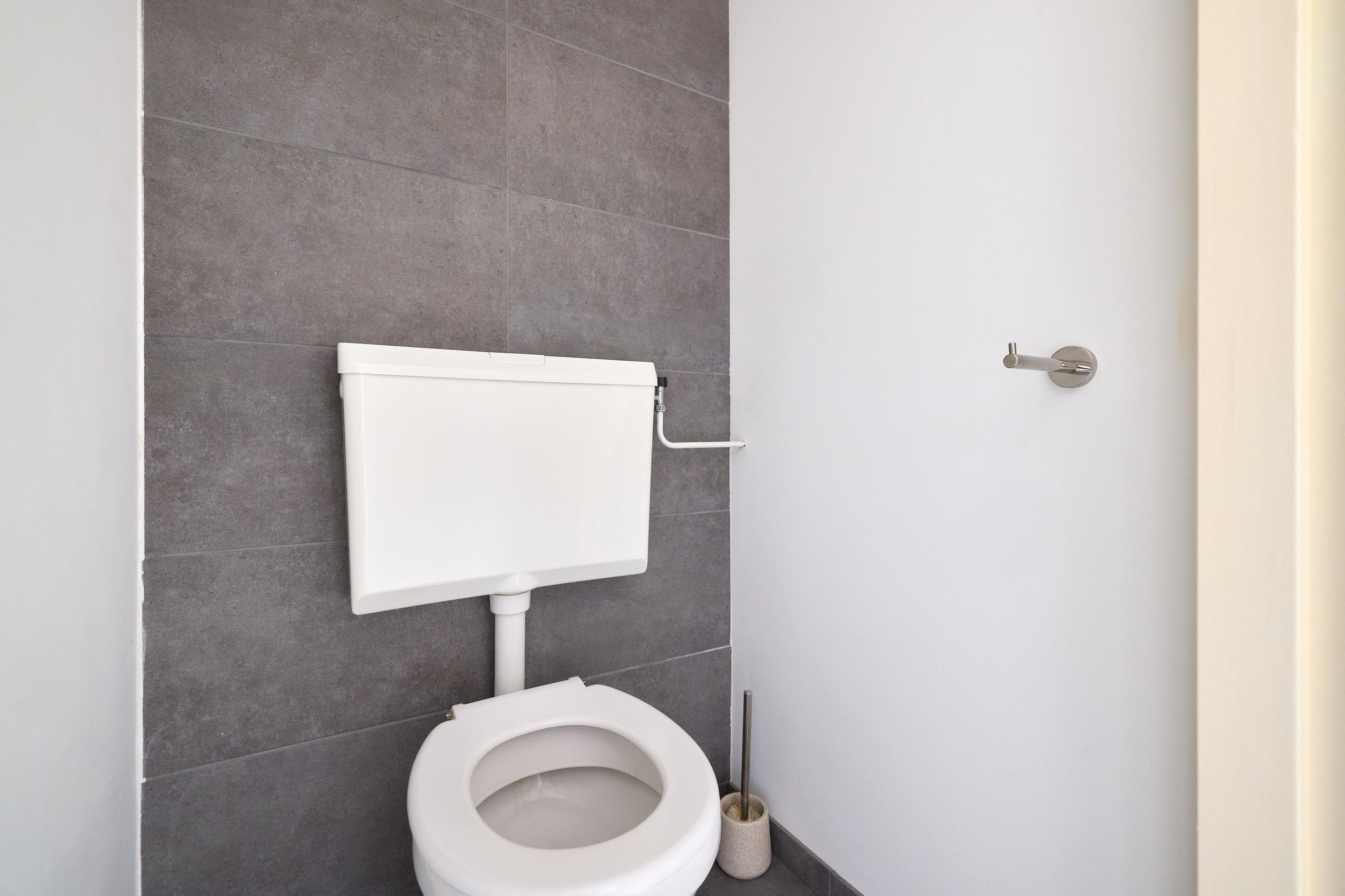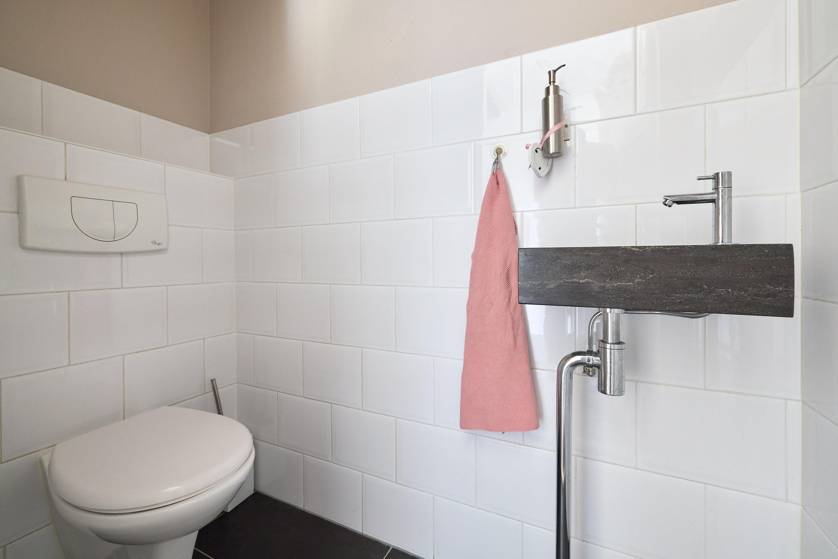 Begane grond Je komt binnen in de hal met meterkast en een praktische trapkast. Vanuit hier heb je toegang tot de inpandige garage, ideaal voor het stallen van fietsen of als bergruimte. Aan de achterzijde van de woning bevindt zich een ruime slaapkamer op de begane grond, wat deze woning uitermate geschikt maakt voor bijvoorbeeld gelijkvloers wonen, een praktijk aan huis of een zelfstandige ruimte voor een gezinslid. Grenzend aan deze kamer vind je een separate wasruimte met aansluitingen voor wasmachine en droger. Daarnaast is er een toiletruimte aanwezig. Zowel vanuit de slaapkamer als vanuit de wasruimte heb je toegang tot de achterzijde van de woning, wat zorgt voor een prettige verbinding tussen binnen en buiten.