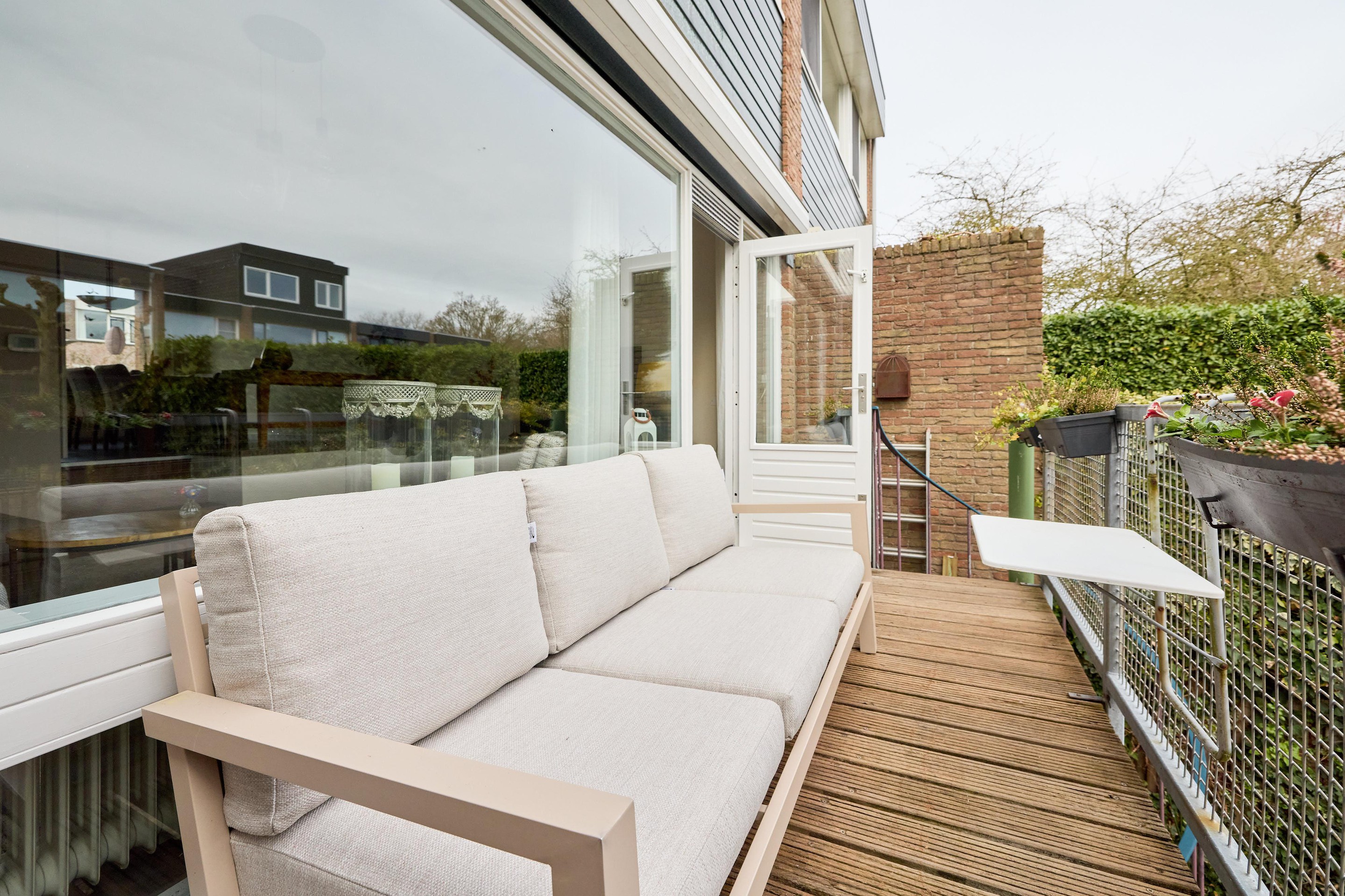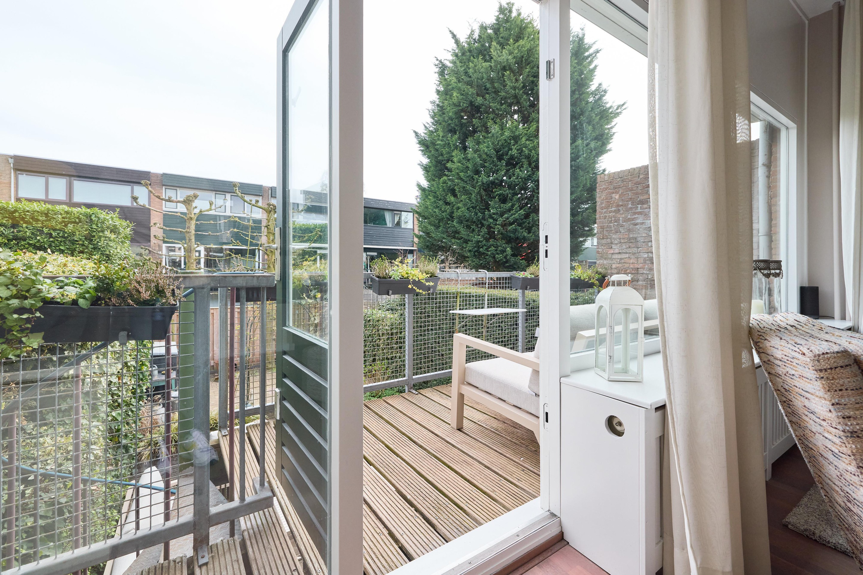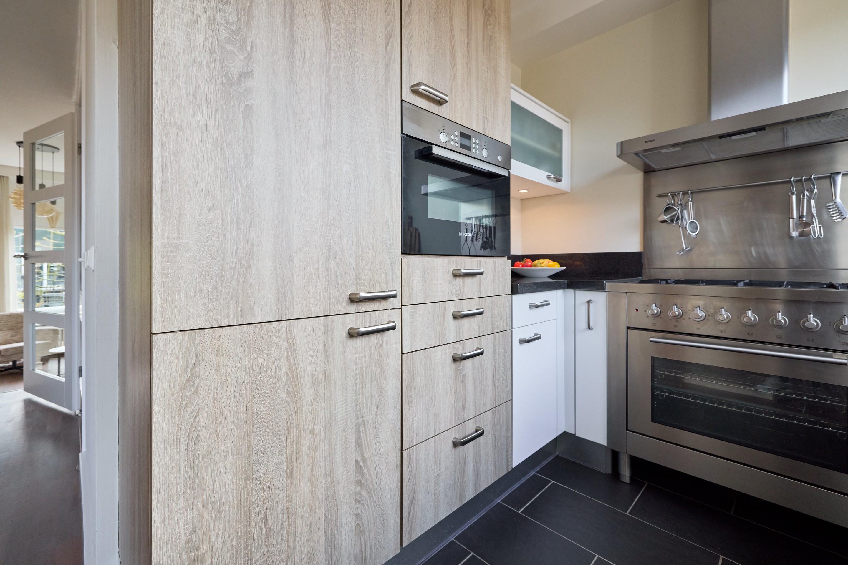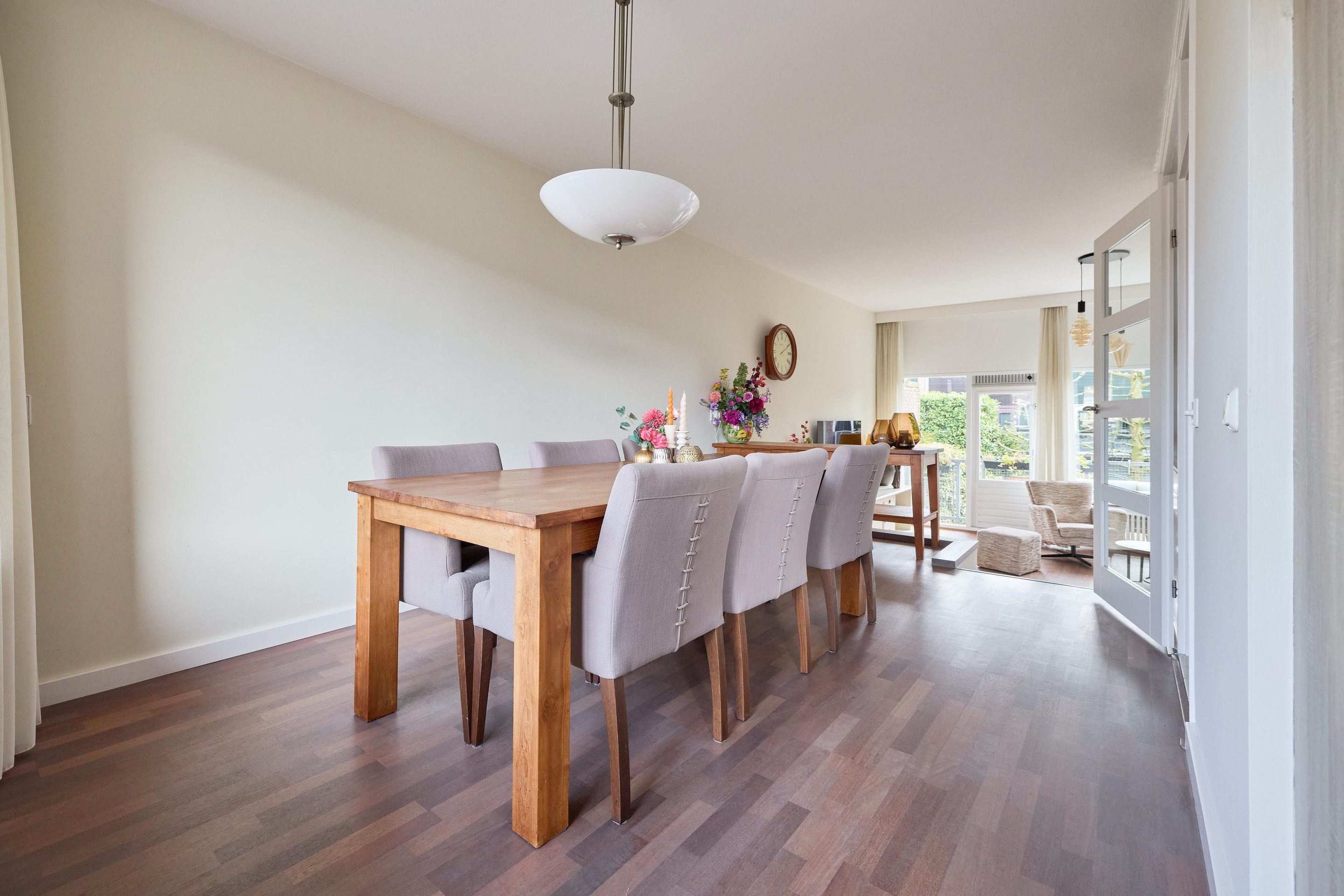 Eerste verdieping Via de overloop bereik je de royale en lichte woonkamer, gelegen aan de achterzijde van de woning. Dankzij de grote raampartijen valt hier veel daglicht naar binnen en heb je een prettig uitzicht op de tuin. Vanuit de woonkamer heb je direct toegang tot het balkon met de ochtendzon, wat zorgt voor een fijne verlenging van de leefruimte. Via de trap vanaf het balkon bereik je bovendien eenvoudig de achtertuin. Aan de voorzijde van de woning bevindt zich de eetkamer met aansluitend de keuken. Deze is praktisch ingericht en voorzien van diverse inbouwapparatuur, waaronder een 5 pits gasfornuis met oven, een combimagnetron, koelkast, vaatwasser en een afzuigkap. De aanwezigheid van een Quooker maakt het geheel extra comfortabel en compleet. Ook aan de voorzijde is een balkon aanwezig, waar je kunt genieten van de middag en avondzon. Daarnaast bevindt zich op deze verdieping een separate toiletruimte.
