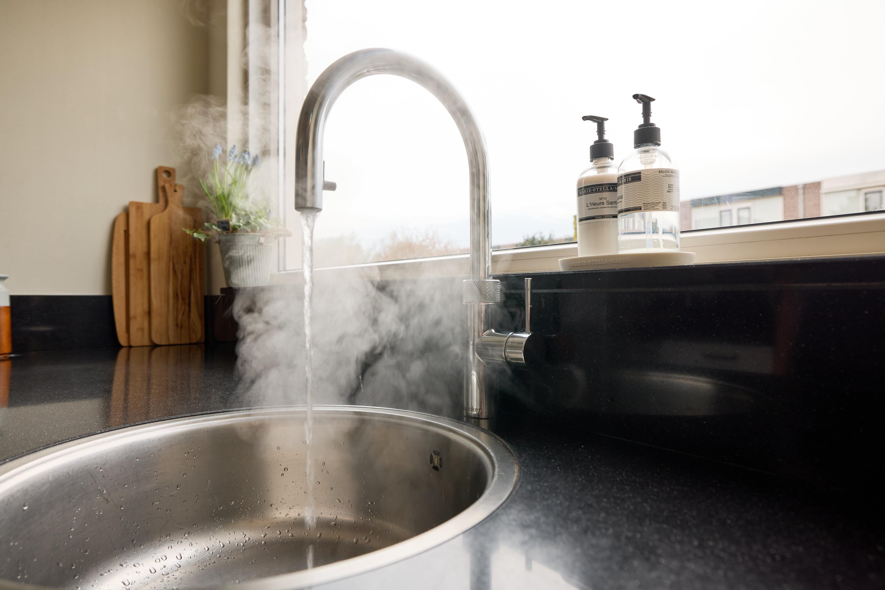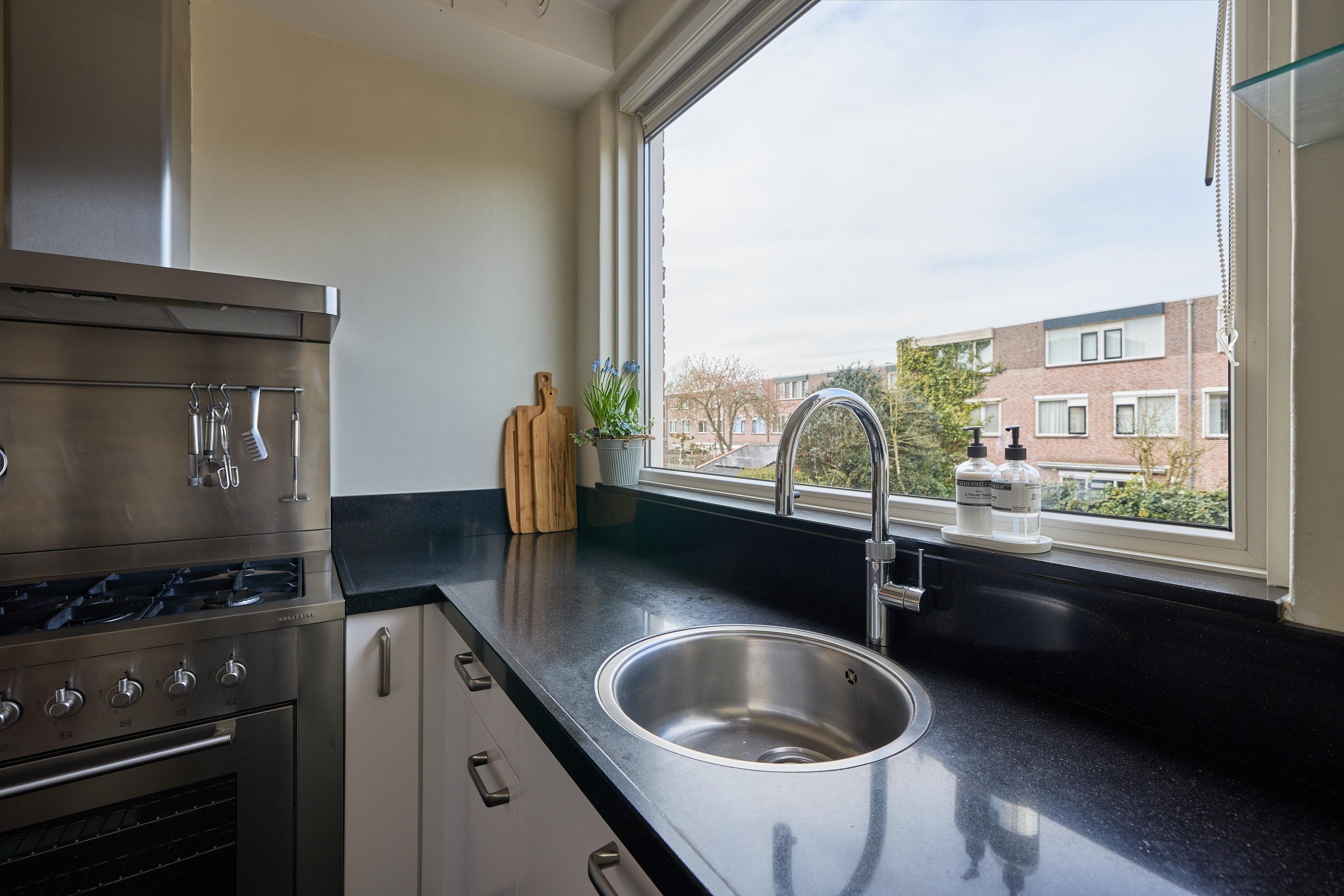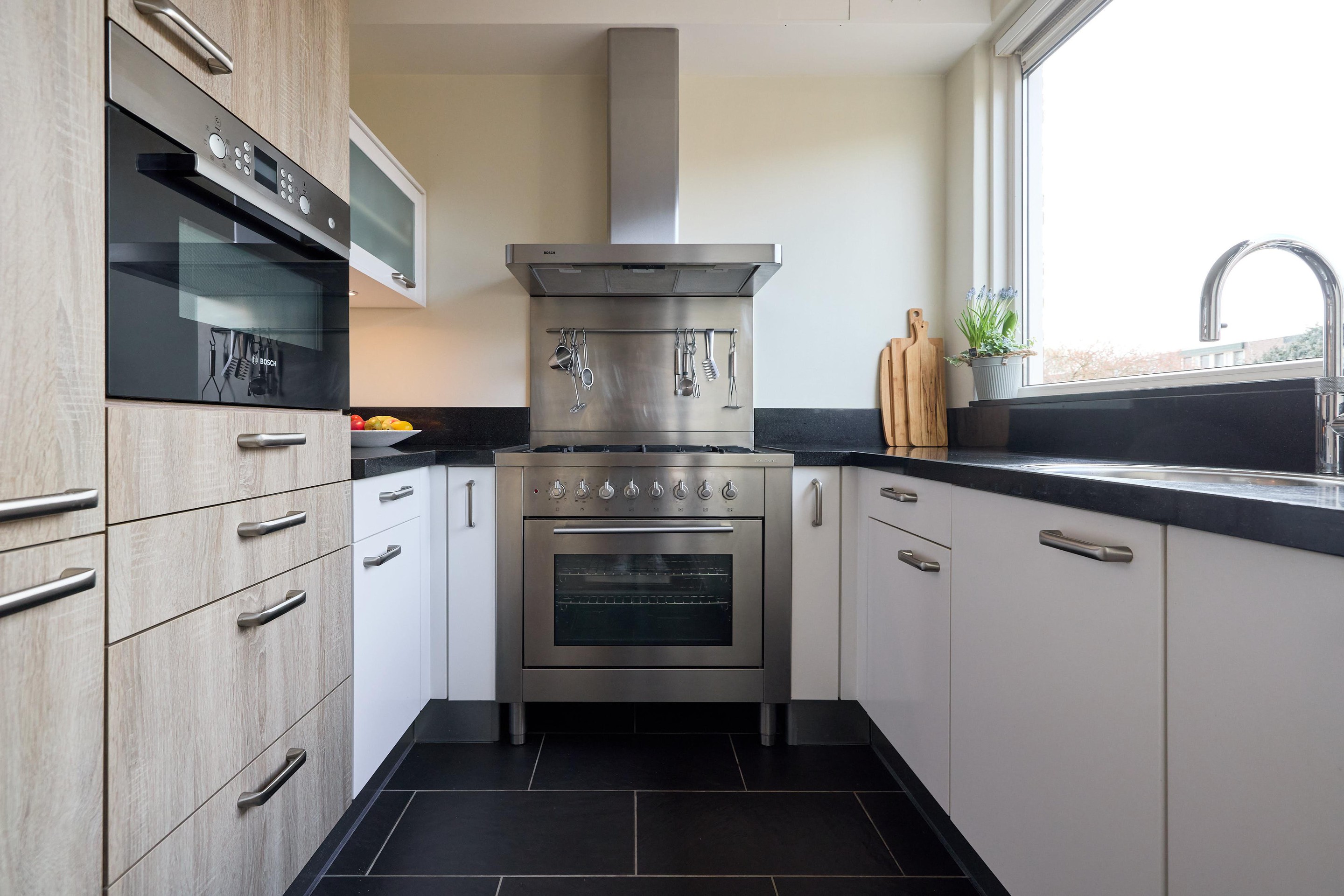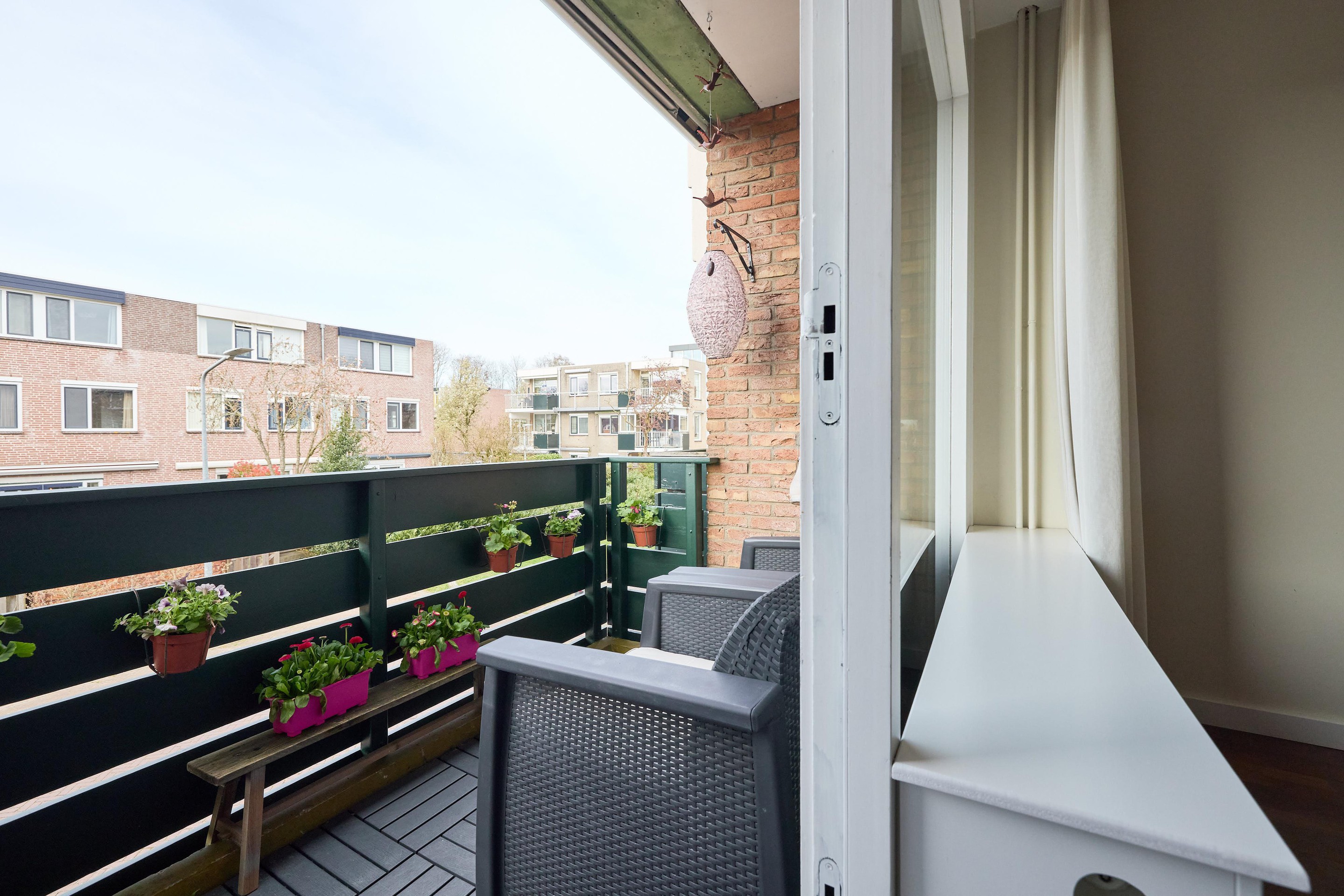 Eerste verdieping Via de overloop bereik je de royale en lichte woonkamer, gelegen aan de achterzijde van de woning. Dankzij de grote raampartijen valt hier veel daglicht naar binnen en heb je een prettig uitzicht op de tuin. Vanuit de woonkamer heb je direct toegang tot het balkon met de ochtendzon, wat zorgt voor een fijne verlenging van de leefruimte. Via de trap vanaf het balkon bereik je bovendien eenvoudig de achtertuin. Aan de voorzijde van de woning bevindt zich de eetkamer met aansluitend de keuken. Deze is praktisch ingericht en voorzien van diverse inbouwapparatuur, waaronder een 5 pits gasfornuis met oven, een combimagnetron, koelkast, vaatwasser en een afzuigkap. De aanwezigheid van een Quooker maakt het geheel extra comfortabel en compleet. Ook aan de voorzijde is een balkon aanwezig, waar je kunt genieten van de middag en avondzon. Daarnaast bevindt zich op deze verdieping een separate toiletruimte.