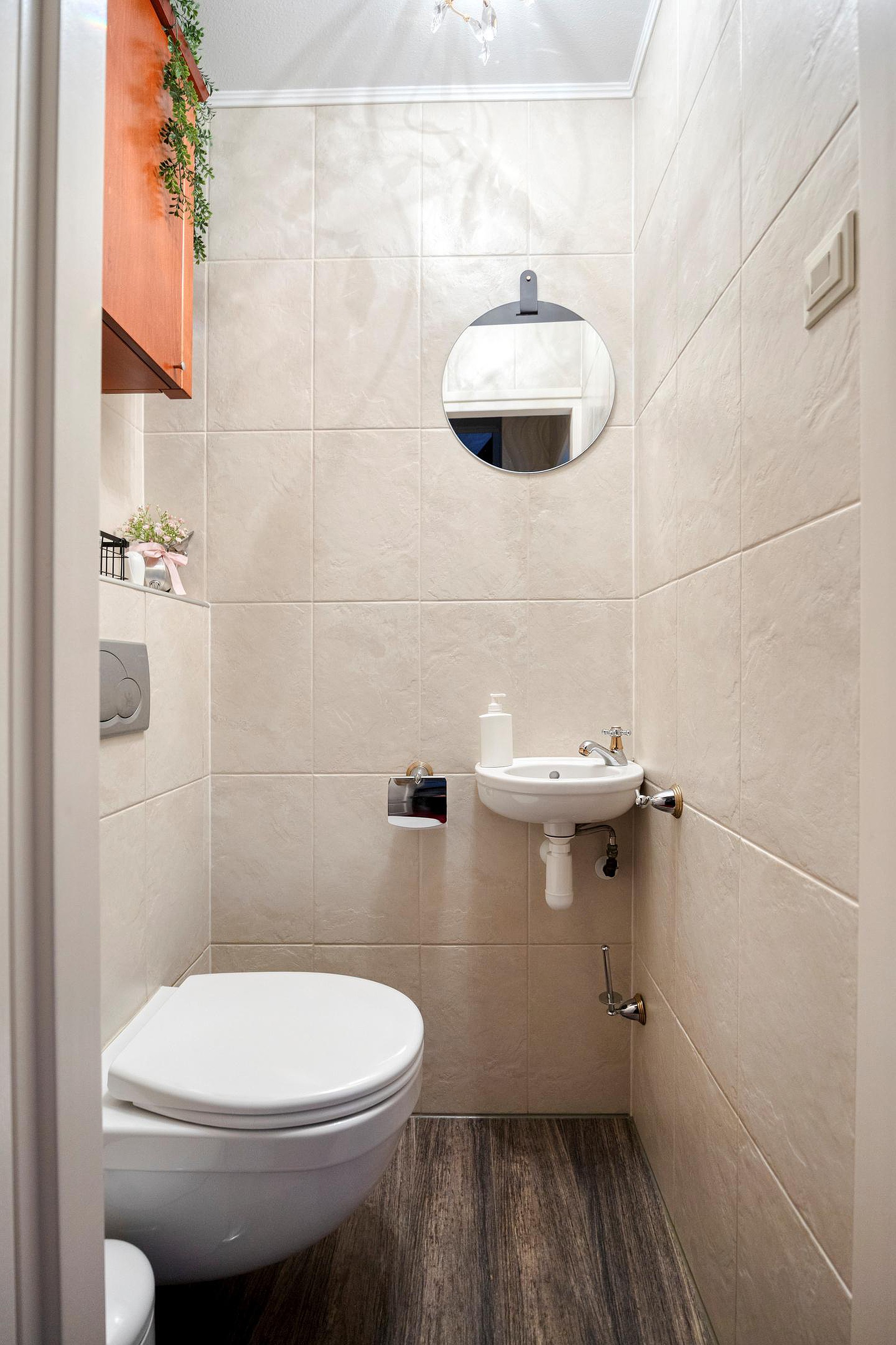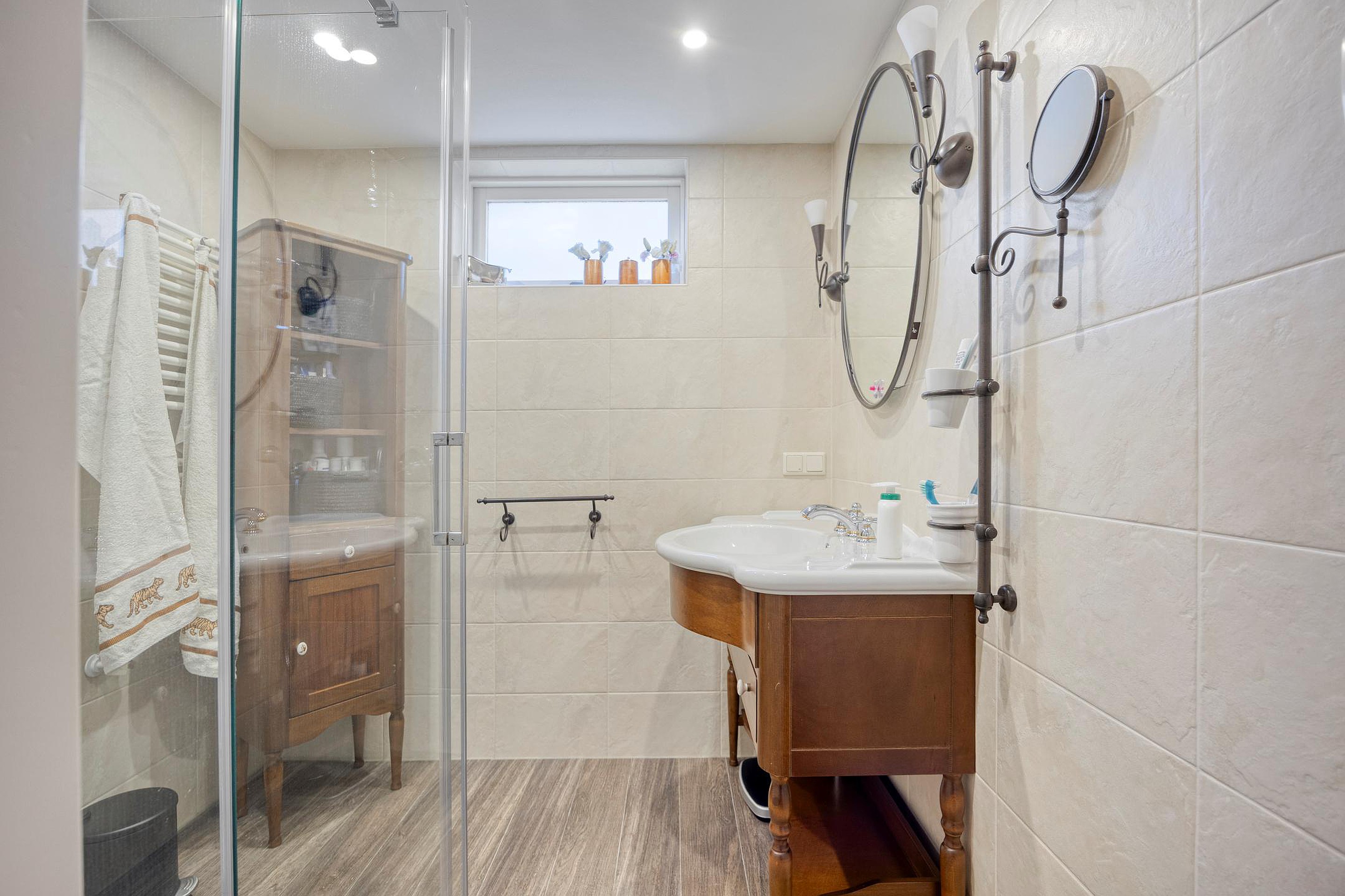 1e verdieping: overloop, 3 ruime slaapkamers, keurig onderhouden badkamer met een douche en wastafelmeubel.