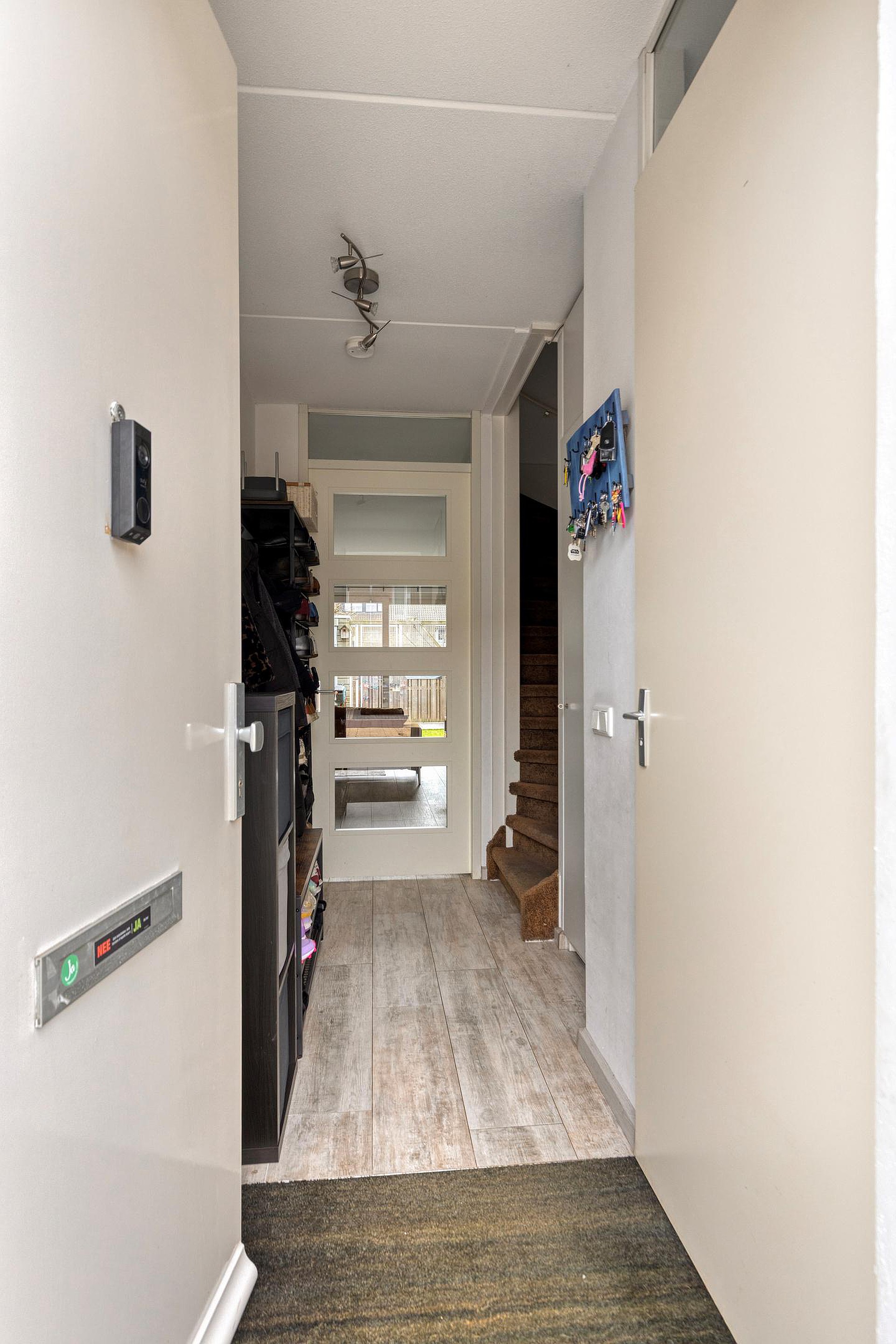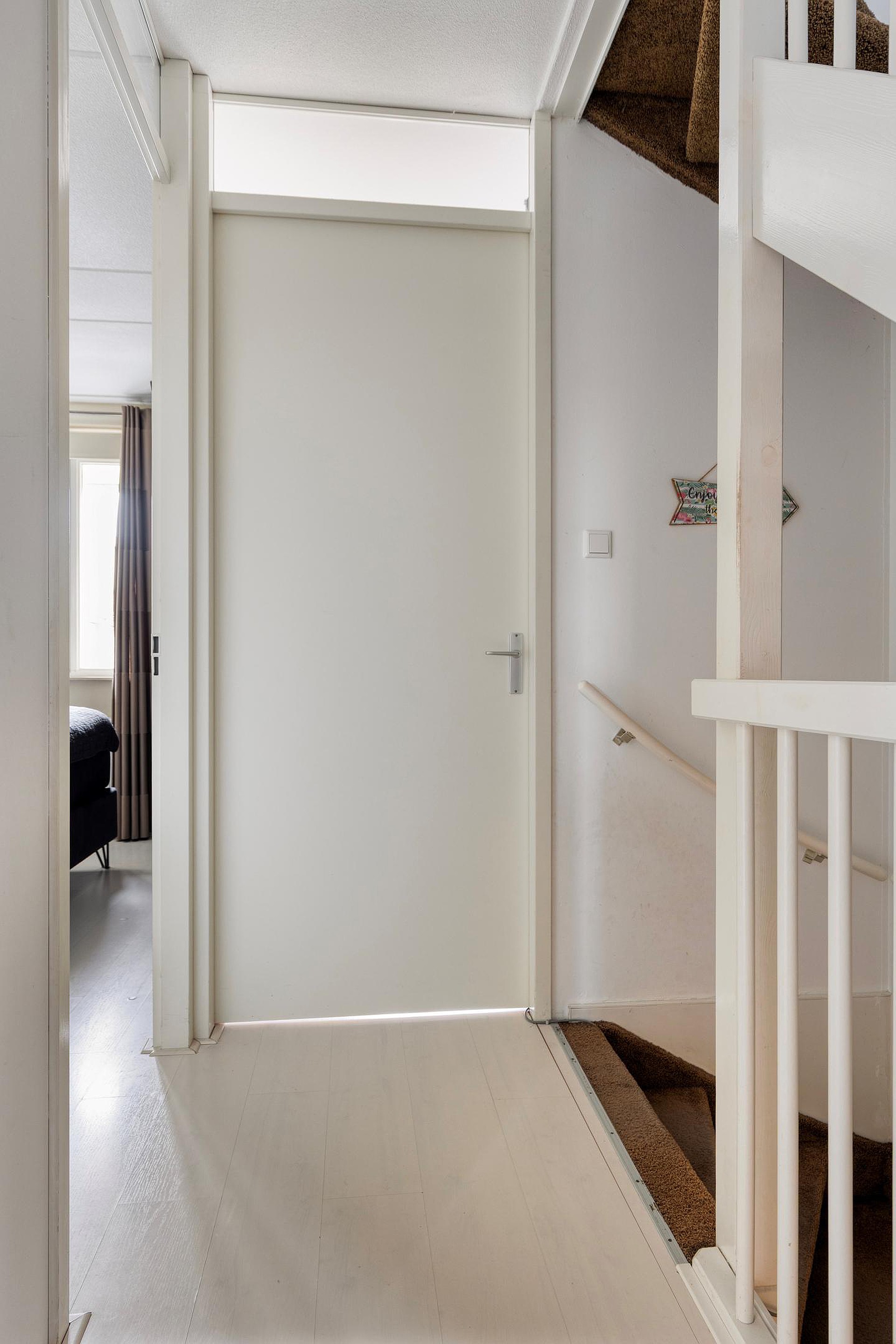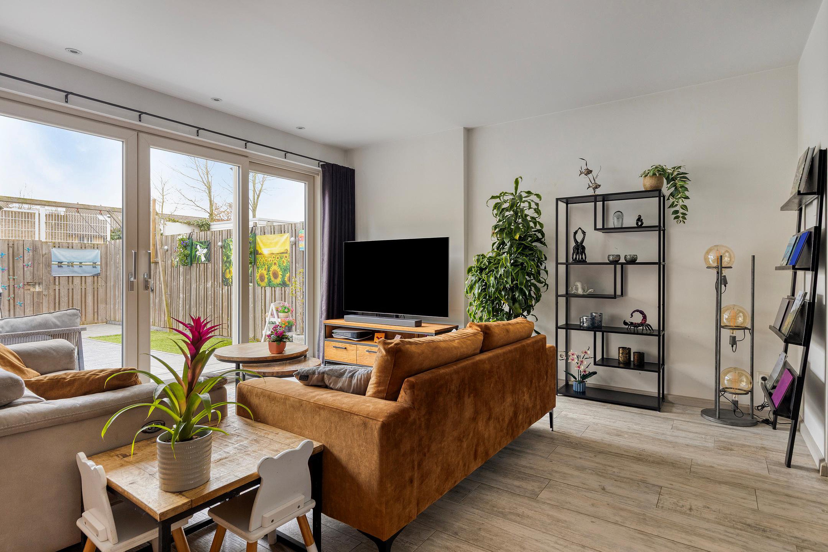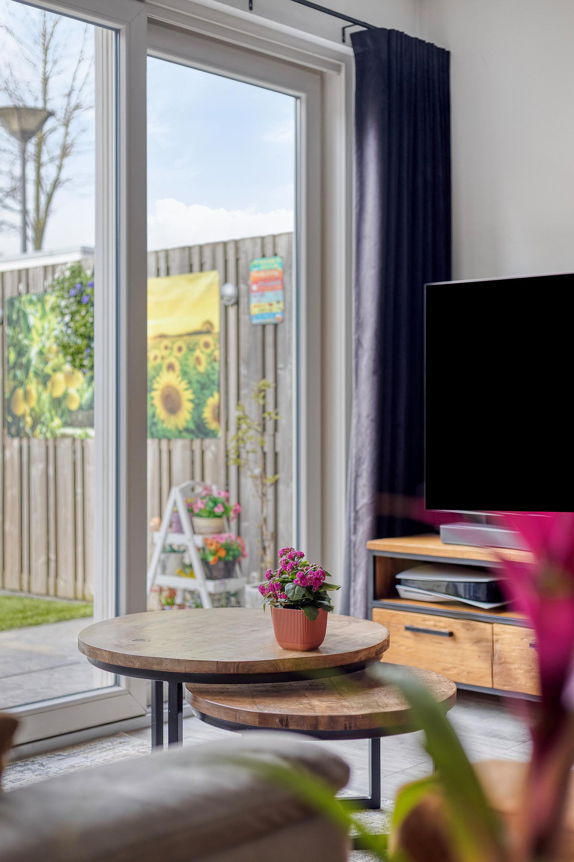 Begane grond: entree, hal met meterkast, trapkast, vernieuwd toilet met een fonteintje, lichte woonkamer met uitbouw, vloerverwarming en schuifpui naar de