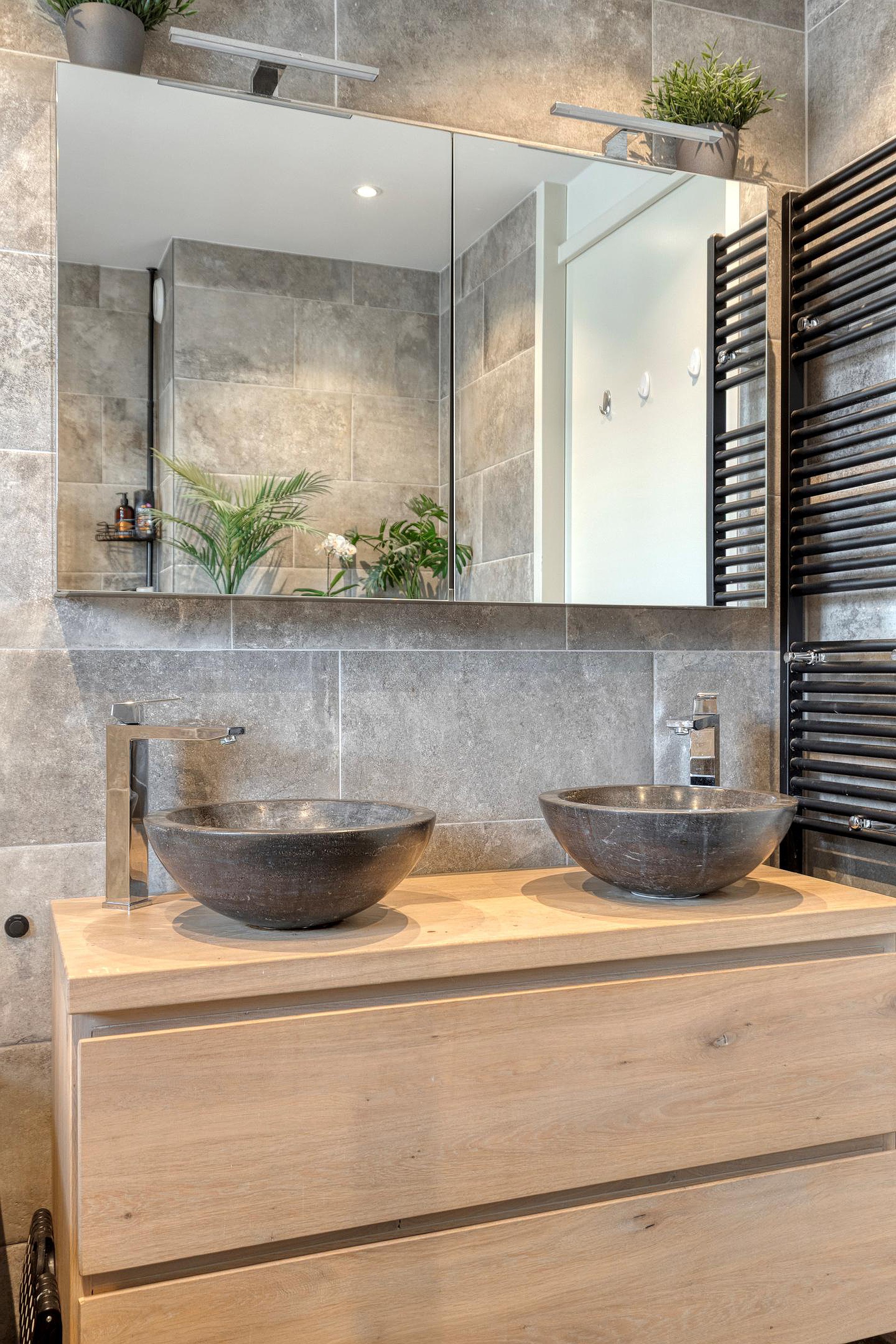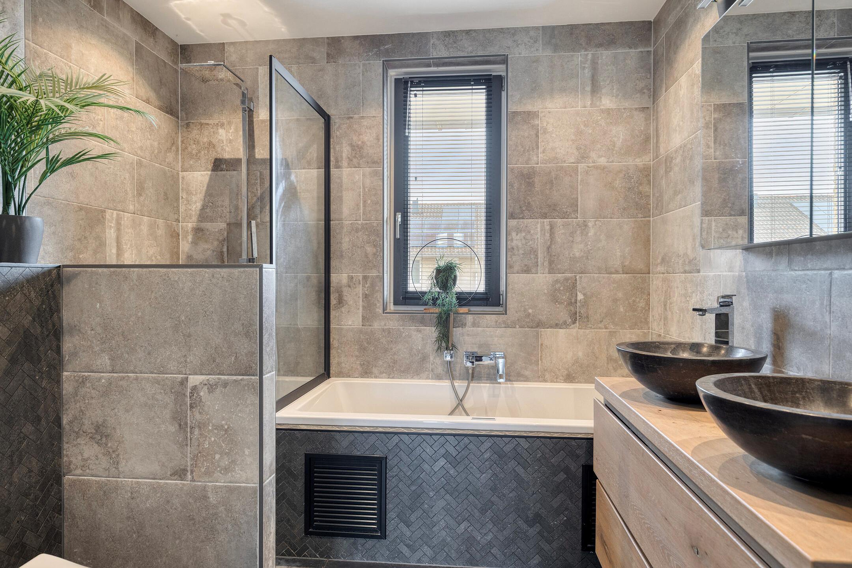 1e verdieping: overloop, 3 ruime slaapkamers, een nieuwe moderne badkamer met een inloopdouche, bubbelbad, dubbel wastafelmeubel en 2e toilet.