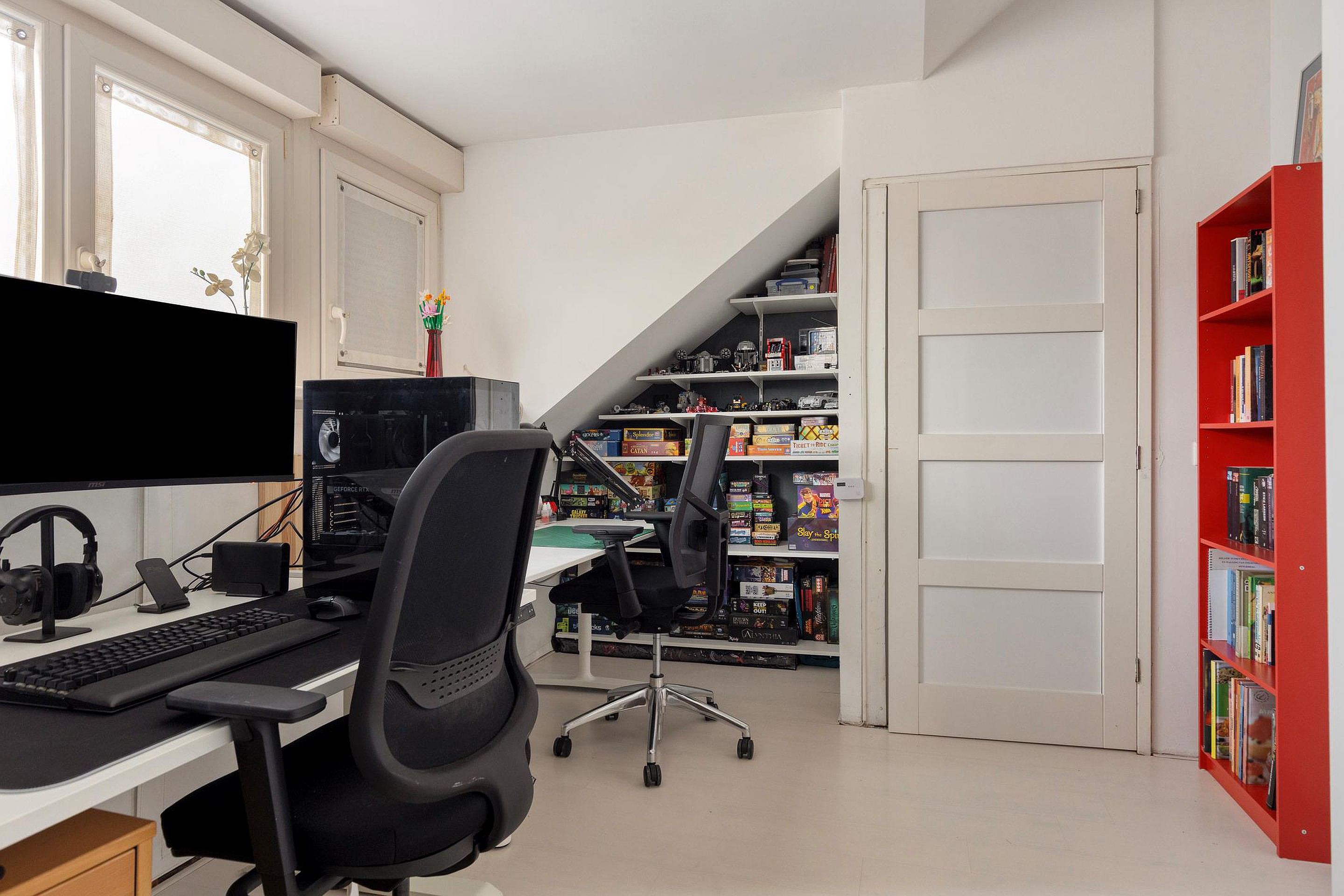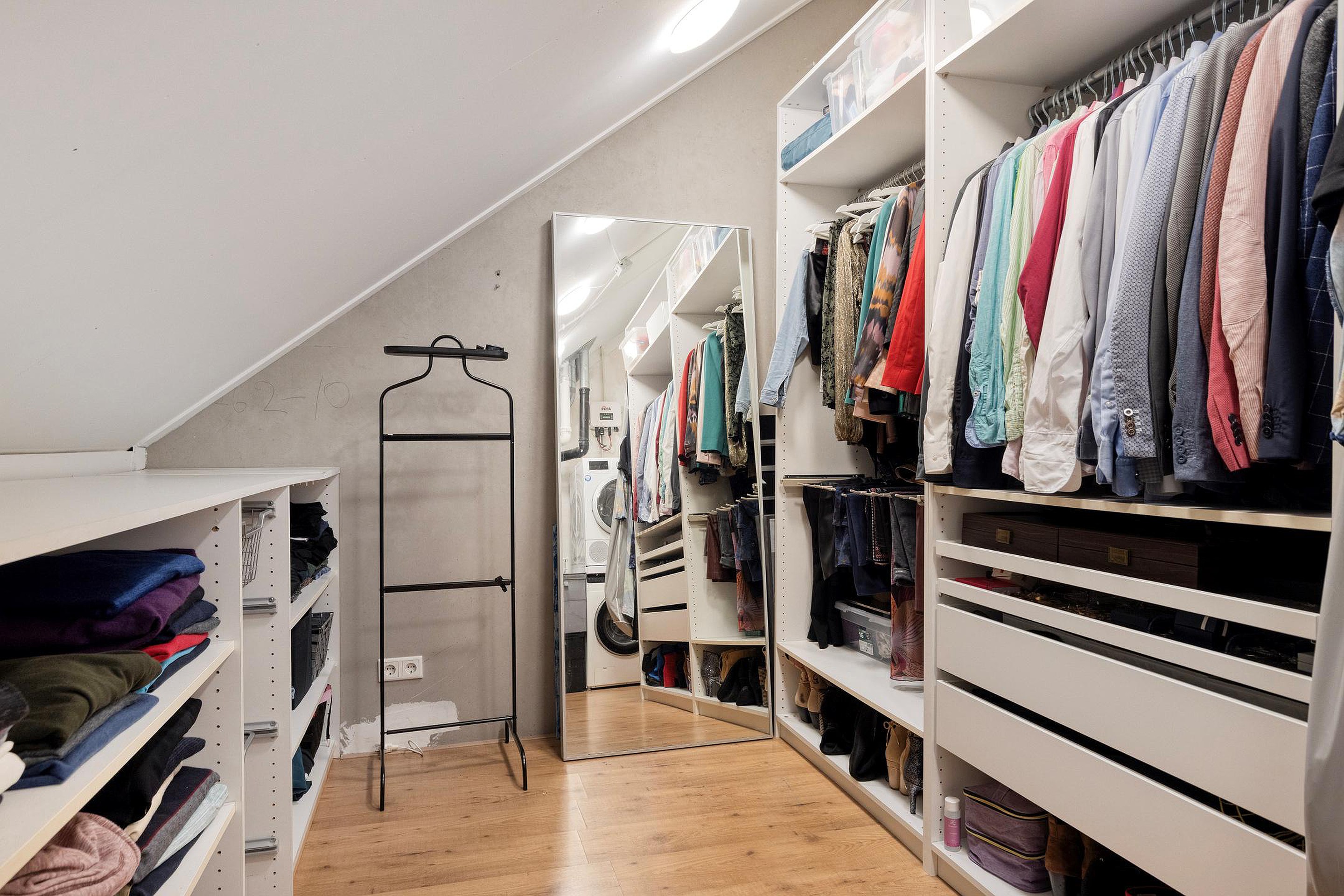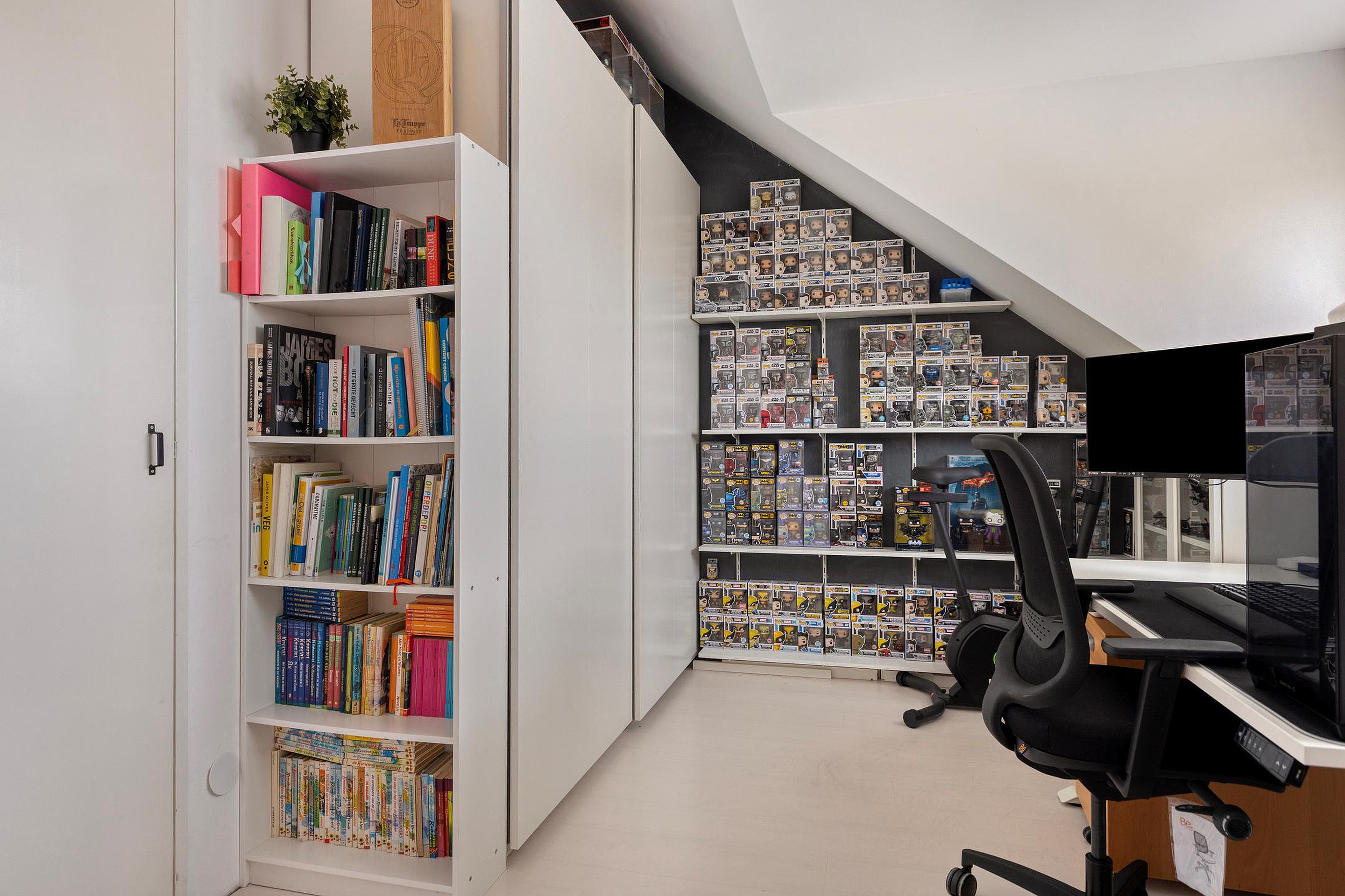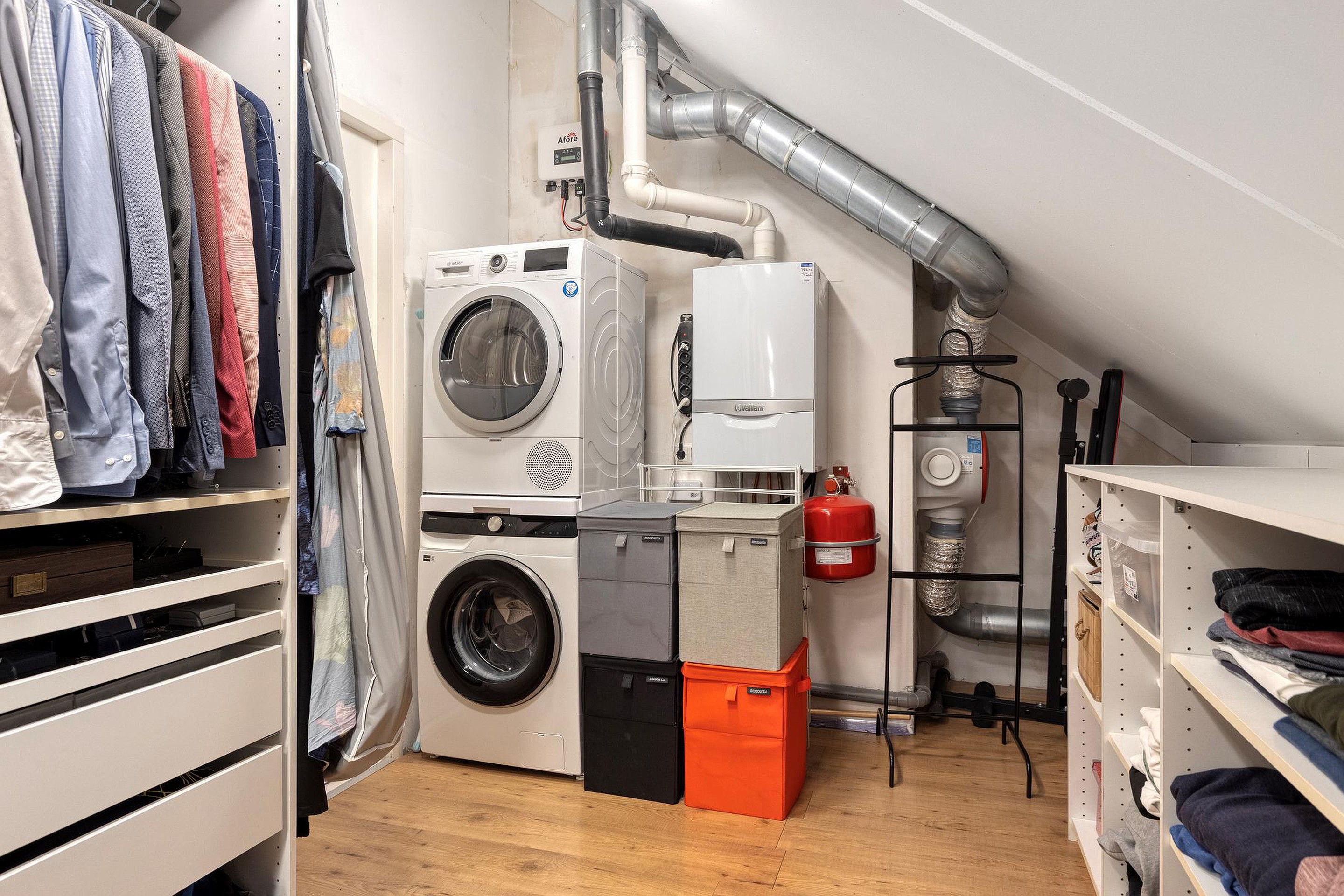 2e verdieping: Een ruime 4e slaapkamer met een dakkapel, bergruimte in de knieschotten en inloopkast/bergruimte met opstelplaats CV-ketel, omvormer