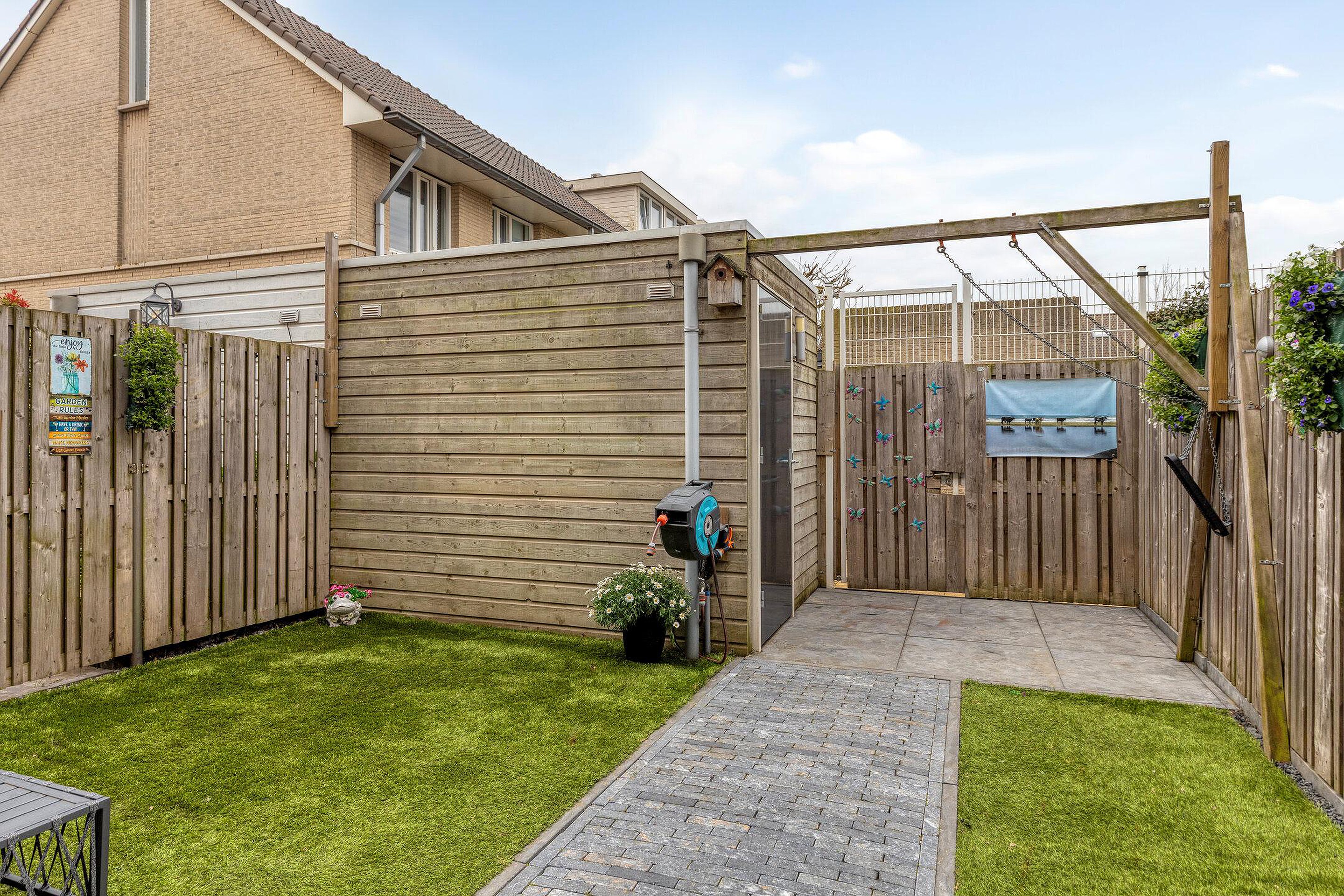 achtertuin (Z/W) met automatische buitenverlichting d.m.v. sensoren en tijdschakelaars, elektrisch zonnescherm, berging en achterom. De nieuwe luxe open