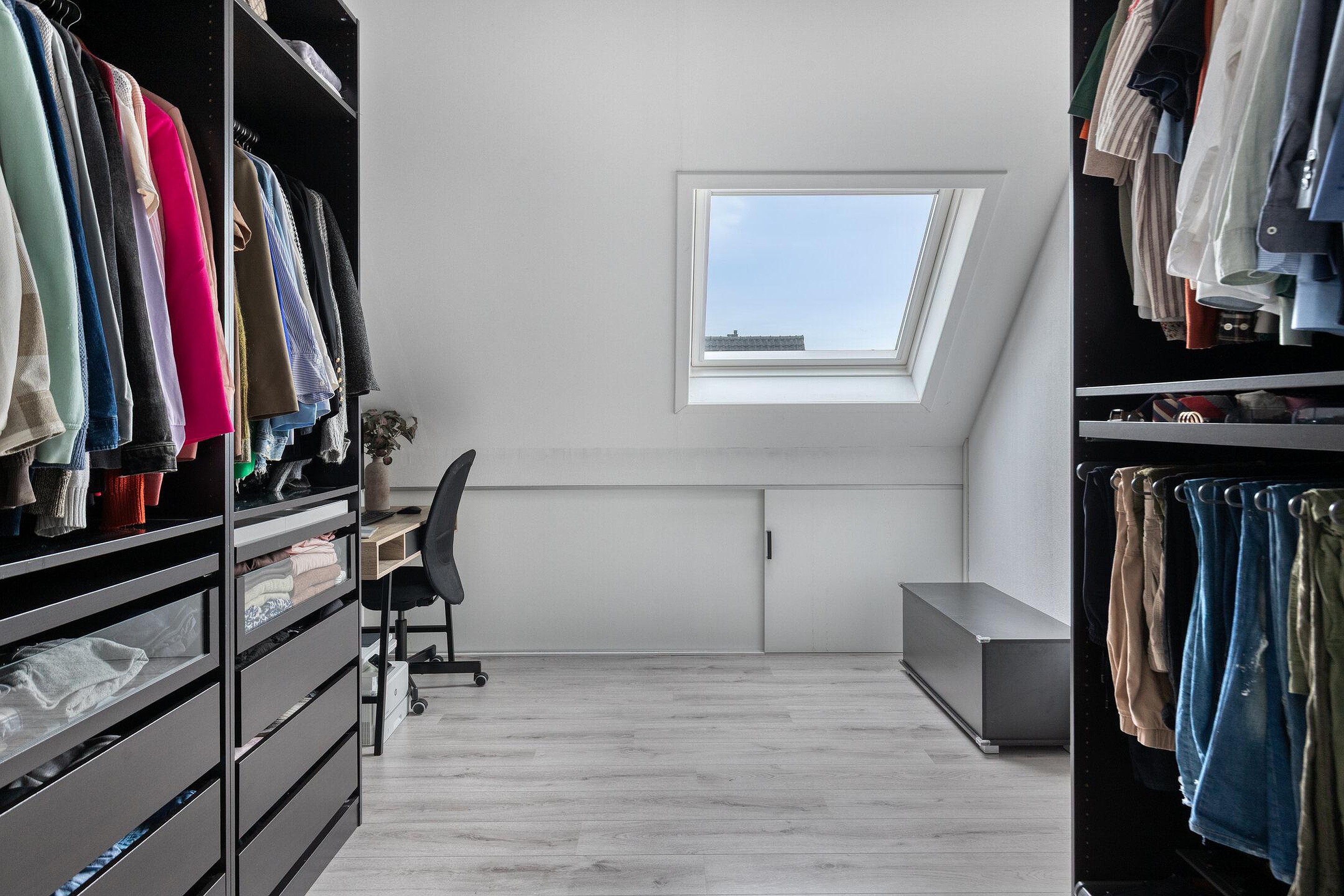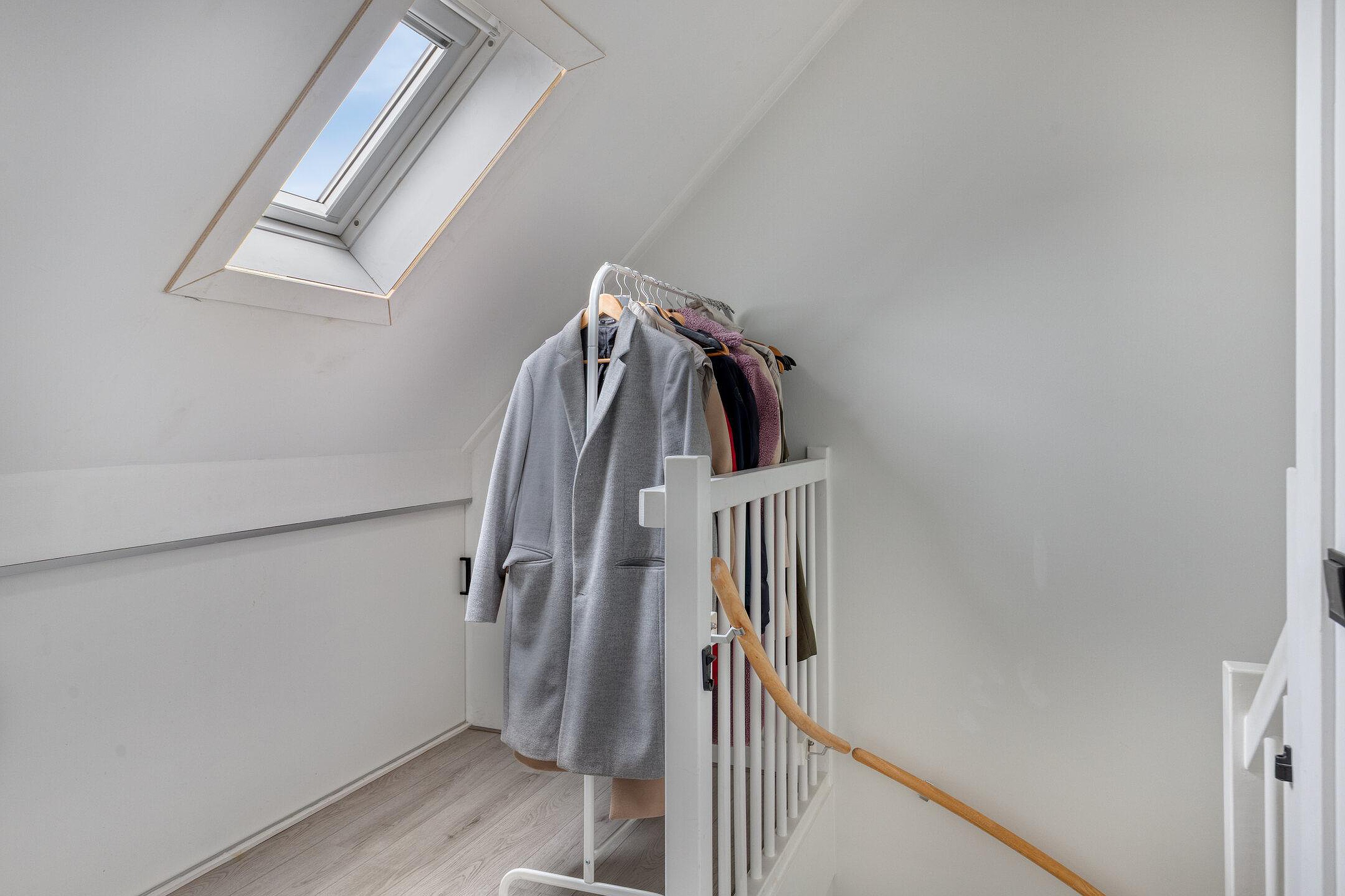 2e verdieping: overloop met een dakraam, wasruimte met opstelplaats wasmachine/droger, CV-ketel en mechanische ventilatiebox, 4e ruime slaapkamer met een dakraam en bergruimte in de knieschotten.