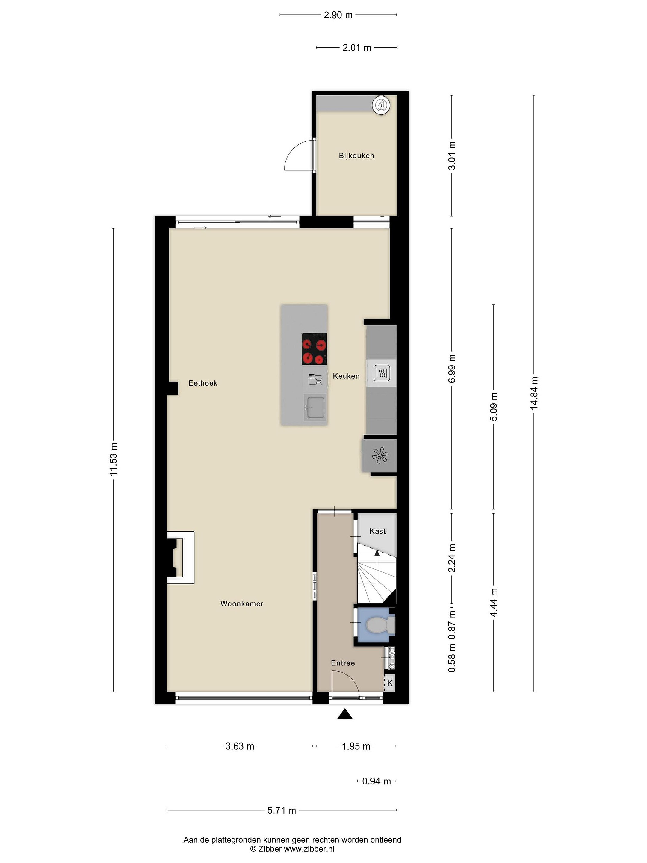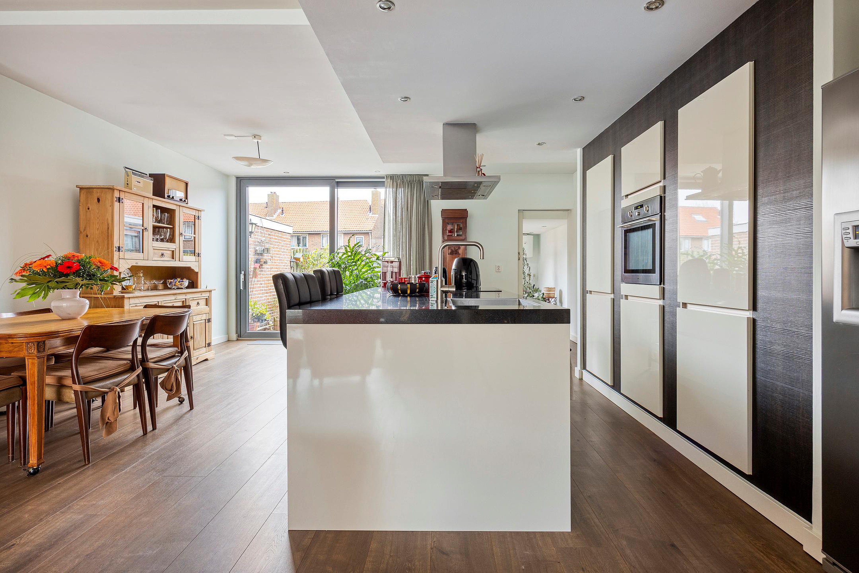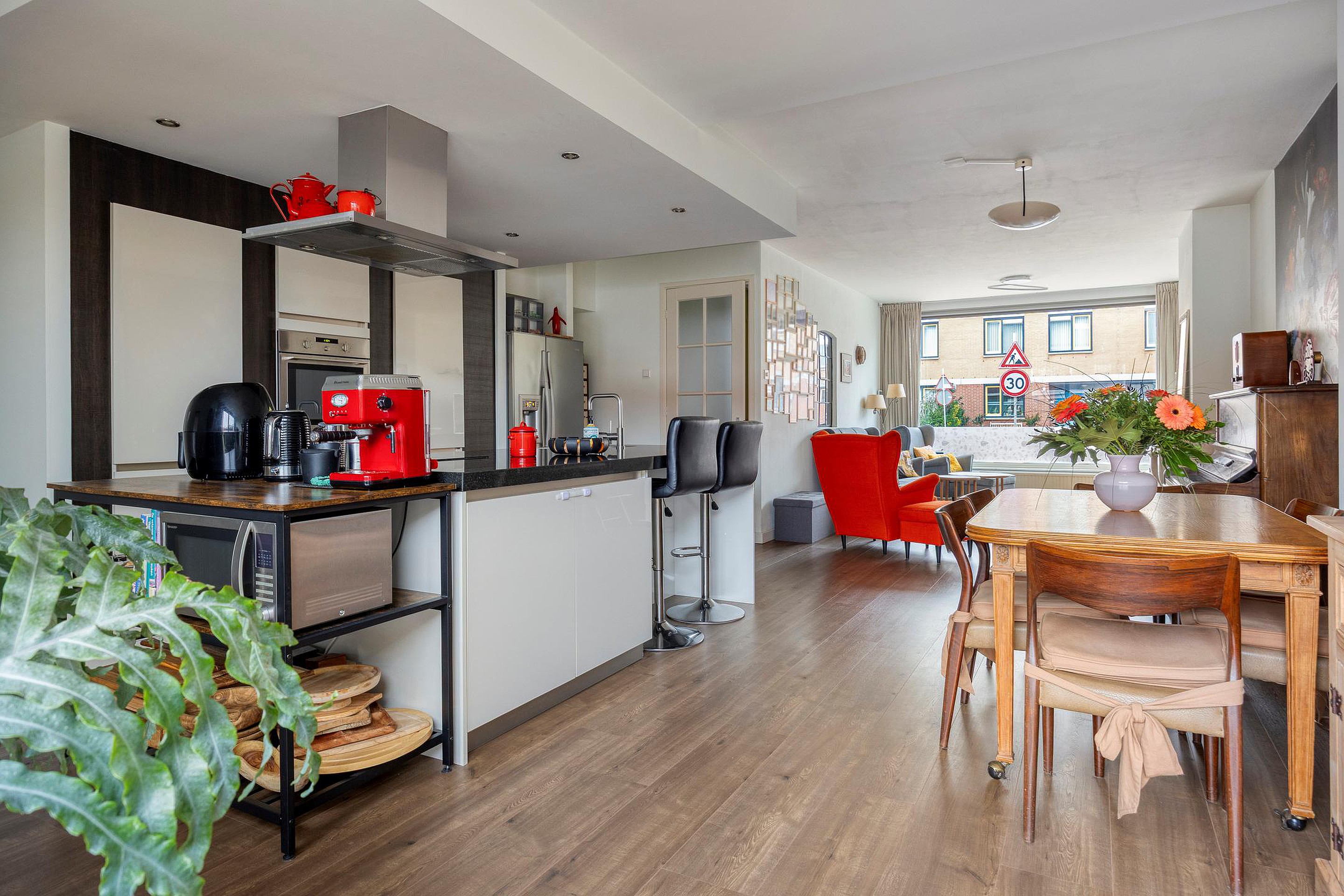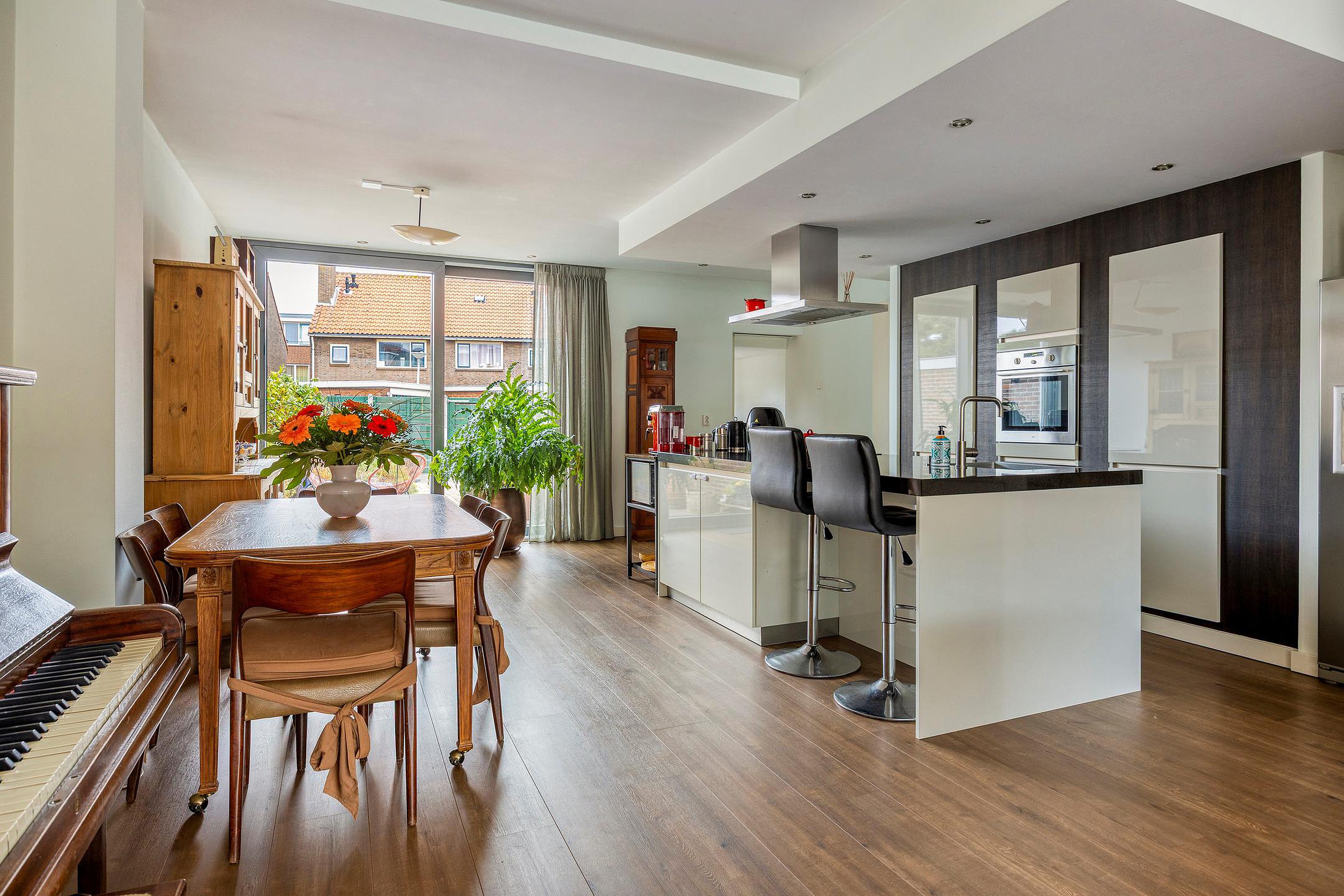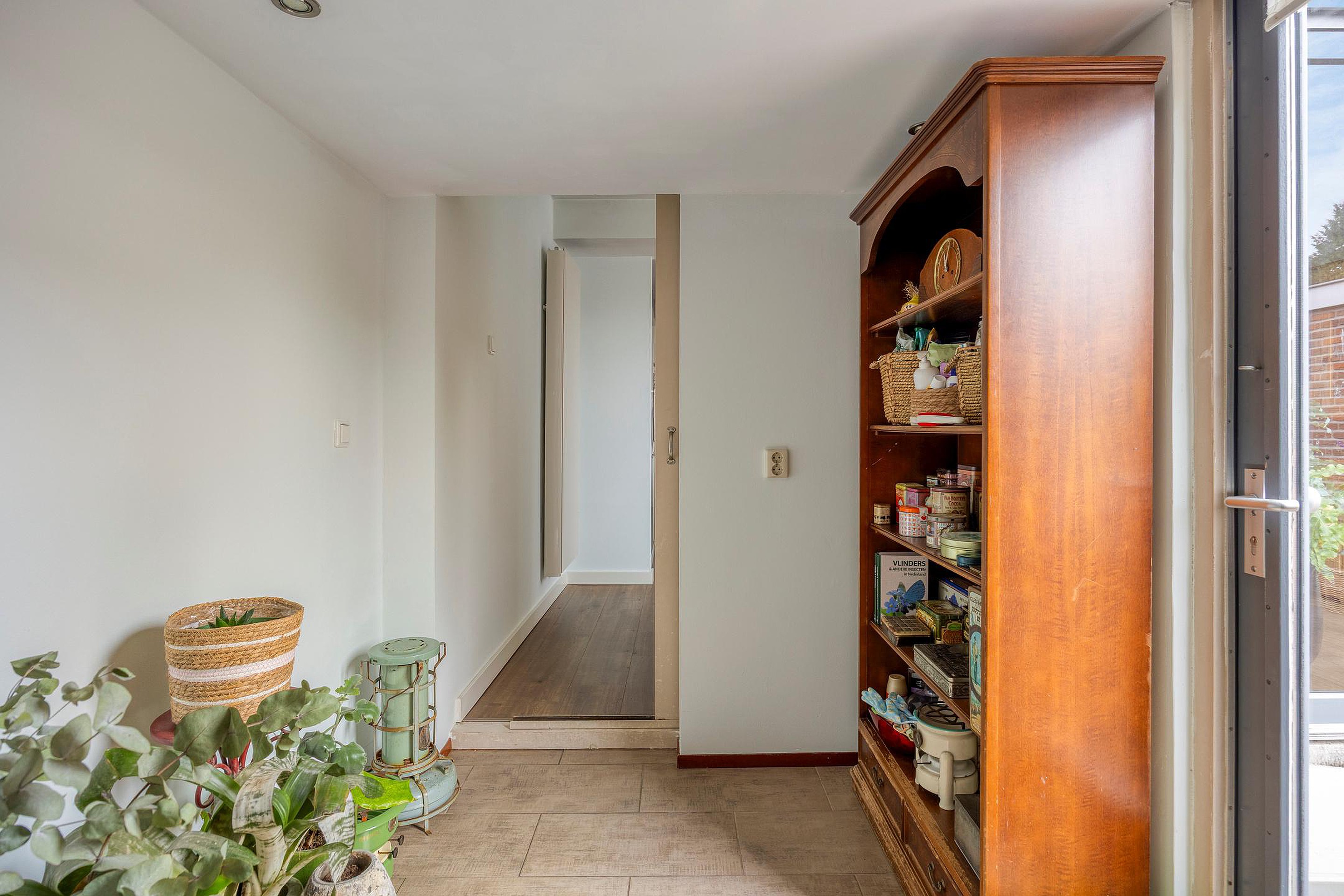 Begane grond: entree, hal met meterkast, trapkast, toilet, lichte doorzonwoonkamer met een haard, open keuken met een kookeiland, diverse inbouwapparatuur, schuifpui naar de keurig verzorgde achtertuin (O), bijkeuken met opstelplaats boiler en een loopdeur naar de tuin met achterom.
