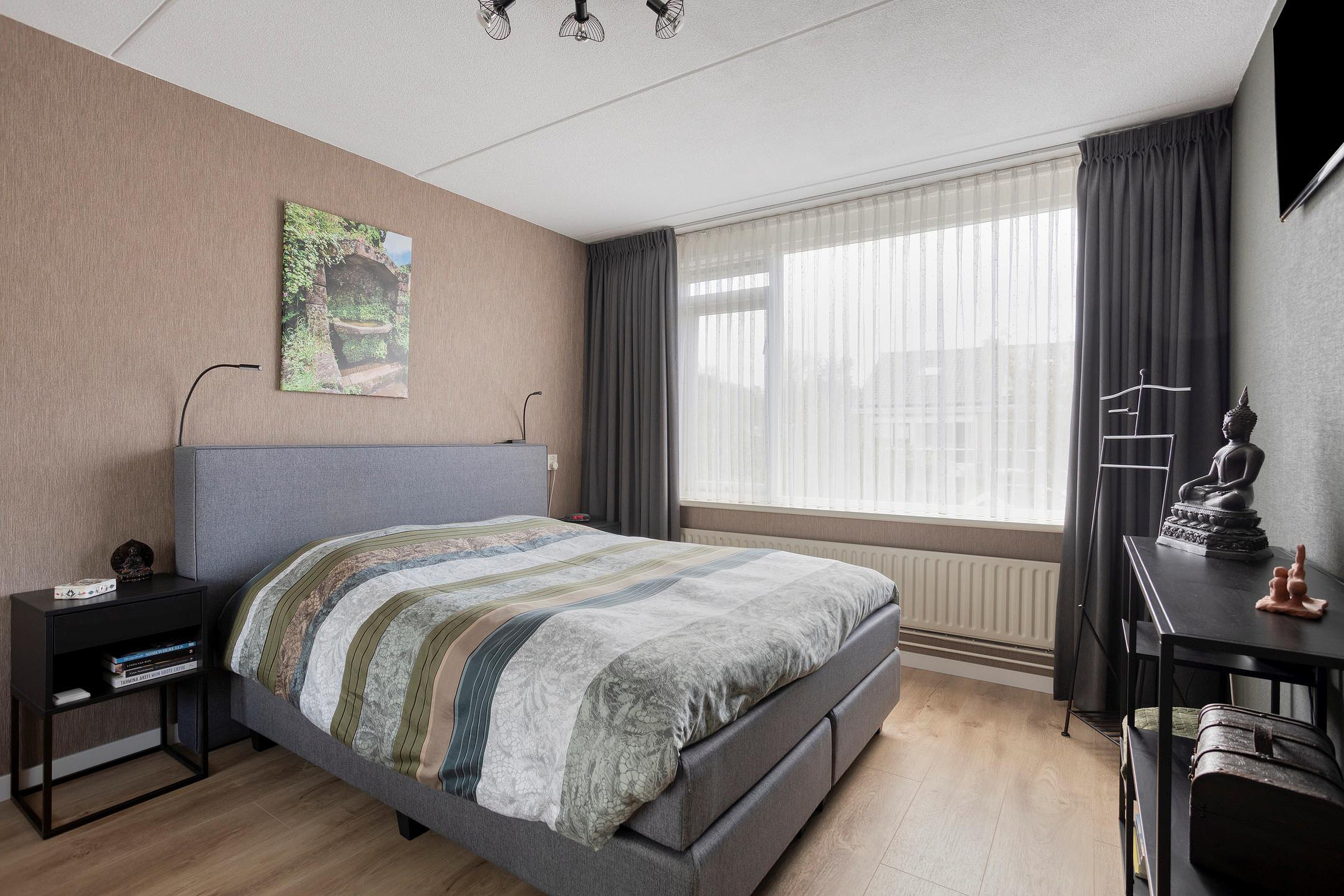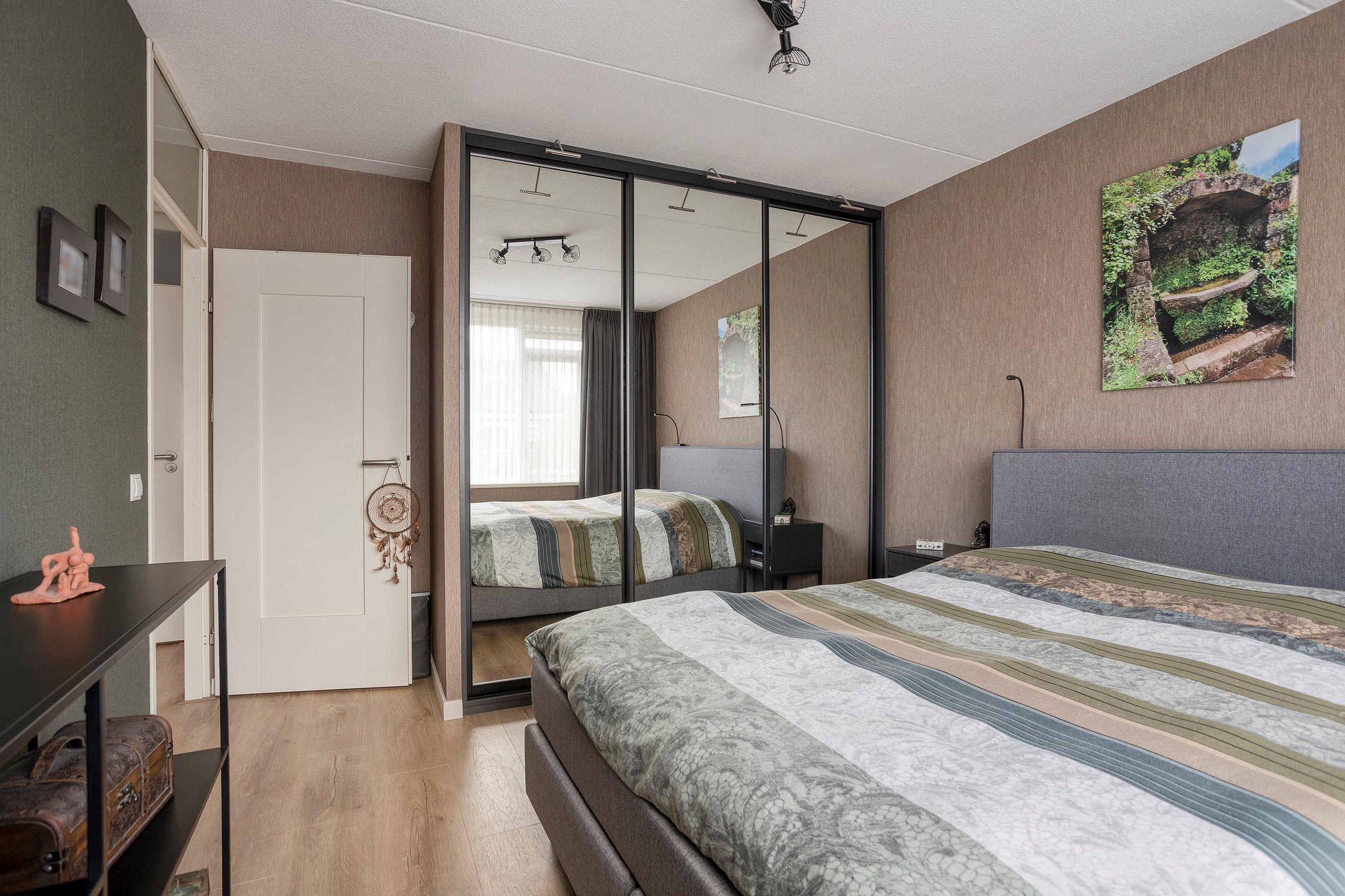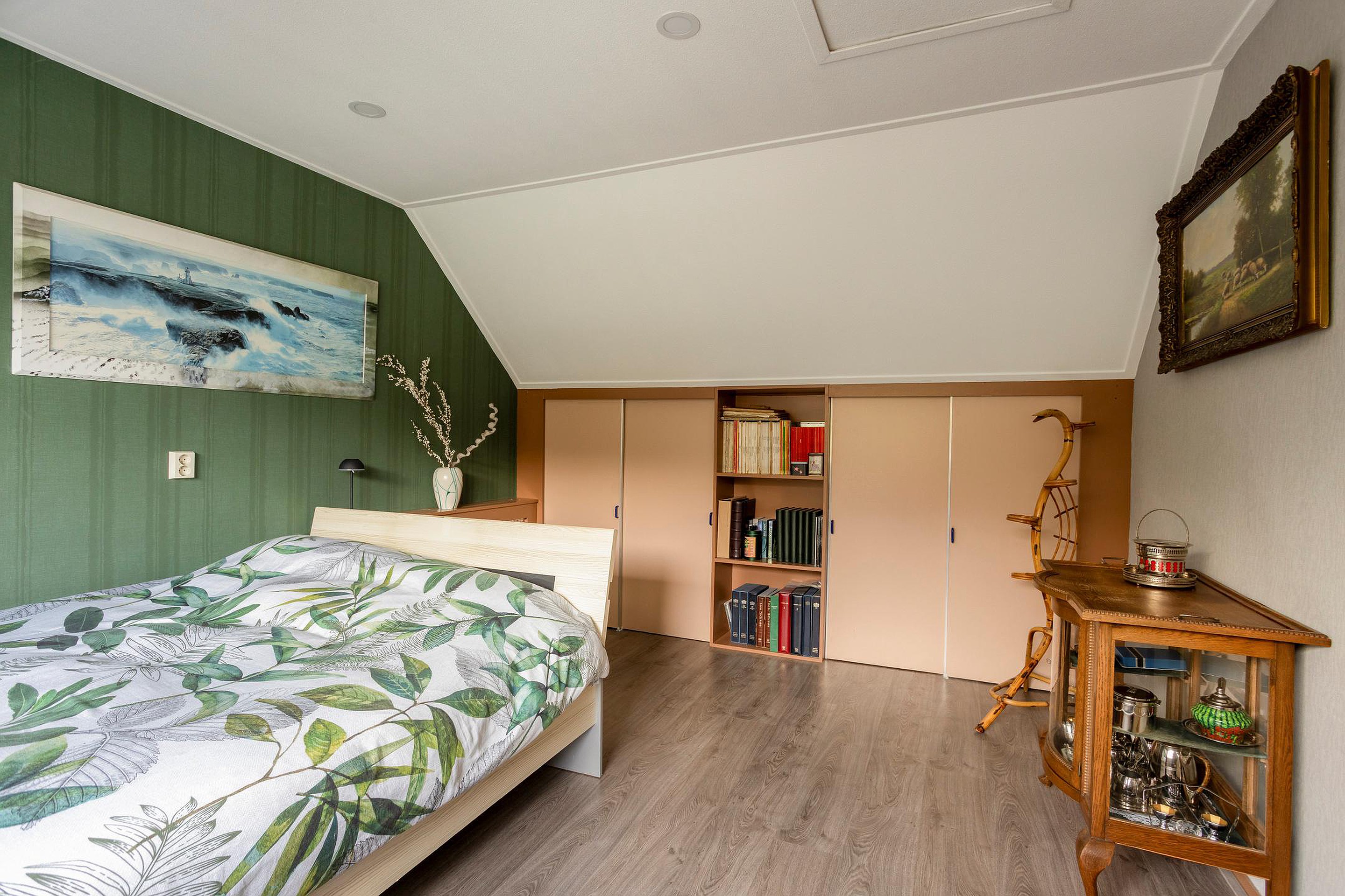2e verdieping: ruime overloop met opstelplaats wasmachine/droger en CV-ketel, ruime slaapkamer met aan de voorzijde een dakkapel verdeeld over 2 kamers.