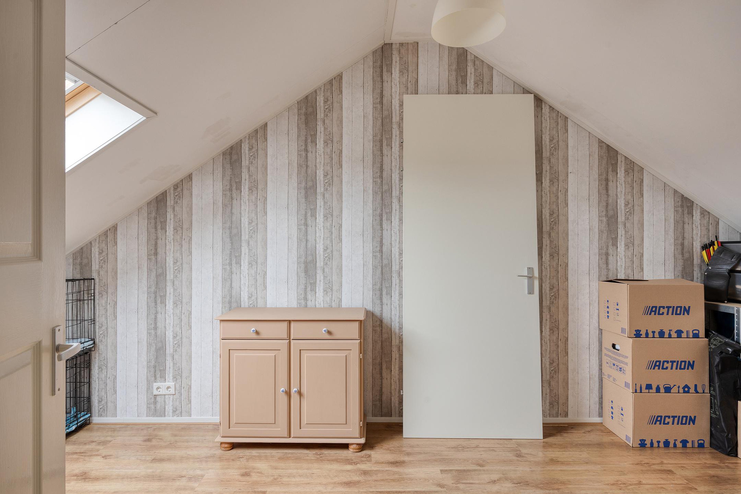 2e verdieping: overloop met opstelplaats CV-ketel, wasmachine/droger en mechanische ventilatiebox. Een ruime 4e slaapkamer met een dakraam en bergruimte in de knieschotten.