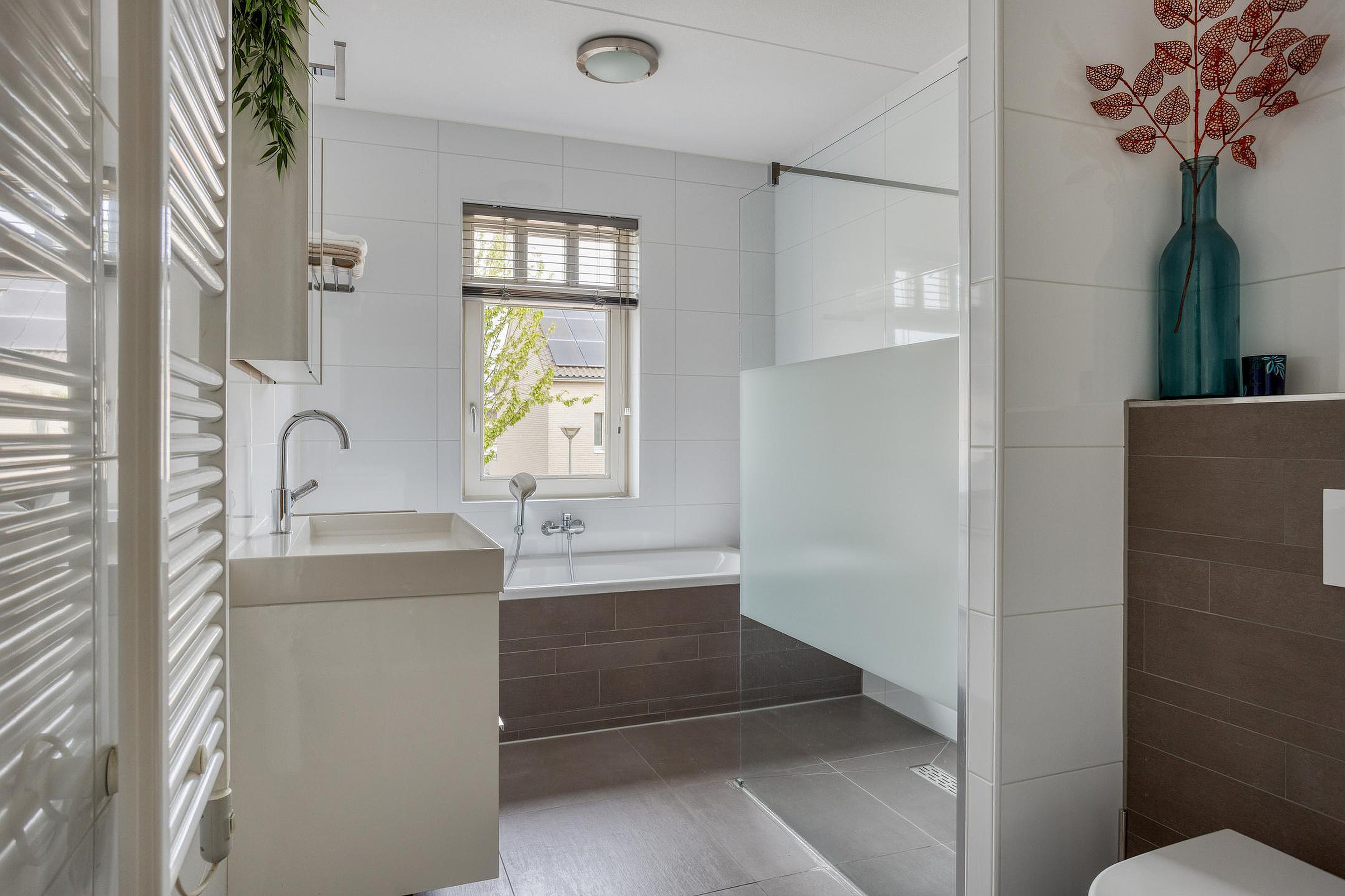1e verdieping: overloop, 3 ruime slaapkamers, royale badkamer met een inloopdouche, , ligbad, wastafelmeubel en 2e toilet.