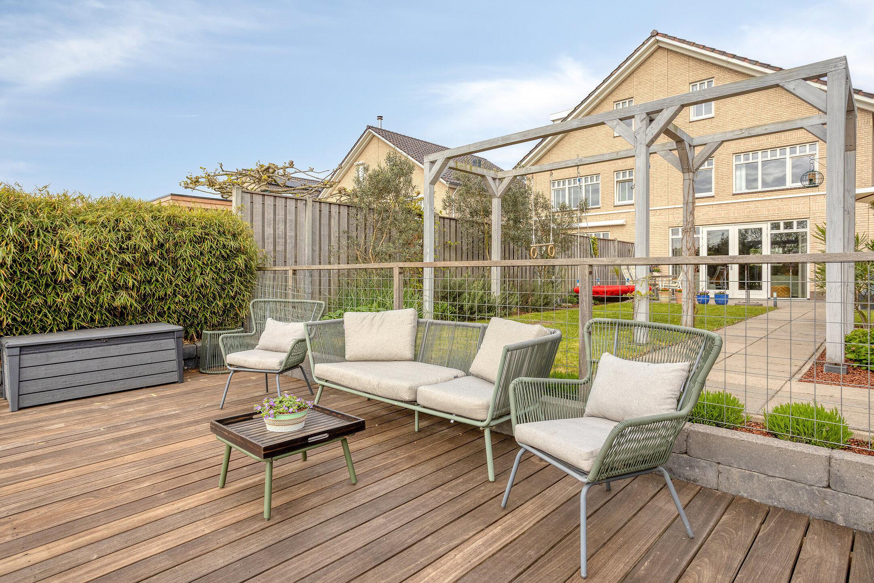 Gelegen in de kindvriendelijke wijk L’avenue, een ruime en instapklare 2^1 kapwoning met royale lichte woonkamer door uitbouw en een open keuken voorzien van inbouwapparatuur. Vanuit de woonkamer geven openslaande deuren toegang tot de diepe, op het zuidoosten gelegen achtertuin met vlonder aan het water, vrijstaande houten berging en berging naast de woning met achterom. De 1e verdieping heeft 3 ruime slaapkamers en een grote badkamer met een inloopdouche, ligbad, wastafelmeubel en een 2e toilet. De 2e verdieping beschikt over een ruime overloop met opstelplaats voor de CV-ketel en ruime 4e en 5e slaapkamer met knieschotten voor extra bergruimte.
