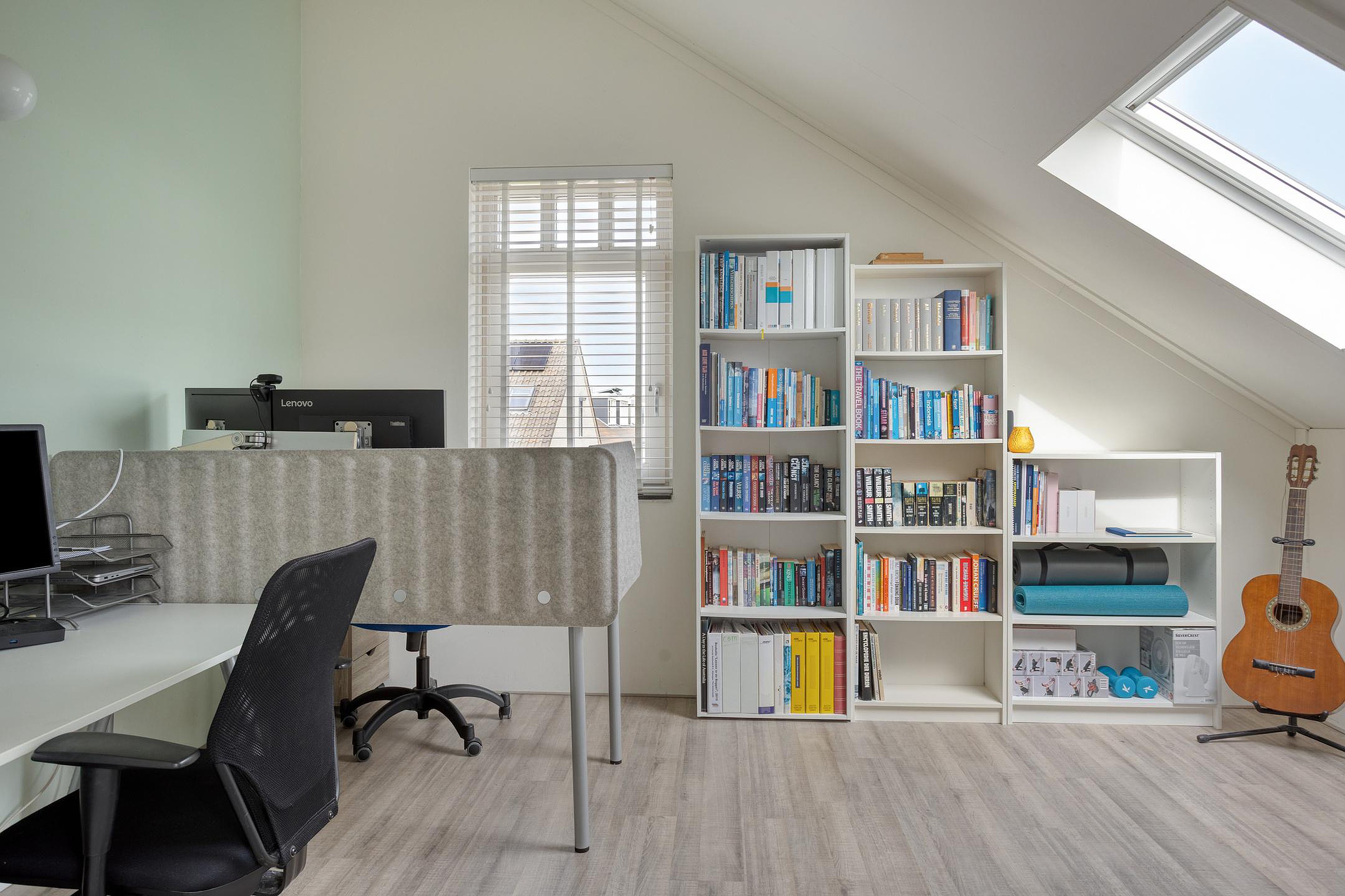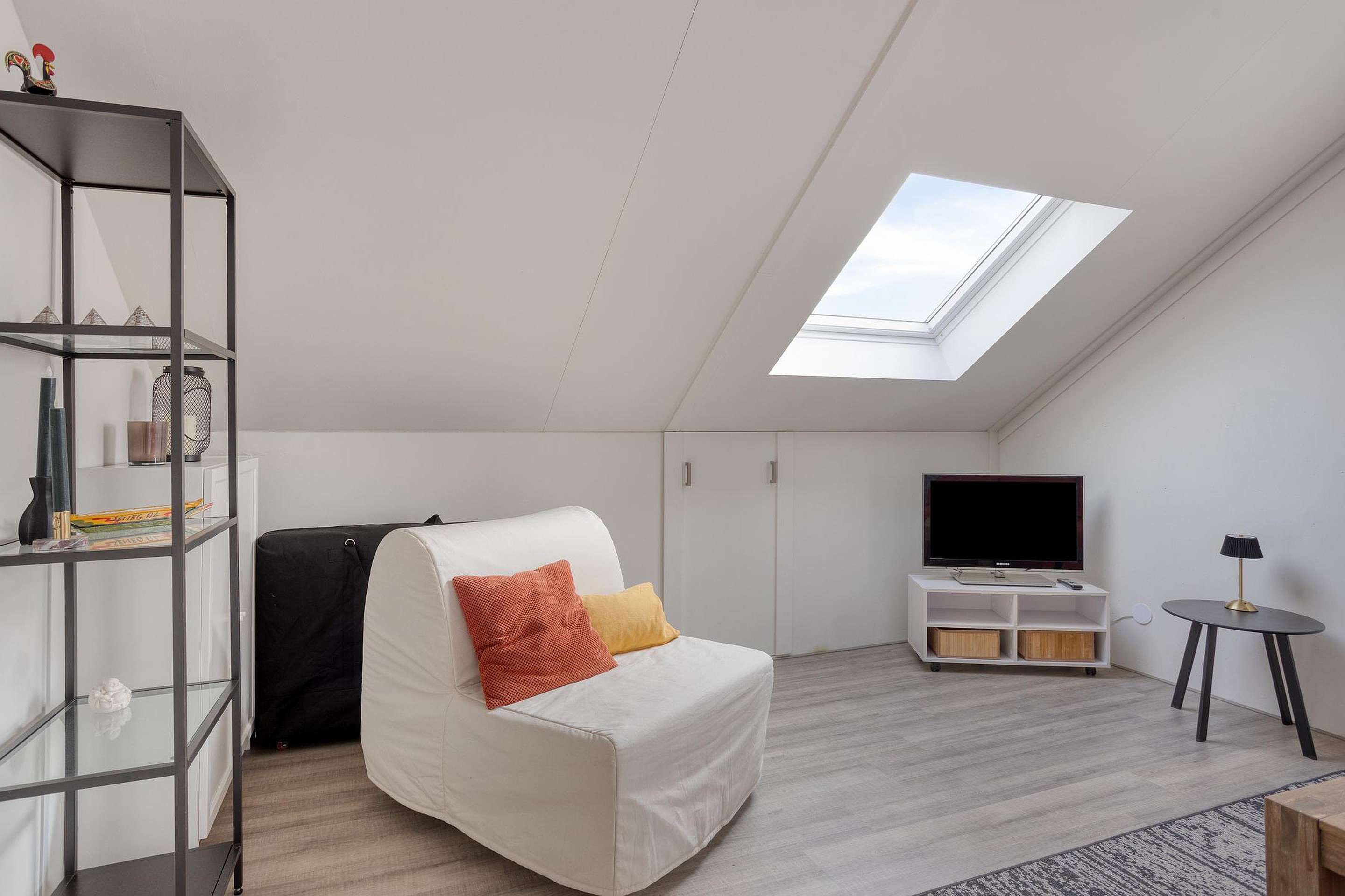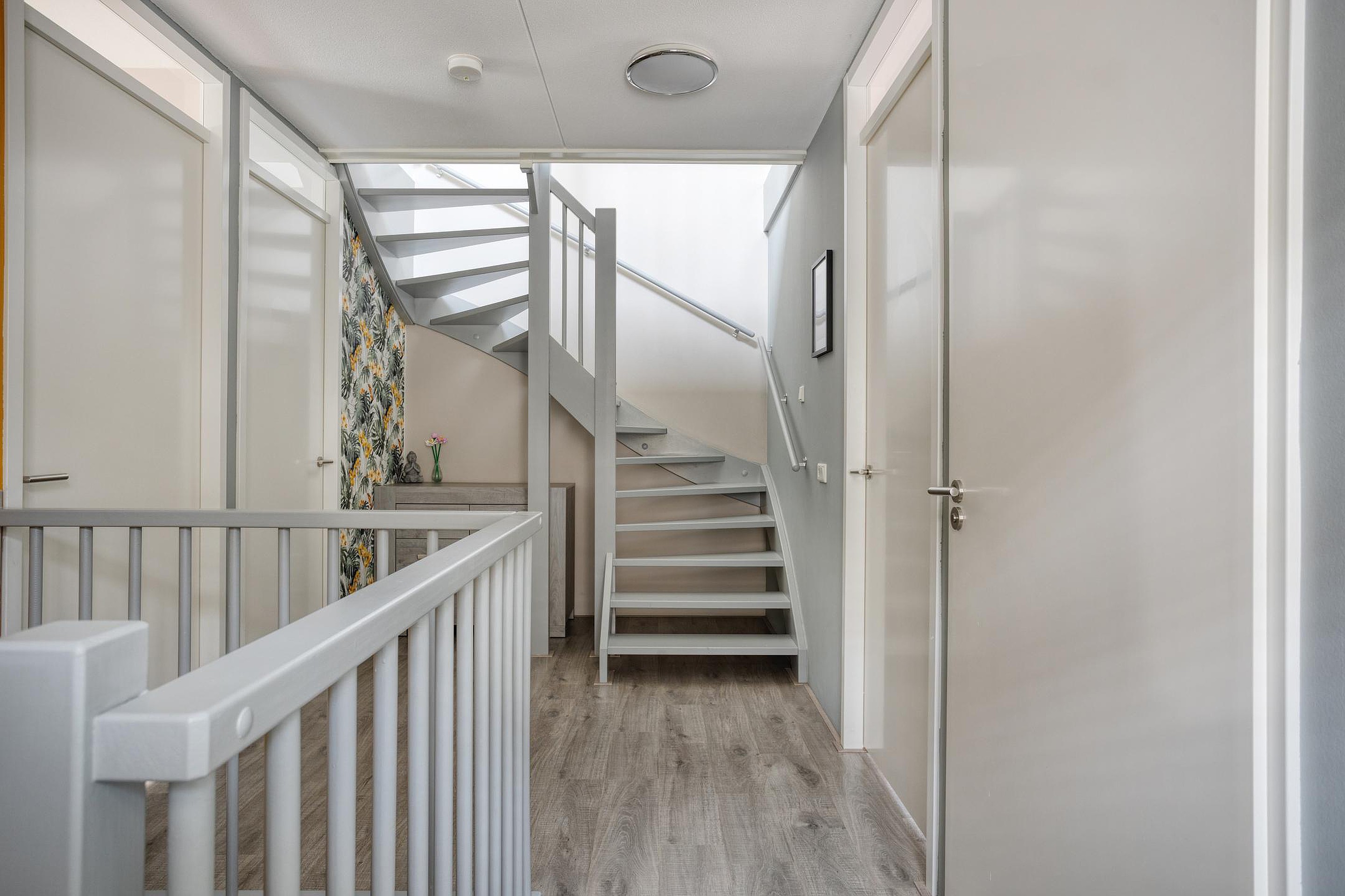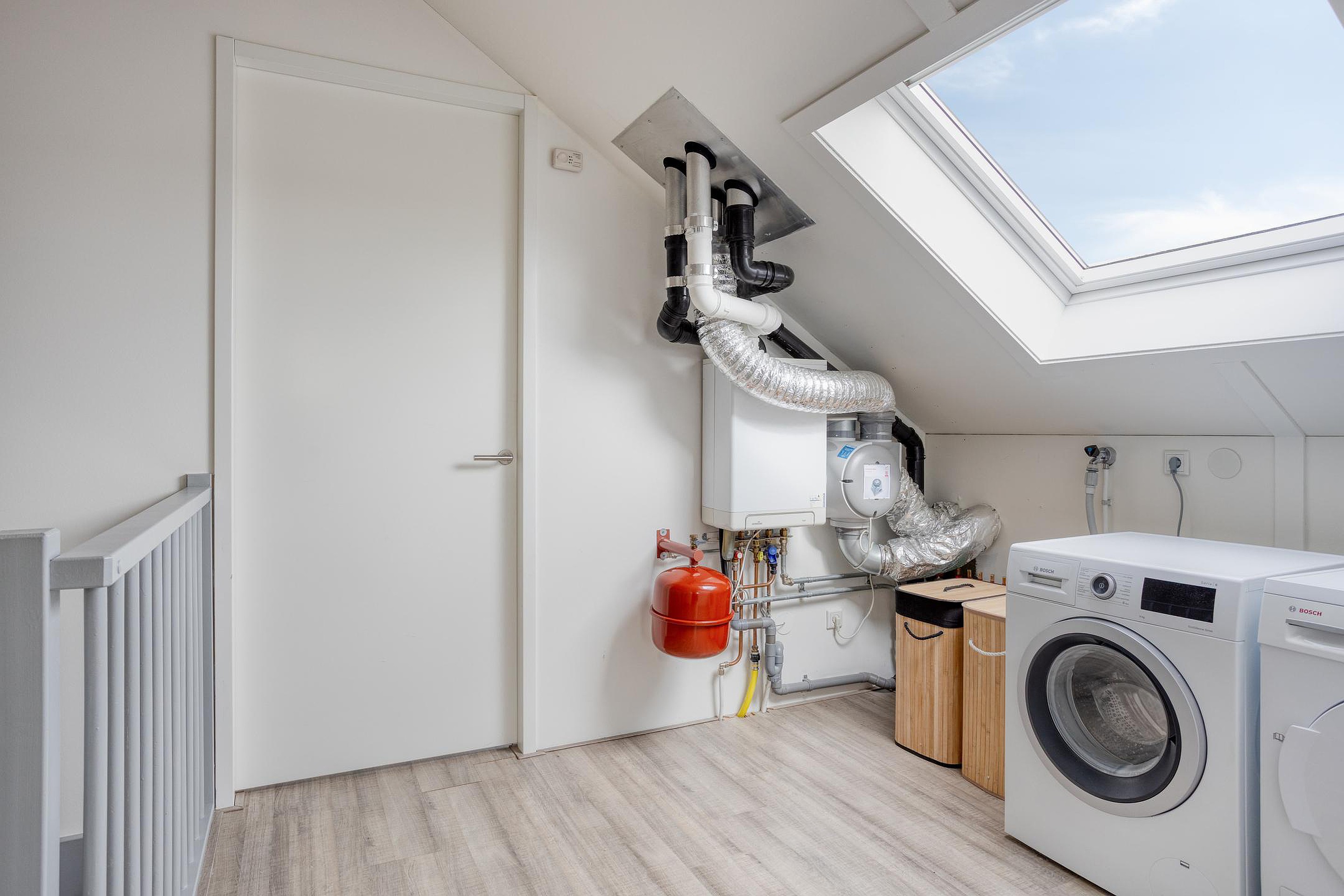 2e verdieping: ruime overloop met opstelplaats CV-ketel, ruime 4e en 5e slaapkamer met knieschotten voor bergruimte.