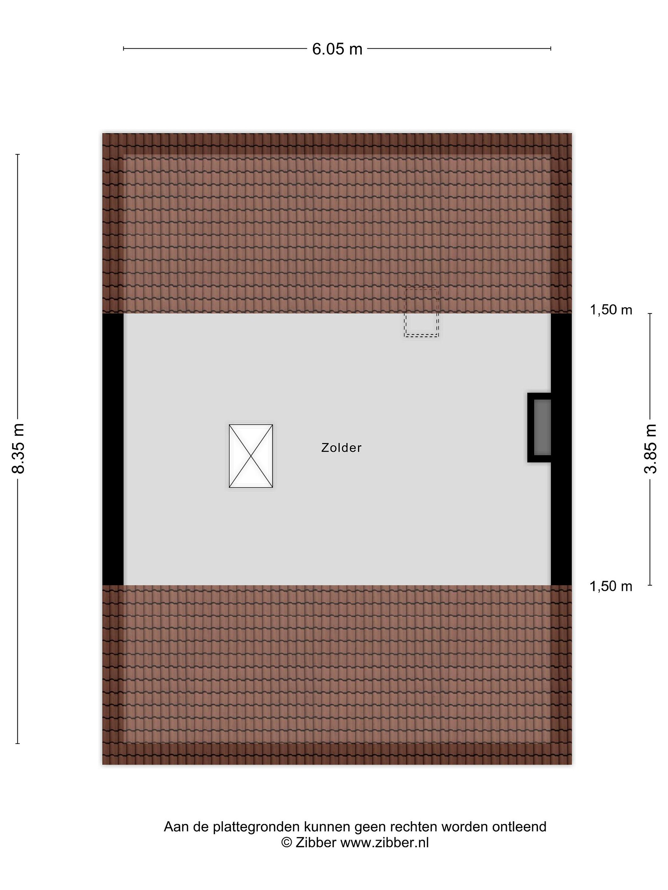 Zolderruimte: bergruimte en een klein dakraam. Met mogelijkheid om kamers te realiseren d.m.v. het plaatsen van dakkapellen en een vaste trap waardoor er meer dan 30m2 extra woonruimte gecreëerd kan worden.